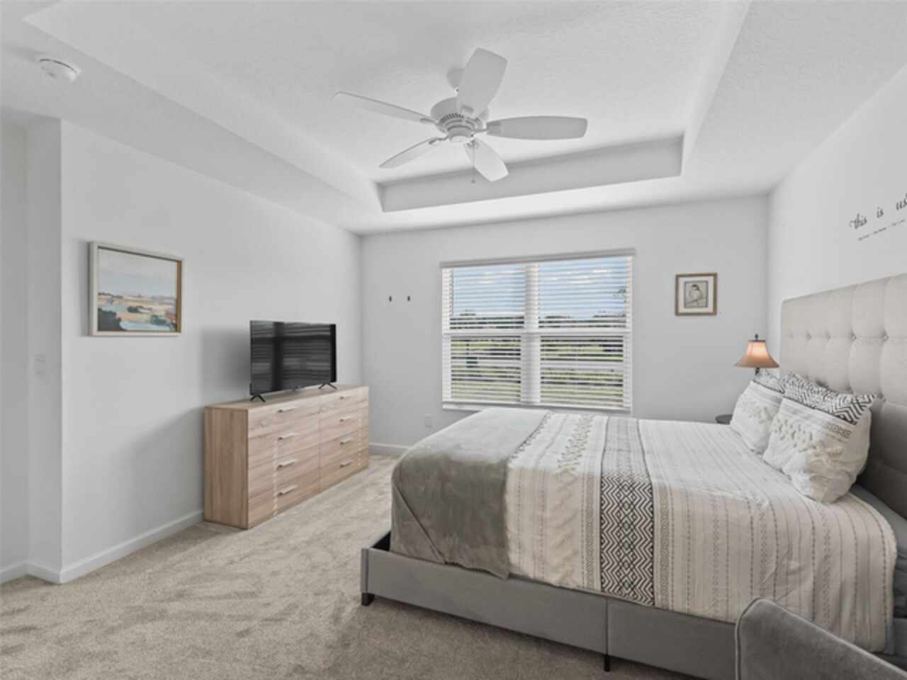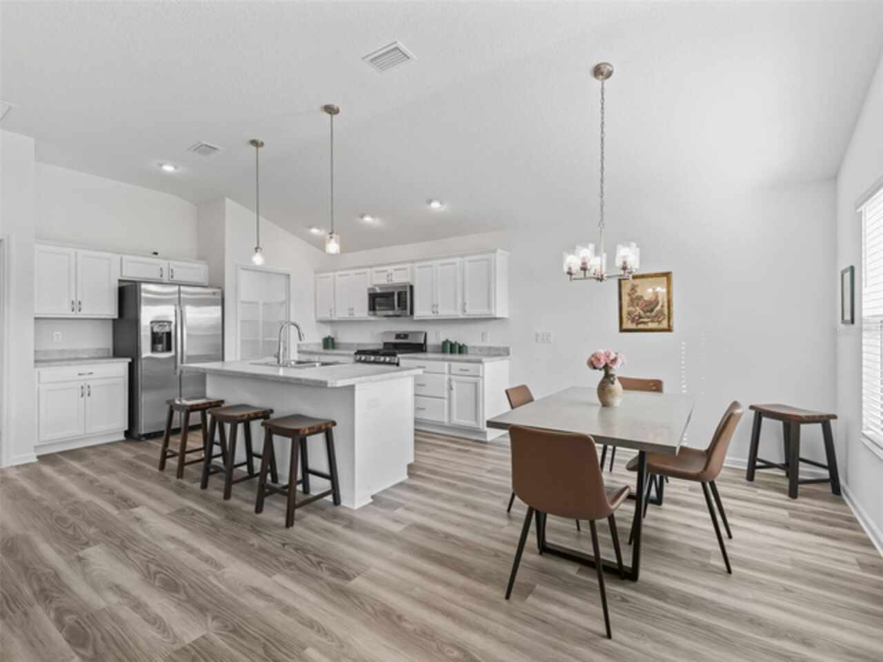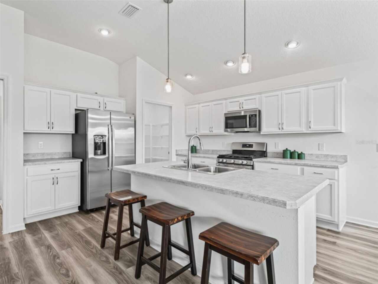 Move-In Ready, recently built in 2023, practically brand-new home. Turnkey optional, so just bring your toothbrush and start living the lifestyle you’ve been dreaming of and enjoying everything The Villages has to offer. Vibrant golf cart community with easy access to shopping, dining, and entertainment. With 3 bedrooms, 2 bathrooms, and a 2-car garage, the layout and open floor plan are not only functional but also inviting and great for entertaining. The primary suite boasts a stylish tray ceiling, large walk-in closet and en-suite bathroom with double sinks. The kitchen is a great workspace that features STAINLESS STEEL appliances, solid wood cabinetry with convenient roll-out shelves, soft-close doors and drawers. Whether it’s a morning round of golf or a day of enjoying your favorite activities, unwind on the screened lanai that has a pond view and no rear neighbors, or enjoy the free nightly live entertainment at one of the town squares or nearby Sawgrass Grove. This like new home offers the perfect balance of activity and relaxation so call now to schedule your private tour today!