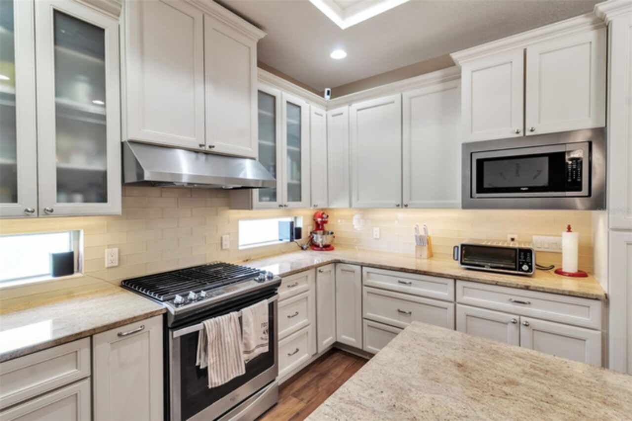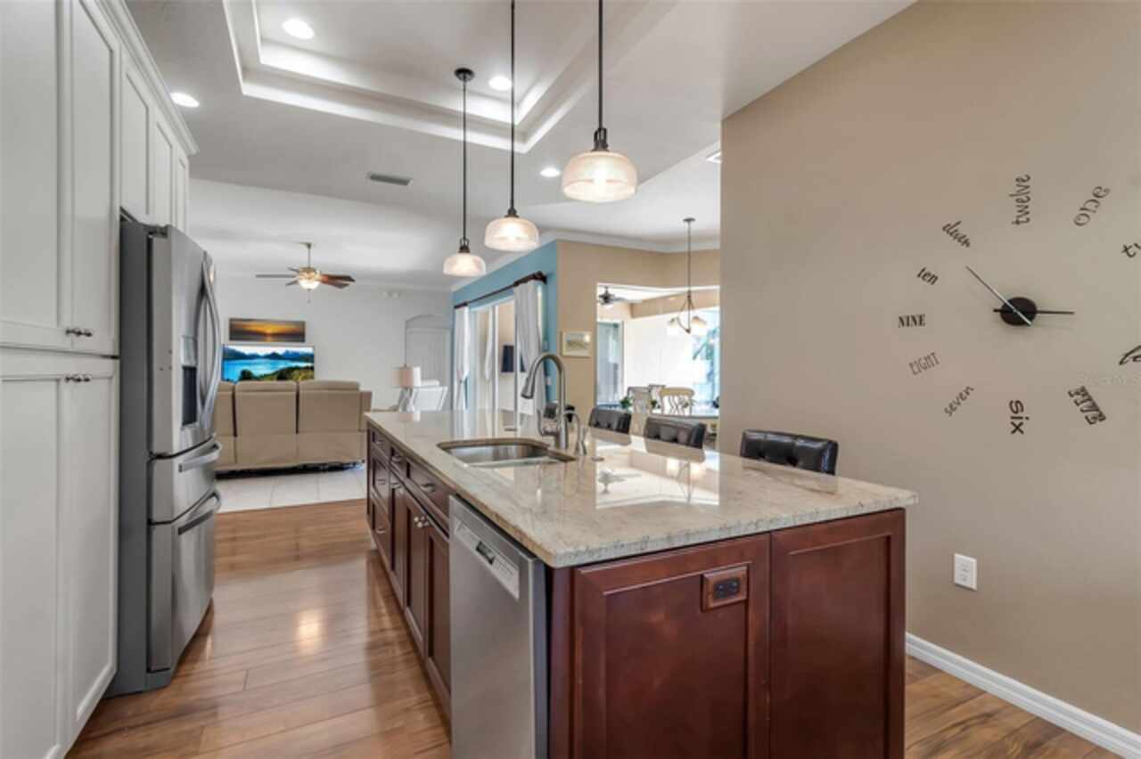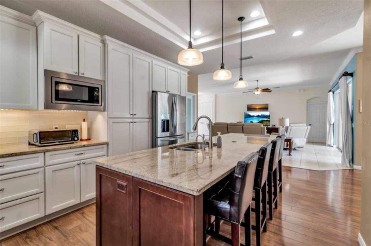Welcome to this meticulously maintained home in the Greenfield Plantation/Planters Manor community, where timeless elegance meets modern comfort. Boasting 2, 296 square feet of thoughtfully designed living space, this 3-bedroom, 2-bathroom residence includes a Bonus Room with a murphy bed, soaring 10’ ceilings, crown molding, and an open layout providing loads of natural light, perfect for both everyday living and entertaining. You will fall in love with the spacious redesigned and upgraded kitchen, featuring newer appliances, maple cabinets with plenty of storage and adjacent upgraded large mudroom. The private, gas-heated pool with waterfall and spa, added in 2011 and nestled under a full screen enclosure is the perfect oasis for relaxation or year-round outdoor fun. The list of upgrades goes on and on: • Roof (2020) • Hurricane-rated garage door (2017) + new opener system/rails (2025) • A/C with UV purification system & • new attic insulation (2025) • Water heater (2021) • Updated guest bathroom, double vanity in master bathroom • Tile & laminate flooring throughout • Central vacuum system • Security System • Energy Efficient VFD pool pump system • 2.5 gar garage with large freezer • upgraded irrigation system Low HOA $$, no CDD This home is connected to Manatee County water/sewer, with natural gas service (dryer, stove, heater/water heater, pool/ spa heater, grill), and has high speed internet. Greenfield Plantation subdivision, with public golf course, is located near top-rated schools (very close proximity to elementary and middle school), shopping, dining, beaches, parks, and everyday conveniences — this is Florida living at its finest in a community known for its charm and easy access to all that Manatee County has to offer. $1000 home warranty option!