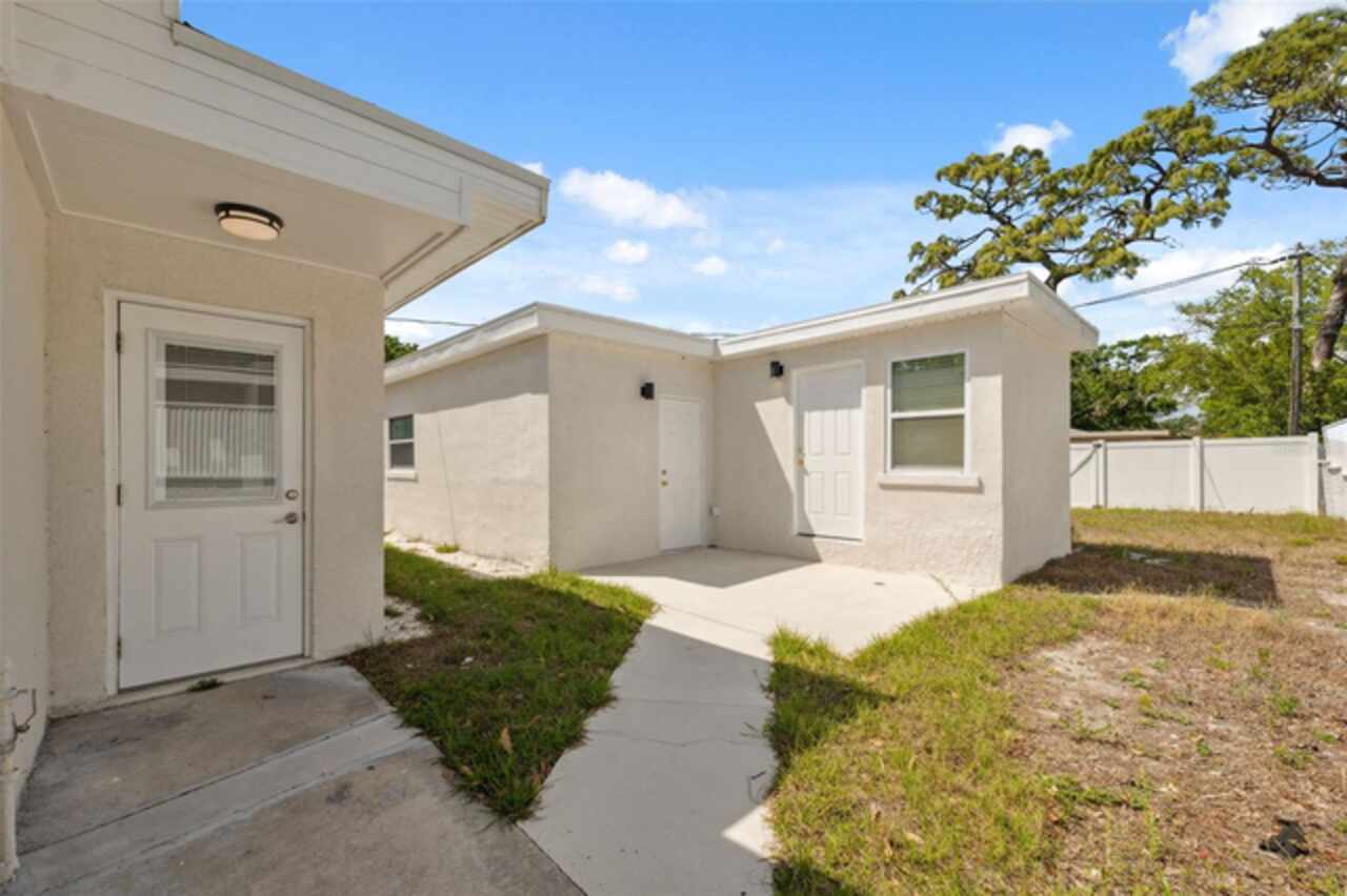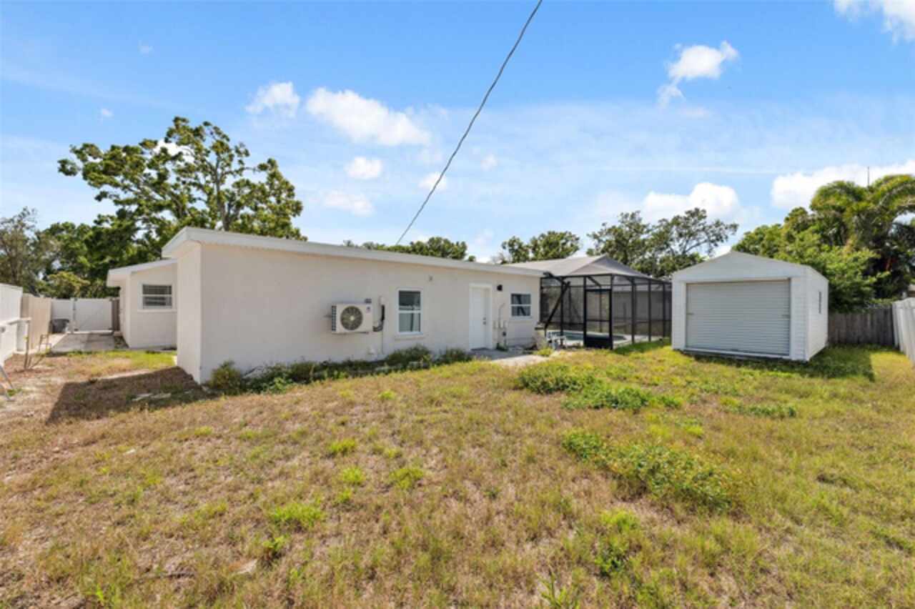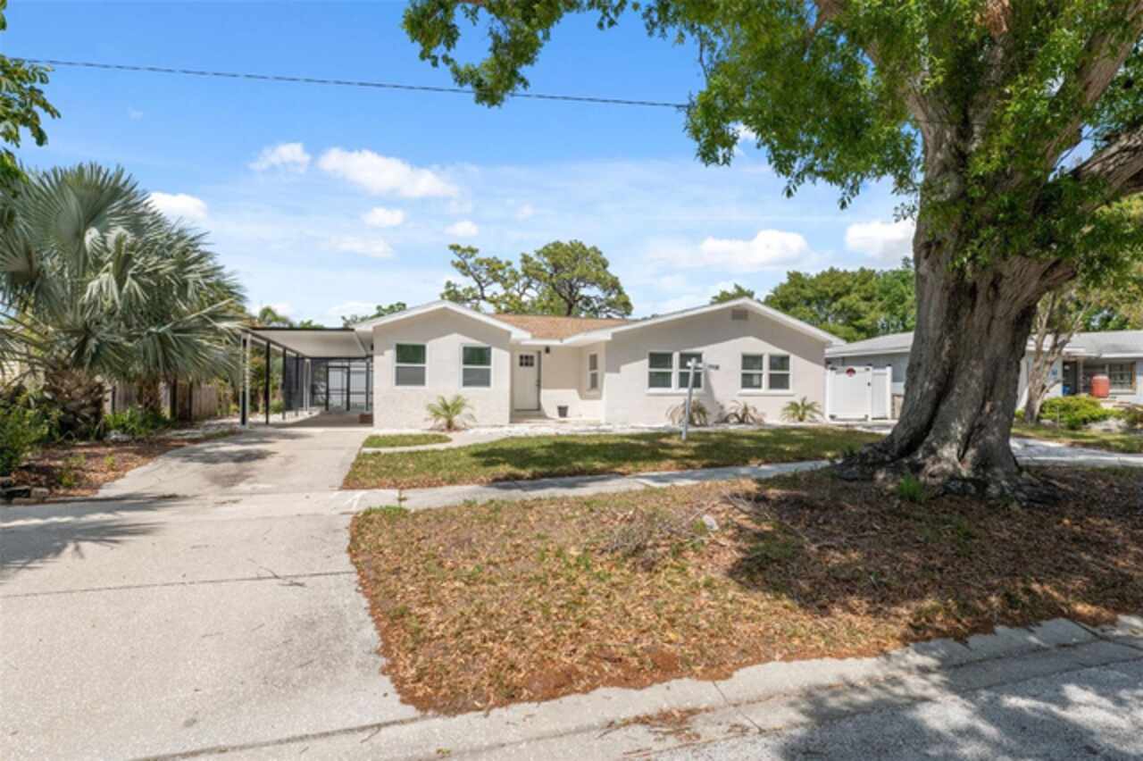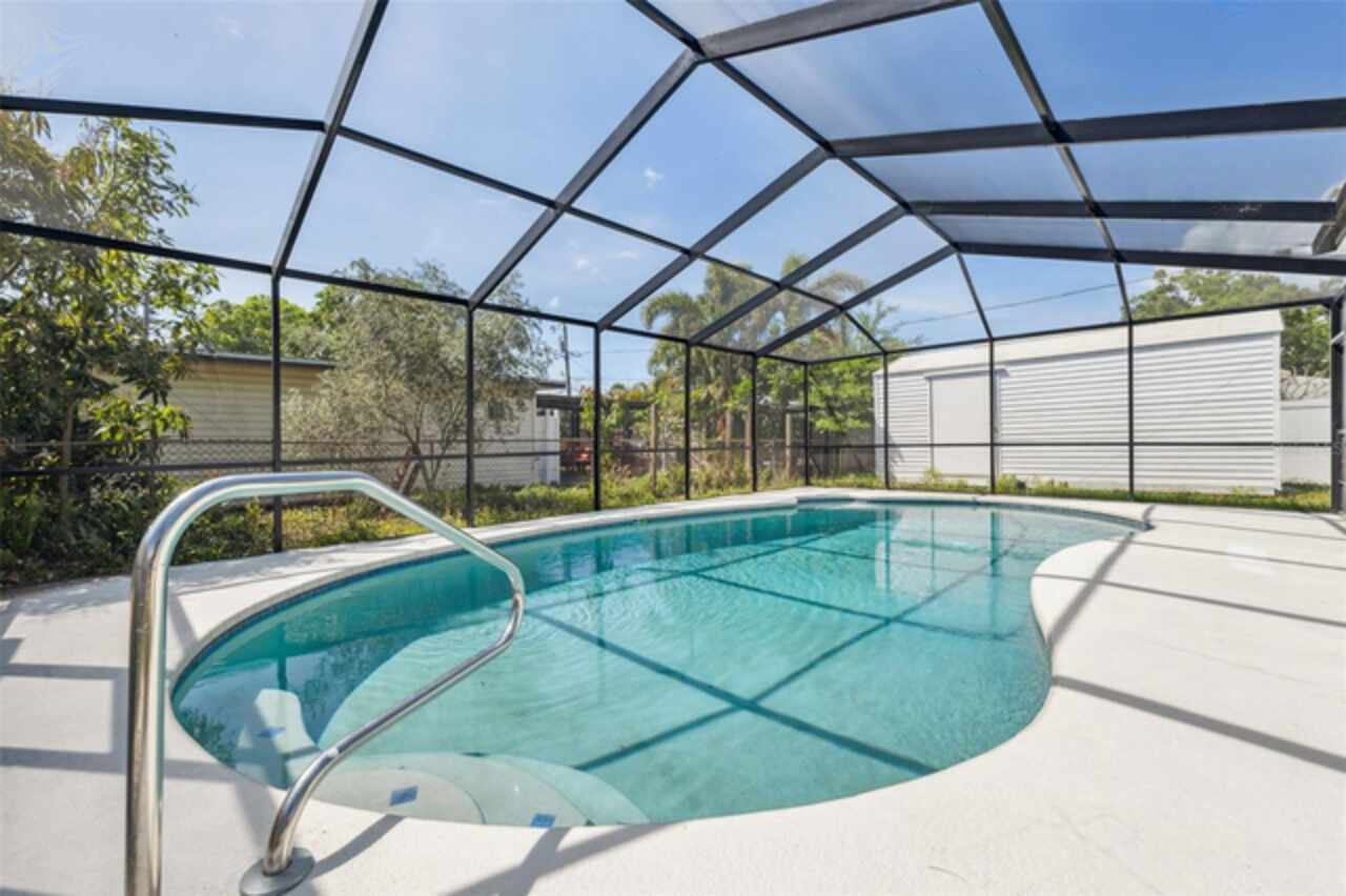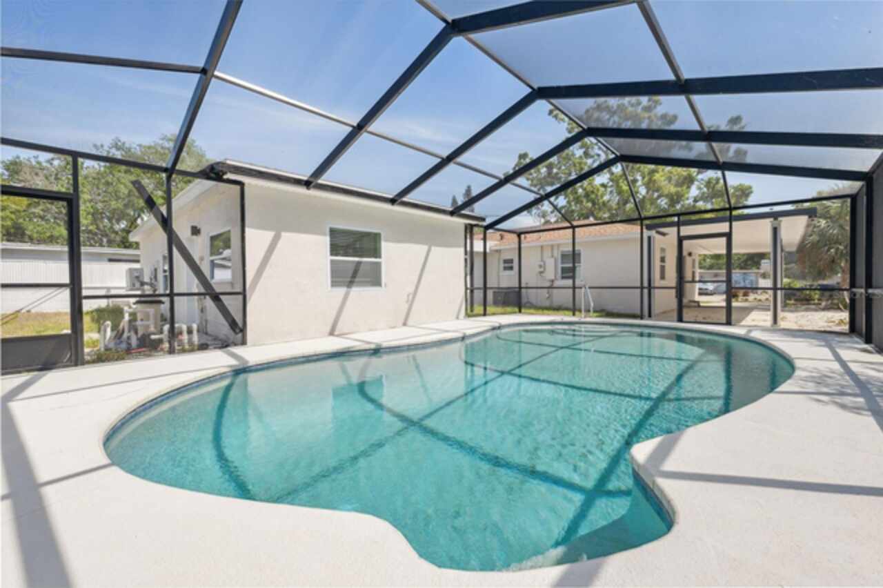 Under contract-accepting backup offers. One or more photo(s) has been virtually staged. ****!!!! BRING ALL OFFERS **** !!!!!! ALL OF THEM!!!! 2024 ROOF !!!! No Flooding from Helene or Milton! Welcome to your dream home in sunny St. Petersburg, just minutes from the beach! This beautifully updated property features a stylish 3-bedroom, 2-bathroom main house, a private detached in-law suite, and a screened-in pool—perfect for enjoying Florida living year-round. Step inside the main home to discover a bright, open-concept layout with an abundance of natural light. The contemporary kitchen is a true showstopper, centered around a spacious island ideal for entertaining. The primary suite offers a peaceful retreat with a large walk-in closet and a freshly renovated en-suite bathroom featuring a double vanity and luxurious rainfall shower. Two additional bedrooms provide ample space for family, guests, or a home office, while the second bathroom showcases the same sleek, modern finishes found throughout the home. Out back, the screened-in pool area invites you to relax or entertain in comfort. Just beyond, you’ll find a detached efficiency unit with private access via the rear alley or side walkway. This unit includes modern finishes and a mini-split A/C—perfect for guests, extended family, or potential rental income. A large shed also offers extra storage space. Additional features include a carport and central air in the main home. This property blends functionality with clean, minimalistic design—ready for your personal touch. Buyer to verify all information and perform due diligence.