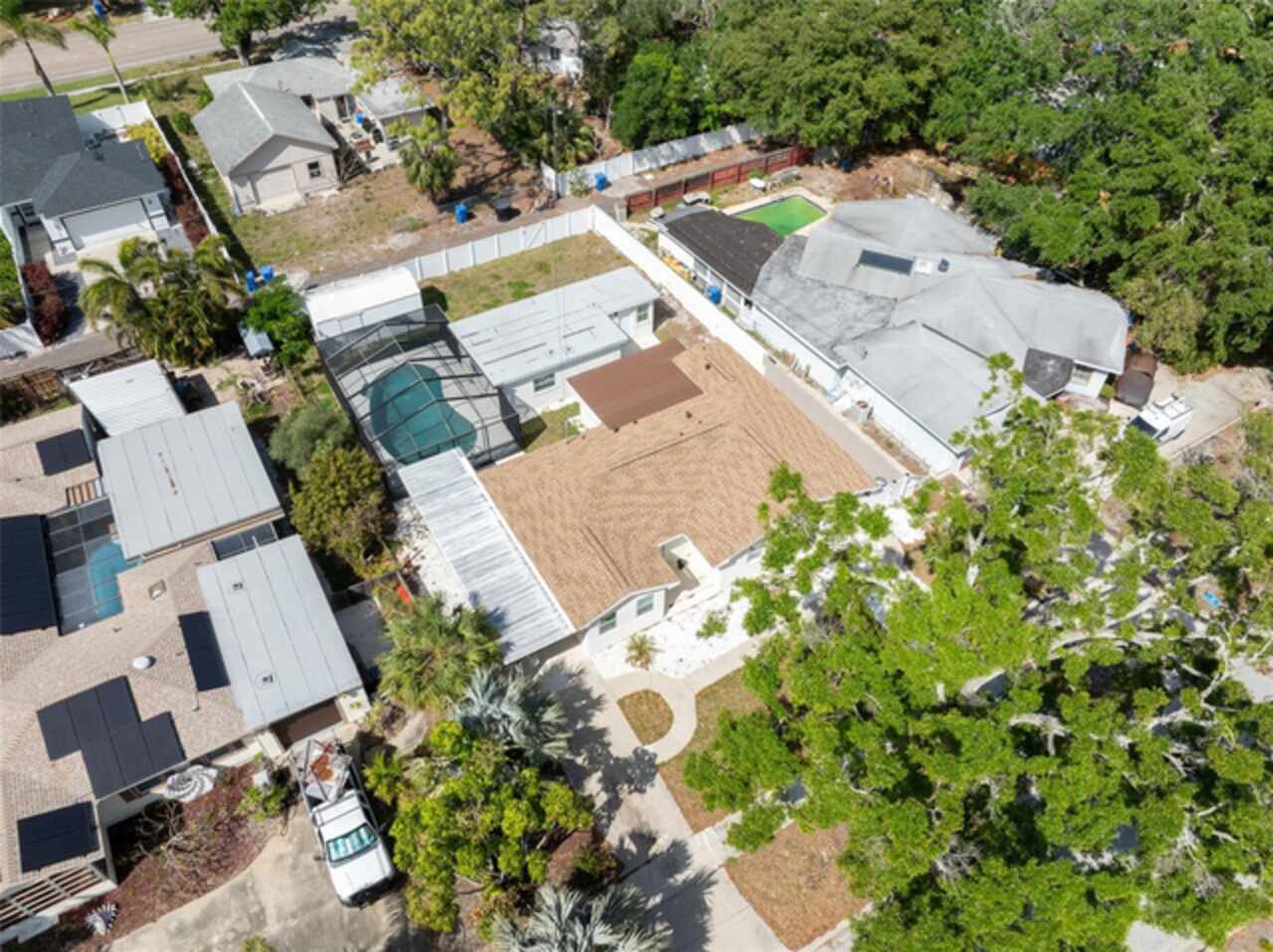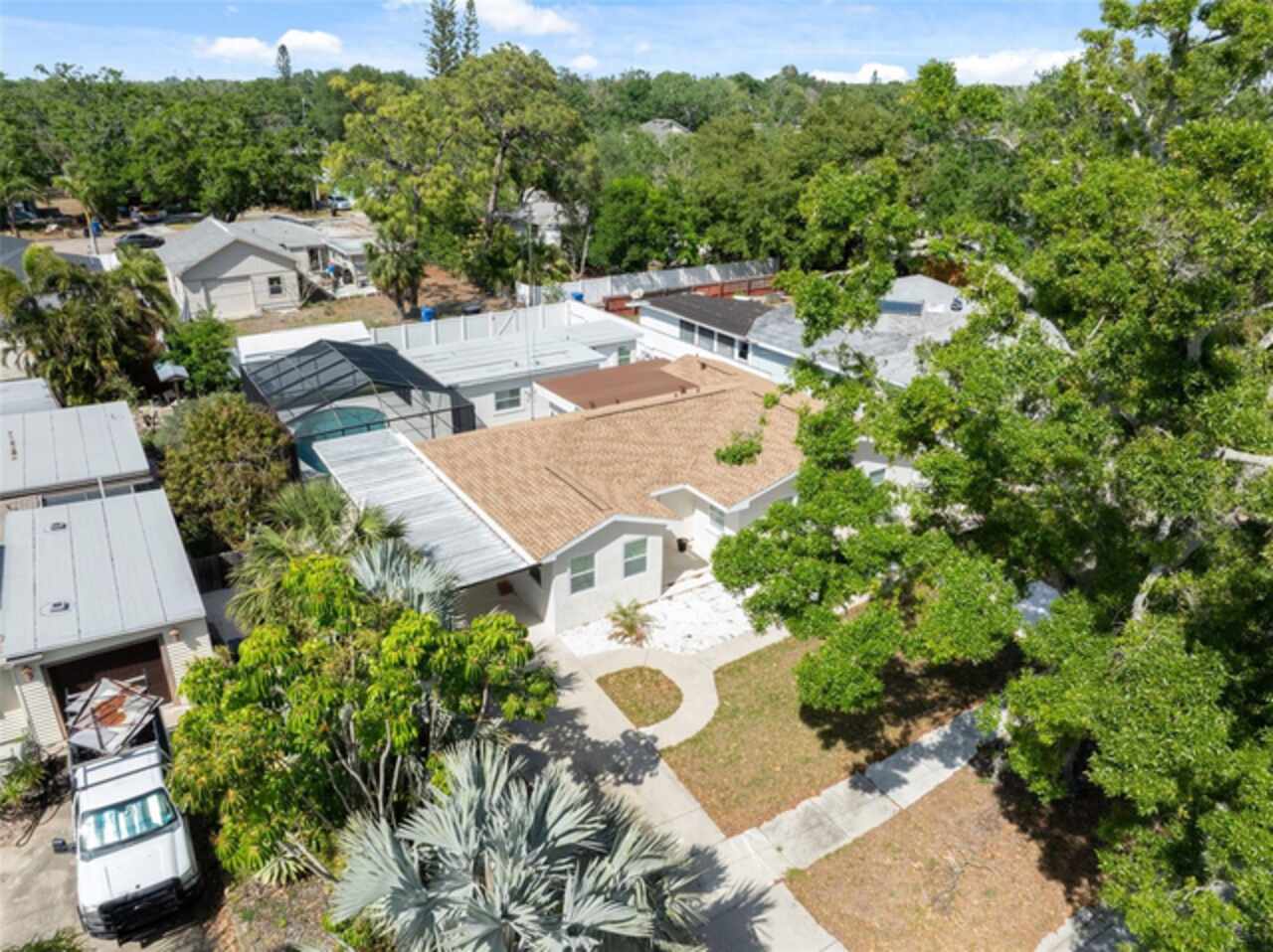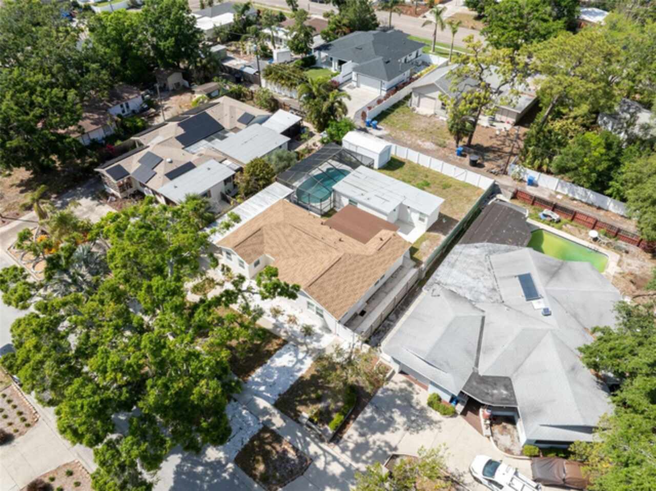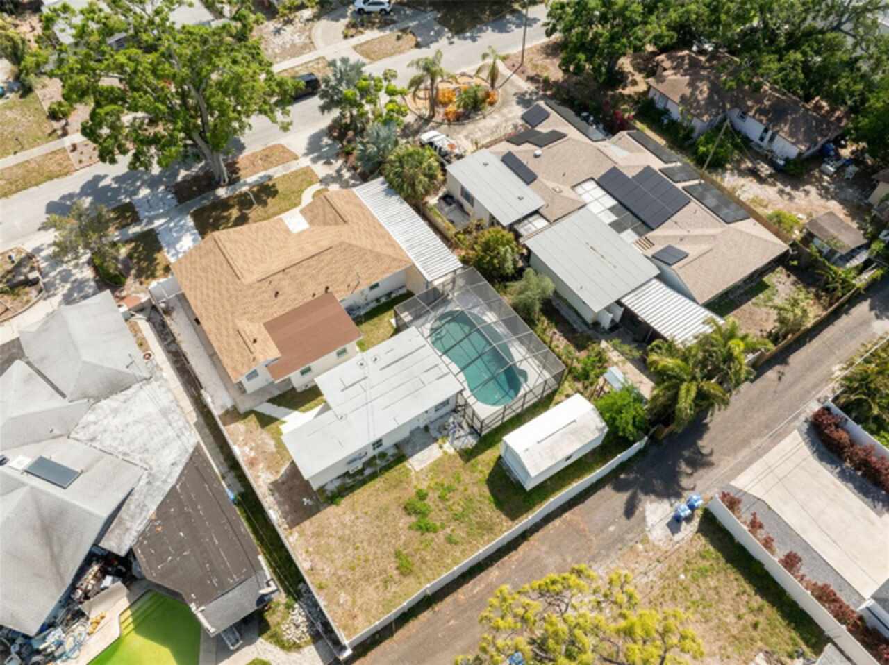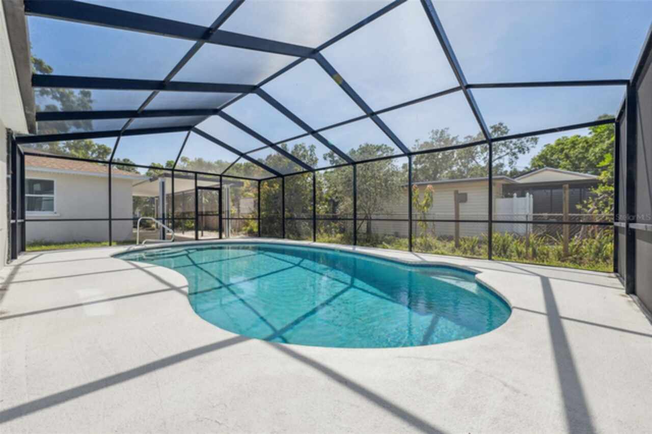 Under contract-accepting backup offers. One or more photo(s) has been virtually staged. ****!!!! BRING ALL OFFERS **** !!!!!! ALL OF THEM!!!! 2024 ROOF !!!! No Flooding from Helene or Milton! Welcome to your dream home in sunny St. Petersburg, just minutes from the beach! This beautifully updated property features a stylish 3-bedroom, 2-bathroom main house, a private detached in-law suite, and a screened-in pool—perfect for enjoying Florida living year-round. Step inside the main home to discover a bright, open-concept layout with an abundance of natural light. The contemporary kitchen is a true showstopper, centered around a spacious island ideal for entertaining. The primary suite offers a peaceful retreat with a large walk-in closet and a freshly renovated en-suite bathroom featuring a double vanity and luxurious rainfall shower. Two additional bedrooms provide ample space for family, guests, or a home office, while the second bathroom showcases the same sleek, modern finishes found throughout the home. Out back, the screened-in pool area invites you to relax or entertain in comfort. Just beyond, you’ll find a detached efficiency unit with private access via the rear alley or side walkway. This unit includes modern finishes and a mini-split A/C—perfect for guests, extended family, or potential rental income. A large shed also offers extra storage space. Additional features include a carport and central air in the main home. This property blends functionality with clean, minimalistic design—ready for your personal touch. Buyer to verify all information and perform due diligence.