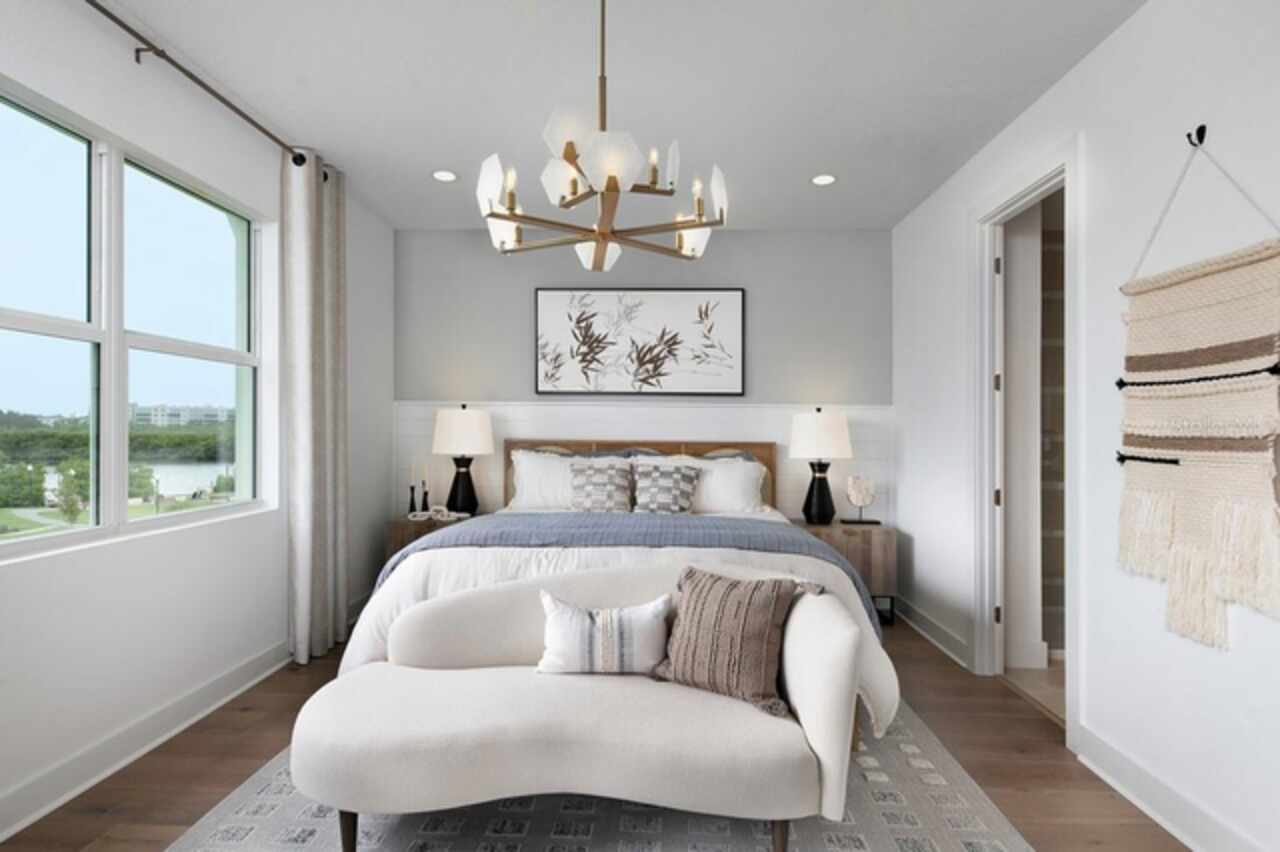 Pre-Construction. To be built. Welcome to this exquisite corner unit ELEVATOR townhome, where luxury meets convenience! This spacious 3-bedroom, 2.5-bath home offers designer appointed features selected through-out. Step inside to an inviting open floor plan with soaring high ceilings and elegant 8-foot doors that create a sense of grandeur. Enjoy picturesque pond views from your second-floor screened-in balcony, a perfect retreat for relaxation or entertaining guests. The gourmet kitchen is a chef’s delight, featuring a thoughtful layout for a cooktop, complemented by a built-in wall oven and microwave. Just off the kitchen, a convenient powder room enhances functionality. A flexible space on the second floor allows you to create an additional living area or office nook to suit your needs. Retreat to the third floor, where you’ll find two cozy secondary bedrooms tucked away for privacy, along with a loft space that adds extra living space options. The primary suite, also located on the third floor, basks in natural light, providing a tranquil escape at the end of the day. Indulge in the luxurious primary bath, featuring dual sinks, a large walk-in shower, and a generous walk-in closet, making storage a breeze. This beautiful community offers an array of amenities, including a fitness center, resort-style heated pool, scenic walking trails, a fire pit, a dock, and a kayak launch, perfect for the outdoor enthusiast. Plus, enjoy the peace of mind that comes with HOA-maintained landscaping. Located less than 15 minutes from the stunning beaches, this home perfectly balances coastal living with modern comforts. Don’t miss the chance to make this dream home your reality! Schedule your private showing today!