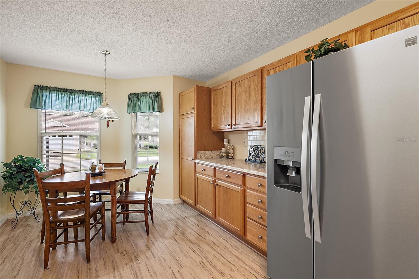 NO BOND and MOVE-IN-READY!! This custom-built 3 Bed, 2 Bath Willow (Wisteria/Sedona III) Designer Model Home is nestled in the Village of Chatham. With plenty of curb appeal and charm, this home offers a split/open floor plan with over 1, 490 sq ft of climate-controlled living space and a beautiful welcoming paver driveway/walkway. Updates include a 2024 ROOF, 2024 WATER HEATER and 2016/2017 HVAC, 2025 NEW IRRIGATION VALVES and 2025 NEW QUANTUM FIBER OPTIC NETWORK installed.The kitchen boasts ample room for storage, solid oak cabinetry (all with pull-out sliders), 2022 appliances, an open pass-thru into the dining room, subway tile backsplash and a cozy eat-in nook with a front half-bay window. There is NO CARPET in this home as all FLOORING REPLACED in 2019 to LUXURY VINYL / TILE. The spacious Master bedroom includes a ceiling fan, a generous CUSTOM U-SHAPED WALK-IN CLOSET, and an ensuite bathroom with integrated sink countertops, a double vanity, a step-in shower with glass doors, and a linen closet. The Laundry room is located right off the Master Bath and includes its own laundry tub, a 2021 WASHER and DRYER and is also accessible from the garage. On the guest side, two spacious bedrooms embrace the ample natural lighting, closets and ceiling fans, complemented by a hall linen closet and a guest bath with toilet, vanity, and a tub/shower. From the open living area, you can step outside into the private, EAST-facing screened-enclosed lanai with a beautiful park-like view of the neighboring landscaping. The 2-car garage includes custom storage cabinets, a separate door to access the Laundry room and additional storage above in the attic. This home is perfectly positioned south of the new First Responder’s Recreation Center (with its large resort pool, pickleball, huge game room, basketball, soccer, lawn bowling, sand volleyball, and the challenging eighteen hole putting course) and just west of the Nancy Lopez Legacy Country Club (with fine dining, a pro-shop, driving range, training facility and the 27- hole golf course and the Legacy Pool Bar and Grill). This ideal location is less than a minute golf cart ride to Chatham Recreation Center, and a short distance from Publix, many restaurants in the Mulberry Plaza, several Recreation Centers/pools, many executive golf courses, the Savannah Center, Spanish Springs Town Square and several healthcare facilities including The Villages/UF Health and the VA Clinic. The Big Box Stores like Walmart, Lowes, and BJ’s are also located just a few miles away. Notes: Some of the Furniture is Negotiable and the A/C unit is large enough to accommodate heating/cooling the lanai (should the new owner wish to fully enclose it) adding to the overall square footage/living space of the home.