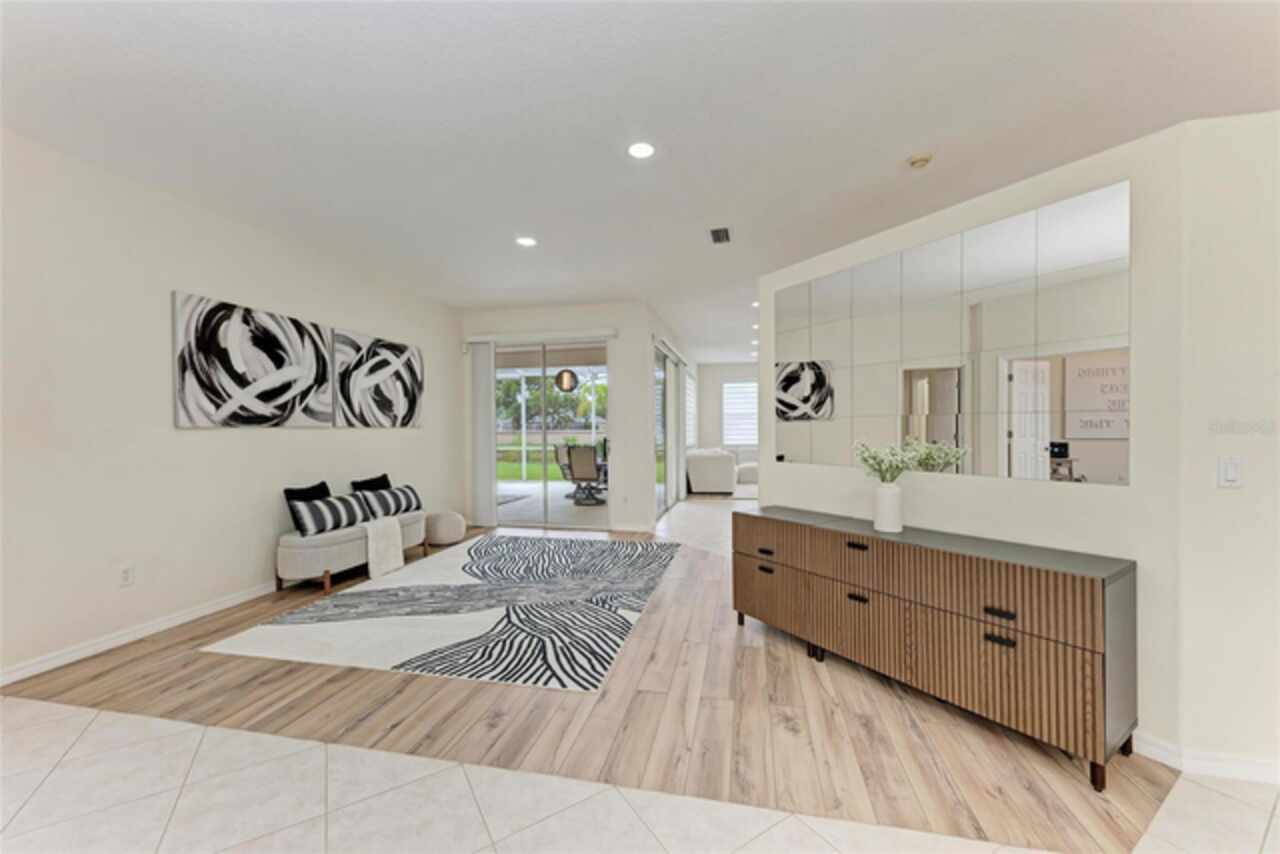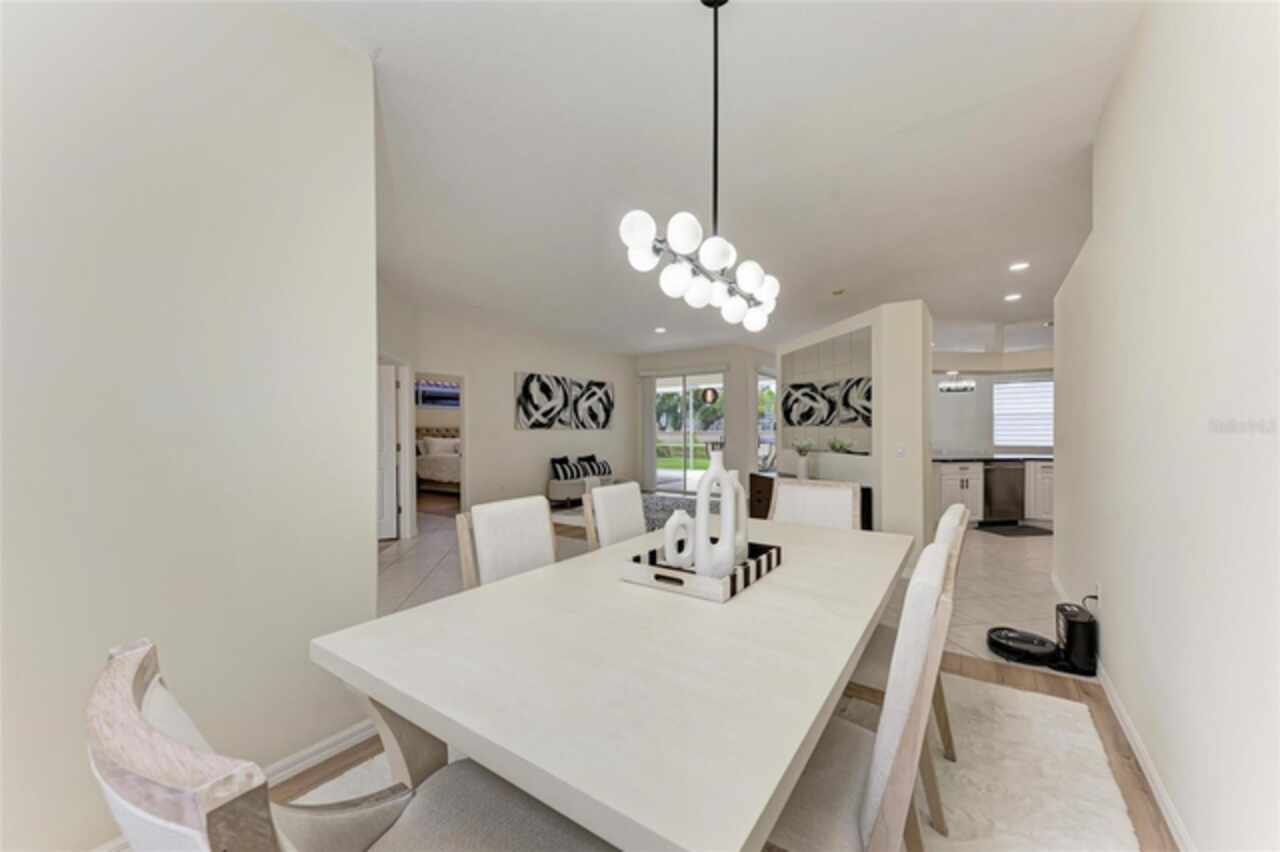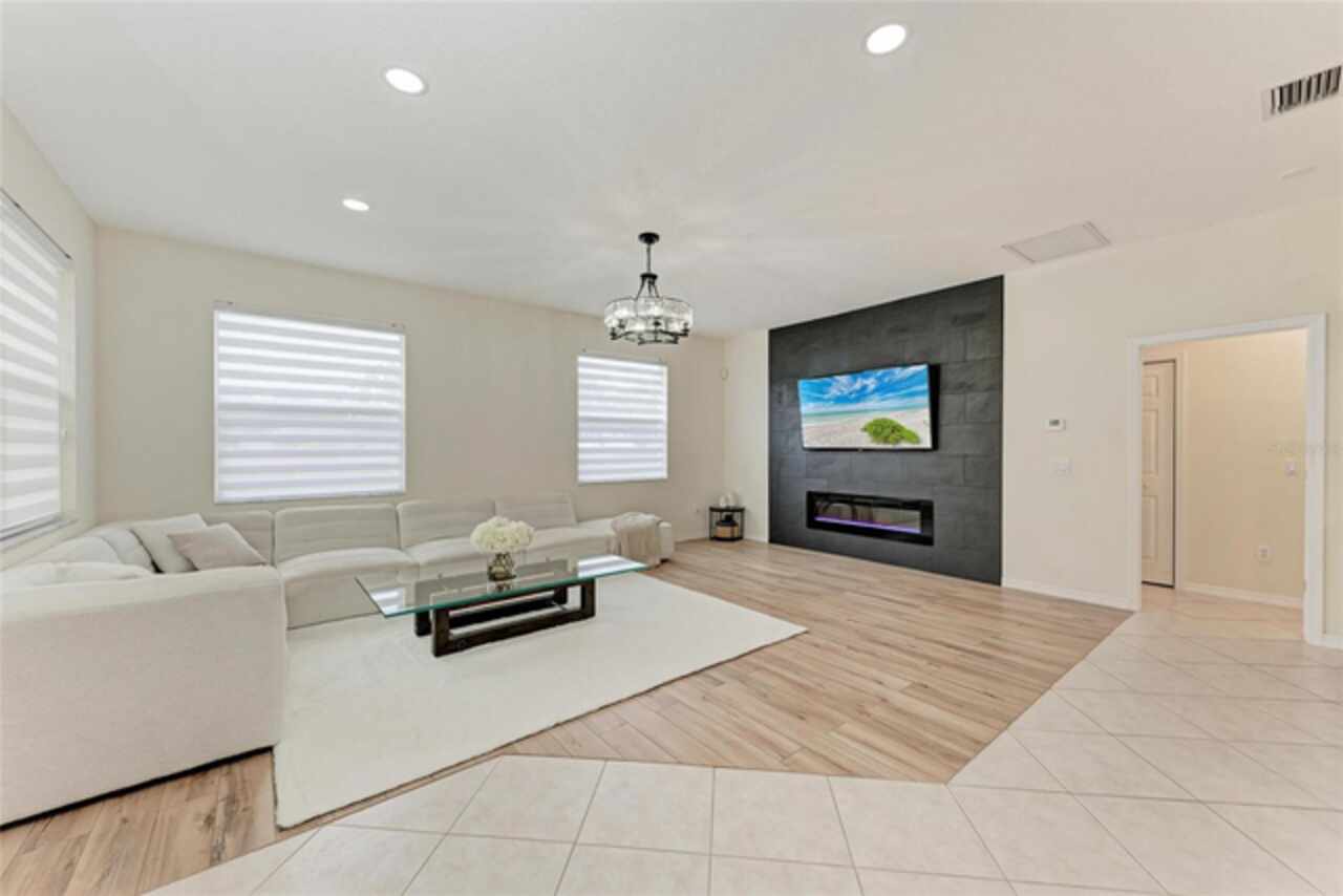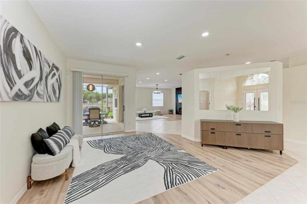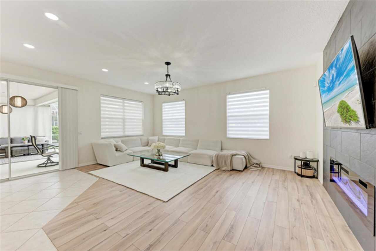 Beautifully updated and move-in ready, this bright and spacious 3-bedroom, 2-bath split floorplan home with a den offers the perfect blend of style and comfort. The owners have thoughtfully renovated both bathrooms and the kitchen, added new flooring, painted the interior and exterior, and installed a brand-new sprinkler system. The oversized kitchen is ideal for entertaining, while the formal dining room and cathedral ceilings add elegance and volume throughout the home. A newly added fireplace and TV feature wall create a stylish focal point in the living room. The master suite features a separate shower and soaking tub, plus a large walk-in closet. Step outside to the massive screened lanai and enjoy tranquil lake views. Additional features include a 2-car garage and a prime location just minutes from UTC, and conveniently close to Lakewood Ranch shops and dining.