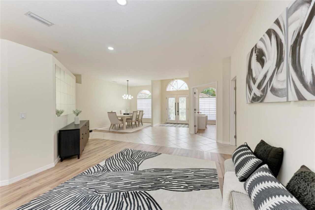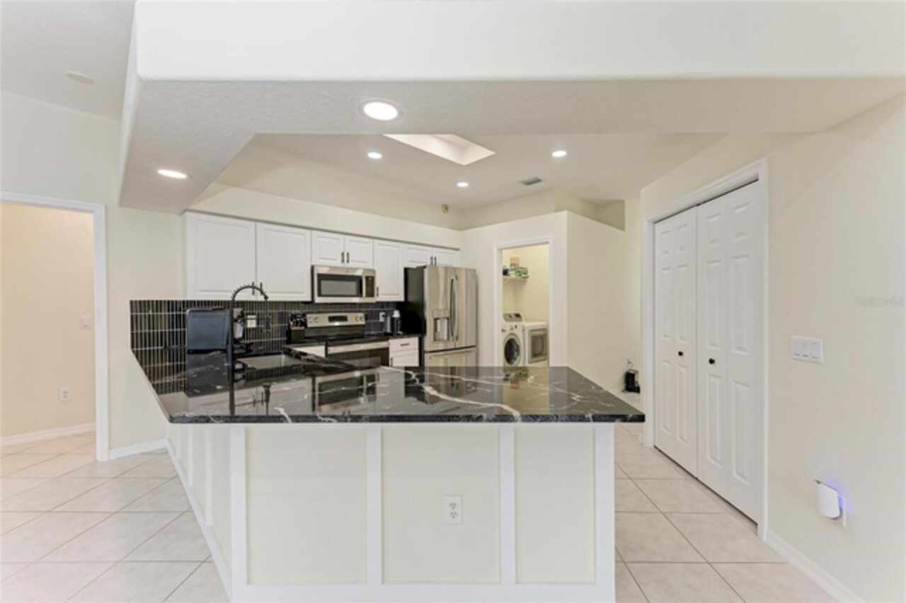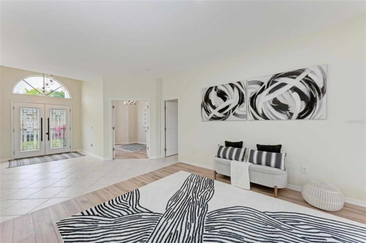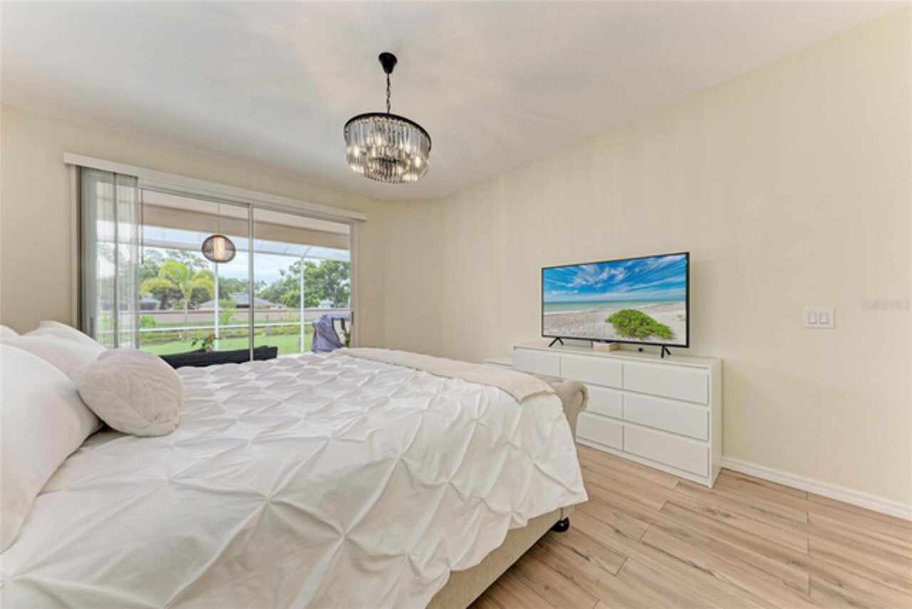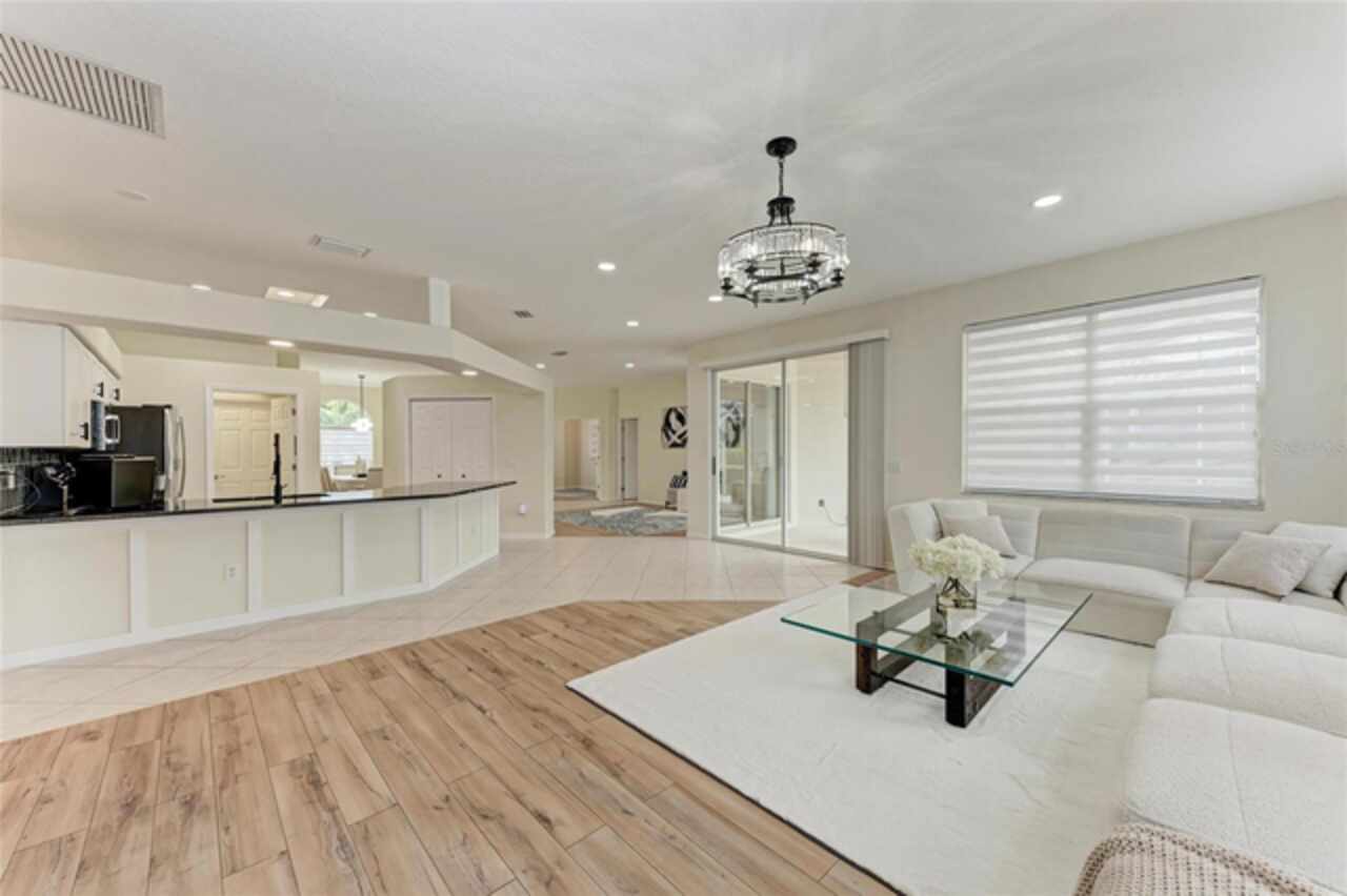 Beautifully updated and move-in ready, this bright and spacious 3-bedroom, 2-bath split floorplan home with a den offers the perfect blend of style and comfort. The owners have thoughtfully renovated both bathrooms and the kitchen, added new flooring, painted the interior and exterior, and installed a brand-new sprinkler system. The oversized kitchen is ideal for entertaining, while the formal dining room and cathedral ceilings add elegance and volume throughout the home. A newly added fireplace and TV feature wall create a stylish focal point in the living room. The master suite features a separate shower and soaking tub, plus a large walk-in closet. Step outside to the massive screened lanai and enjoy tranquil lake views. Additional features include a 2-car garage and a prime location just minutes from UTC, and conveniently close to Lakewood Ranch shops and dining.