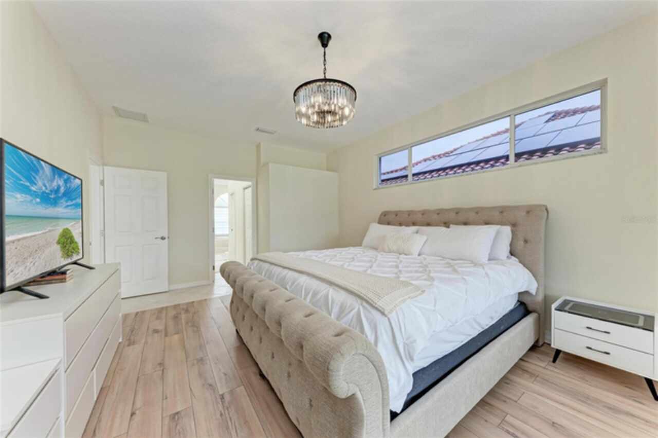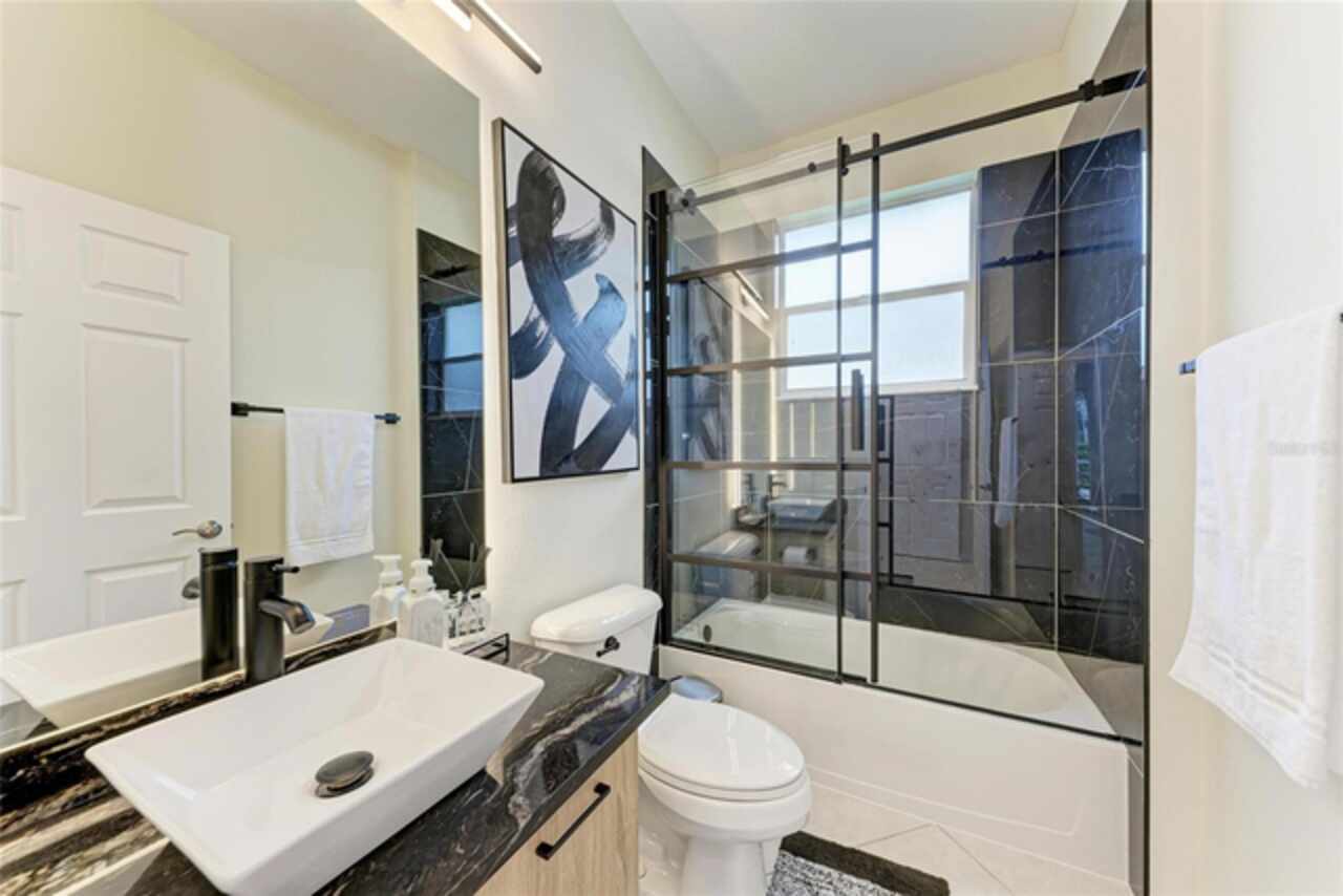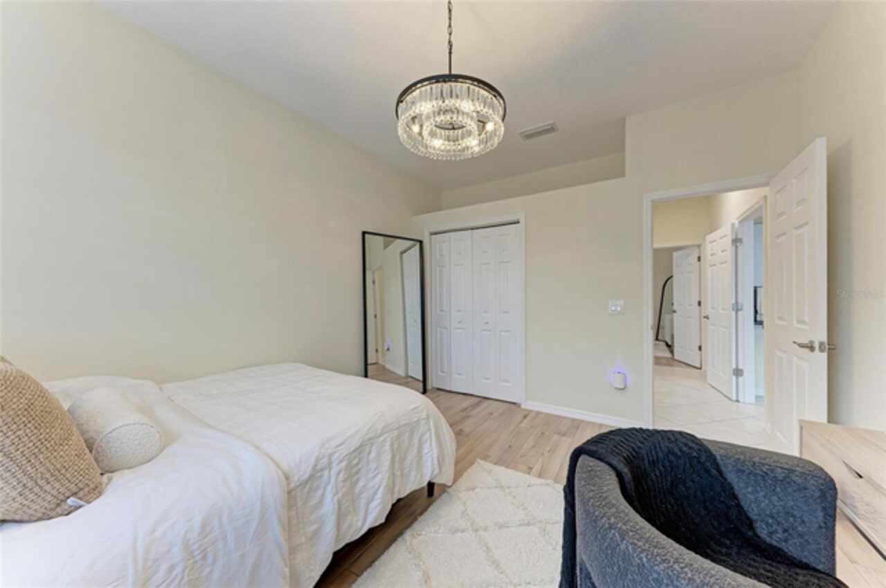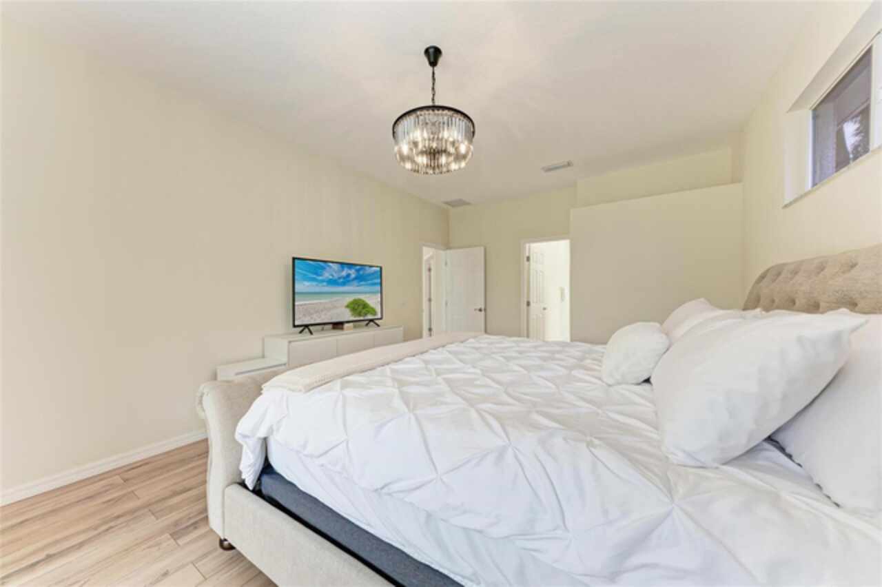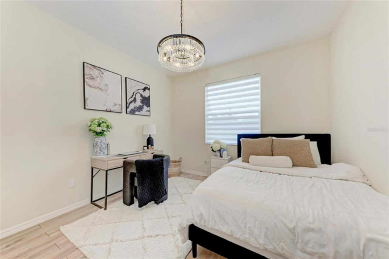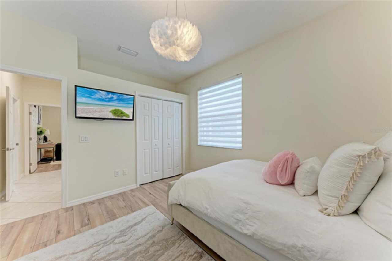 Beautifully updated and move-in ready, this bright and spacious 3-bedroom, 2-bath split floorplan home with a den offers the perfect blend of style and comfort. The owners have thoughtfully renovated both bathrooms and the kitchen, added new flooring, painted the interior and exterior, and installed a brand-new sprinkler system. The oversized kitchen is ideal for entertaining, while the formal dining room and cathedral ceilings add elegance and volume throughout the home. A newly added fireplace and TV feature wall create a stylish focal point in the living room. The master suite features a separate shower and soaking tub, plus a large walk-in closet. Step outside to the massive screened lanai and enjoy tranquil lake views. Additional features include a 2-car garage and a prime location just minutes from UTC, and conveniently close to Lakewood Ranch shops and dining.