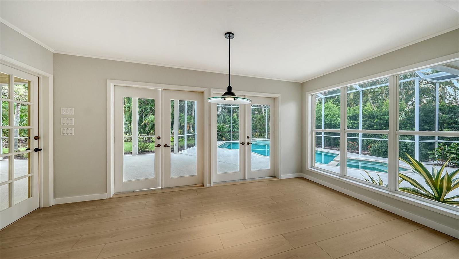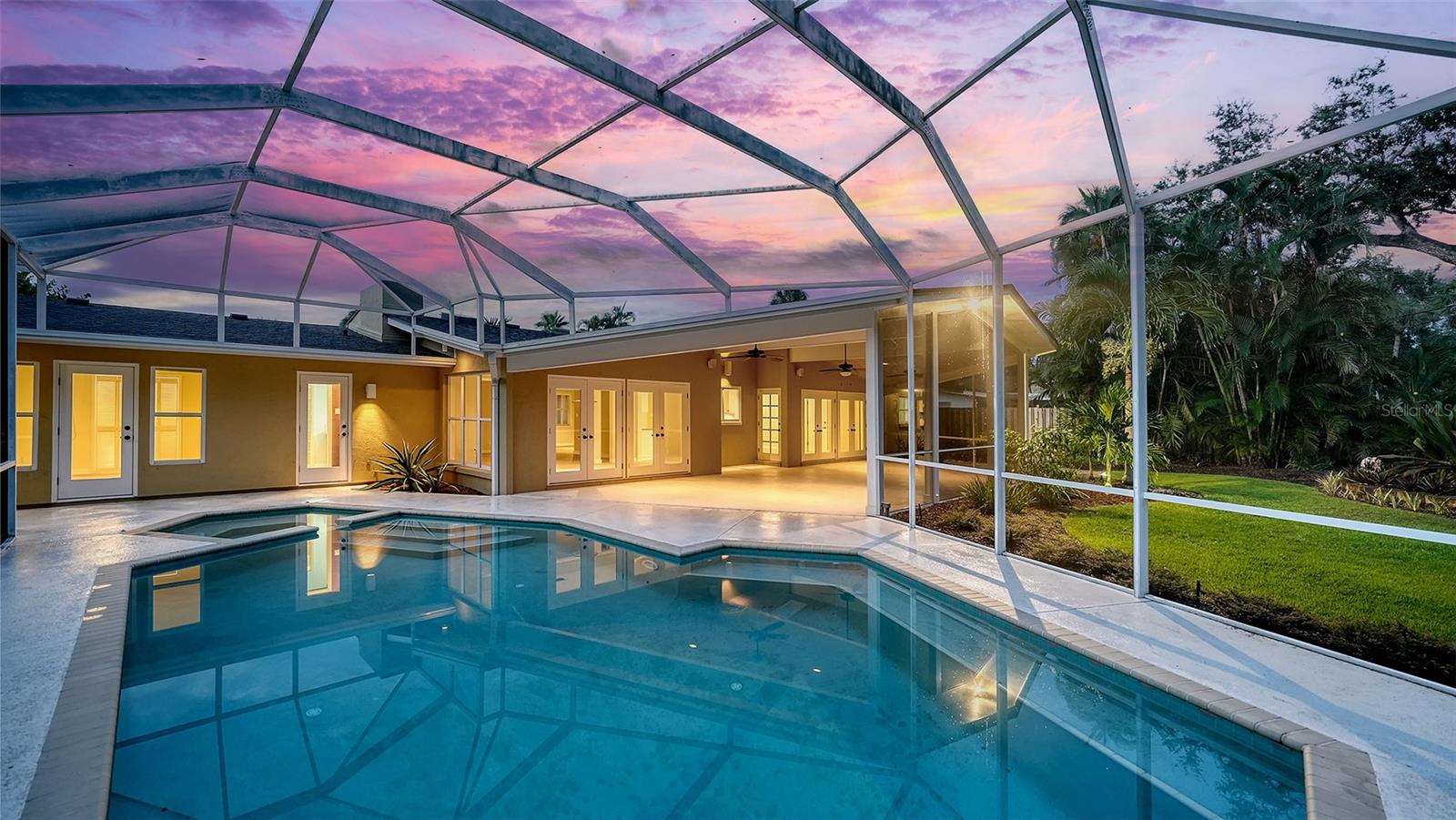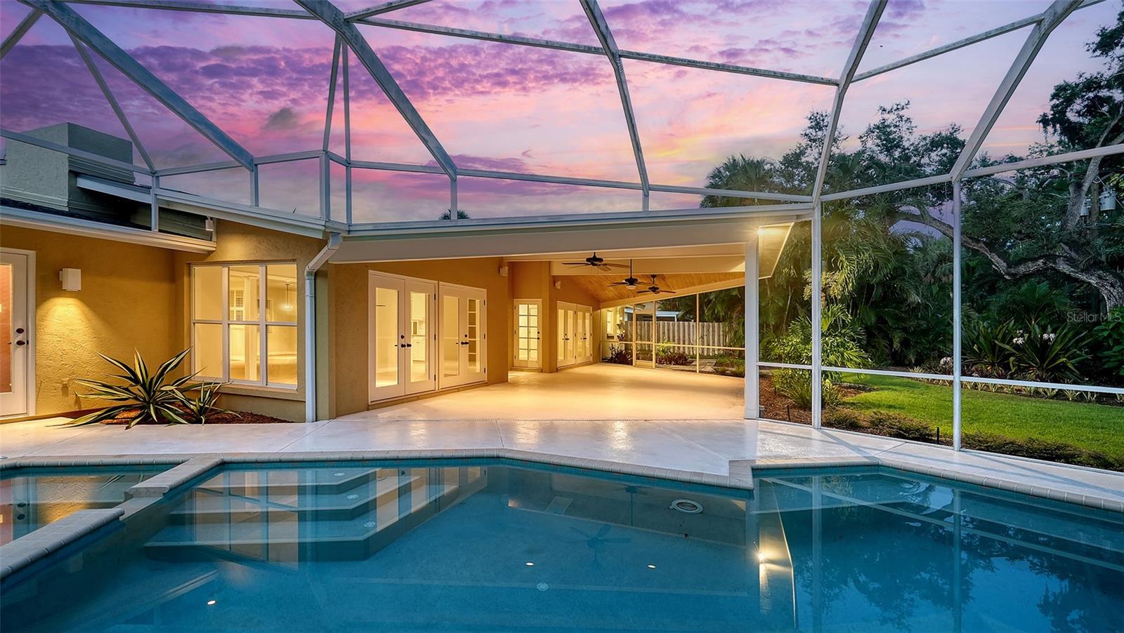 One or more photo(s) has been virtually staged. This expansive 3 bedroom, 3 bathroom home with a heated pool & spa is nestled on a quiet cul-de-sac off Bay Shore Rd in the neighborhood of Indian Beach - Sapphire Shores. This european-style home offers a lot of natural light, a wall of French doors to the stunning lanai with a vaulted tongue-and-groove ceiling, overlooking the beautiful backyard and the heated pool & spa area. A bonus room with its own bath allows multiple use options, family room, home office, gym or another bedroom. Even the garage has been enlarged and offers space for a workshop and/or up to 2-3 cars. The roof was just replaced in 2025, the flooring is brand new and the primary bath is updated as well. Overall a well maintained property with a great curb appeal. Enjoy the lifestyle of this area with easy access to downtown Sarasota, dining, shopping and waterfront activities. Just 1 mile south of the Ringling Museum.