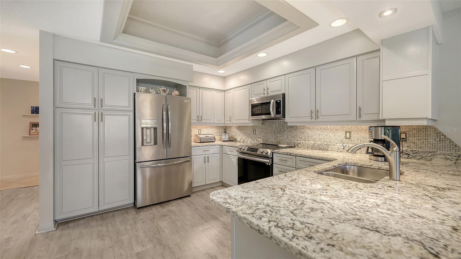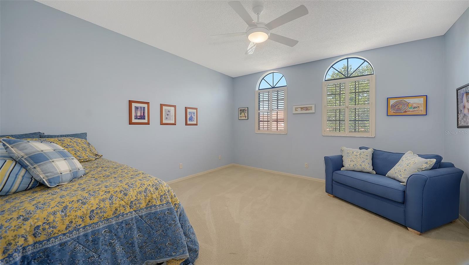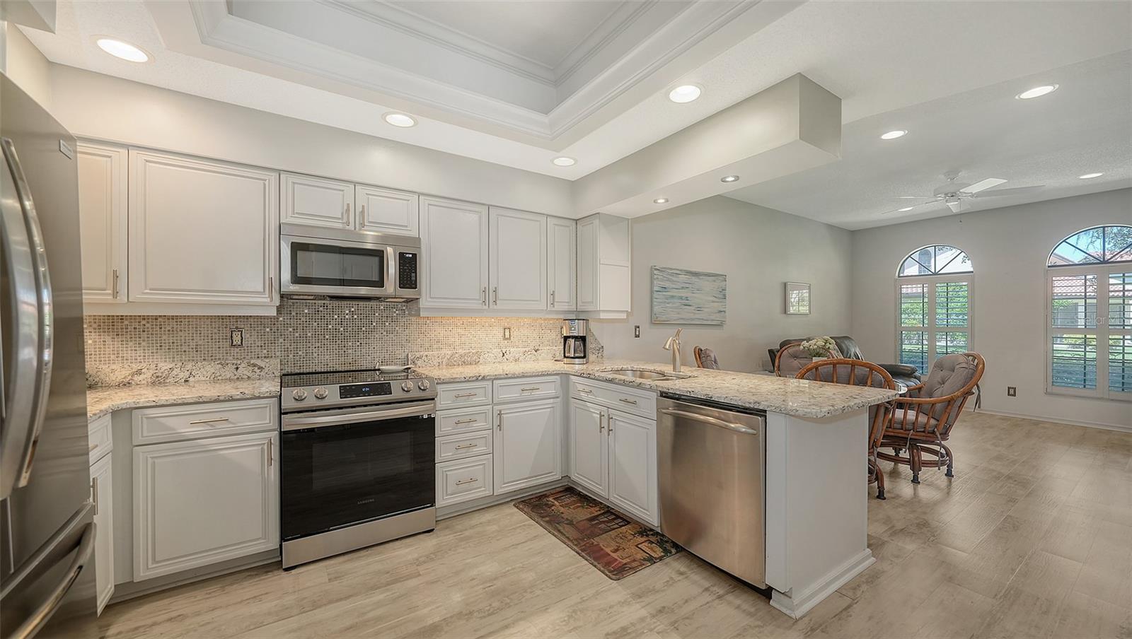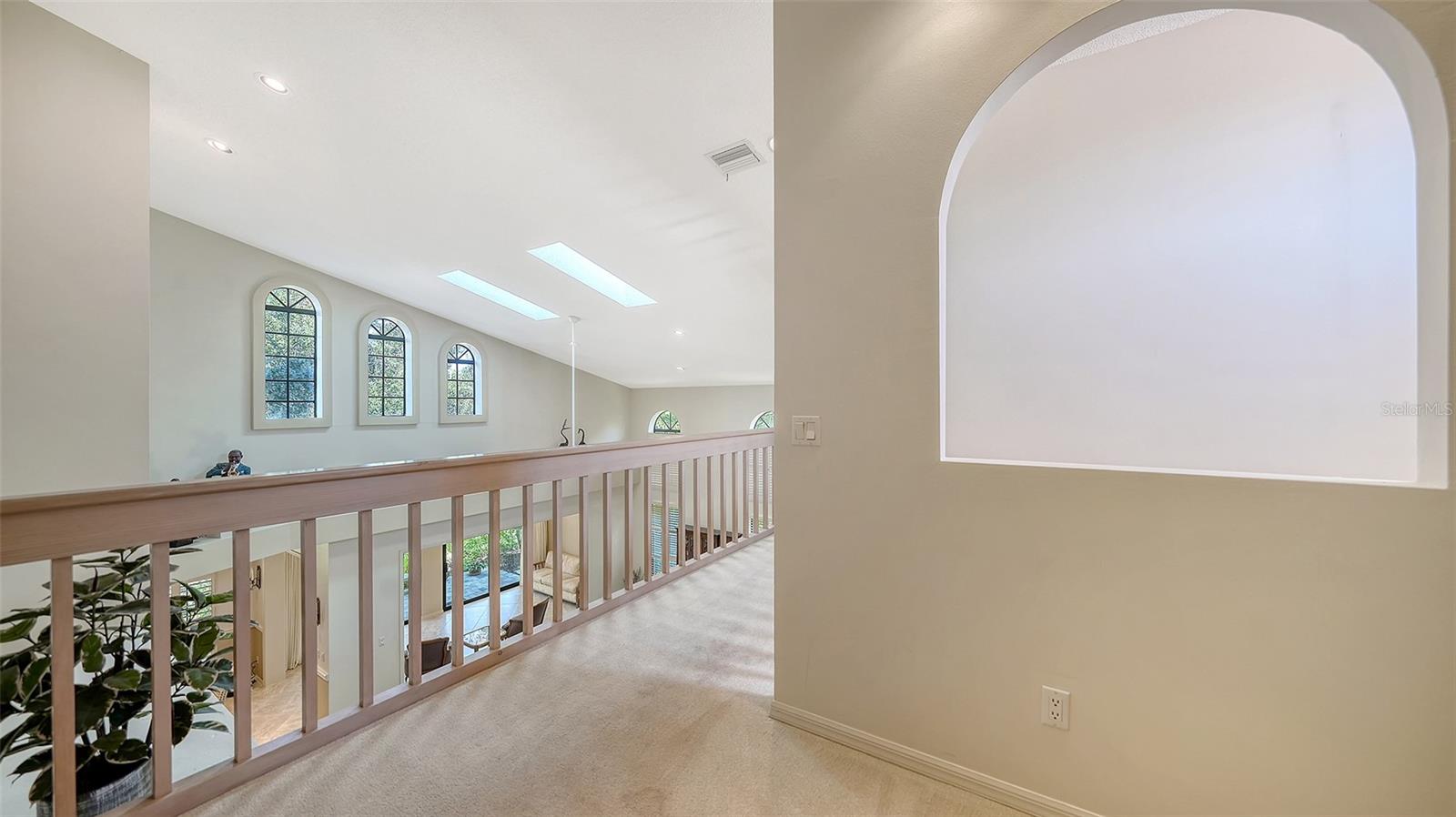 Welcome to this lovely 2-story, 3 bedroom, 3 bath maintenance-free home in Villa D’Este, nestled within the gated community of Prestancia in Palmer Ranch. This villa boasts a BRAND-NEW ROOF, SKYLIGHTS, DOWNSPOUTS, AND GUTTERS INSTALLED IN 2025. Step into the spacious great room, featuring soaring 25’ ceilings, skylights, large windows, a cozy wood-burning fireplace, and a built-in bookcase. The living area seamlessly transitions to the patio surrounded by lush tropical landscaping, perfect for entertaining or just relaxing on a beautiful Florida afternoon. The gourmet kitchen is a chef’s dream, equipped with stainless steel appliances, granite countertops, solid wood cabinetry, two pantries, a built-in desk, and a large breakfast nook with ample space for a table and sitting area. The master suite, on the main floor, is a luxurious retreat, offering two walk-in closets with custom built-ins and a spa-style bathroom complete with dual sinks, a soaking tub, a separate shower, a makeup vanity, a water closet, and a linen closet. The first floor also includes a formal dining room, a guest bedroom (currently used as an office), a full bath, and a laundry room with a sink and closet. Upstairs, a loft leads to a third bedroom with a walk-in closet, a linen closet, and a private bath, deal for guests or multigenerational living. Additional highlights include a two-car garage with built-in storage, hurricane-rated sliders, and proximity to the community heated pool and spa. Prestancia sits in the heart of Palmer Ranch, conveniently located just minutes from Siesta Key & Nokomis Beaches, the Legacy Trail, and a wide variety of shopping options and dining venues. The close proximity to Interstate 75 allows easy access to Downtown Sarasota and all that this vibrant city has to offer. Golf or social membership is optional.