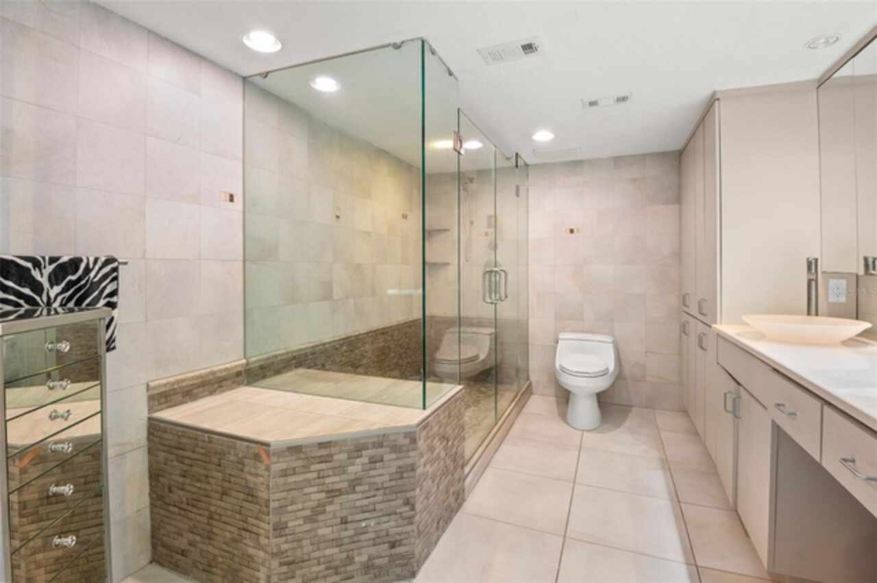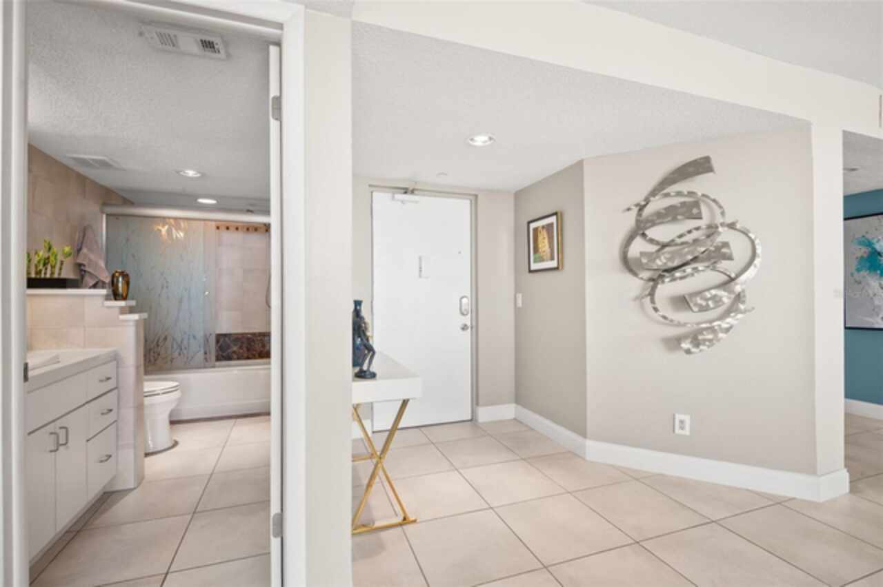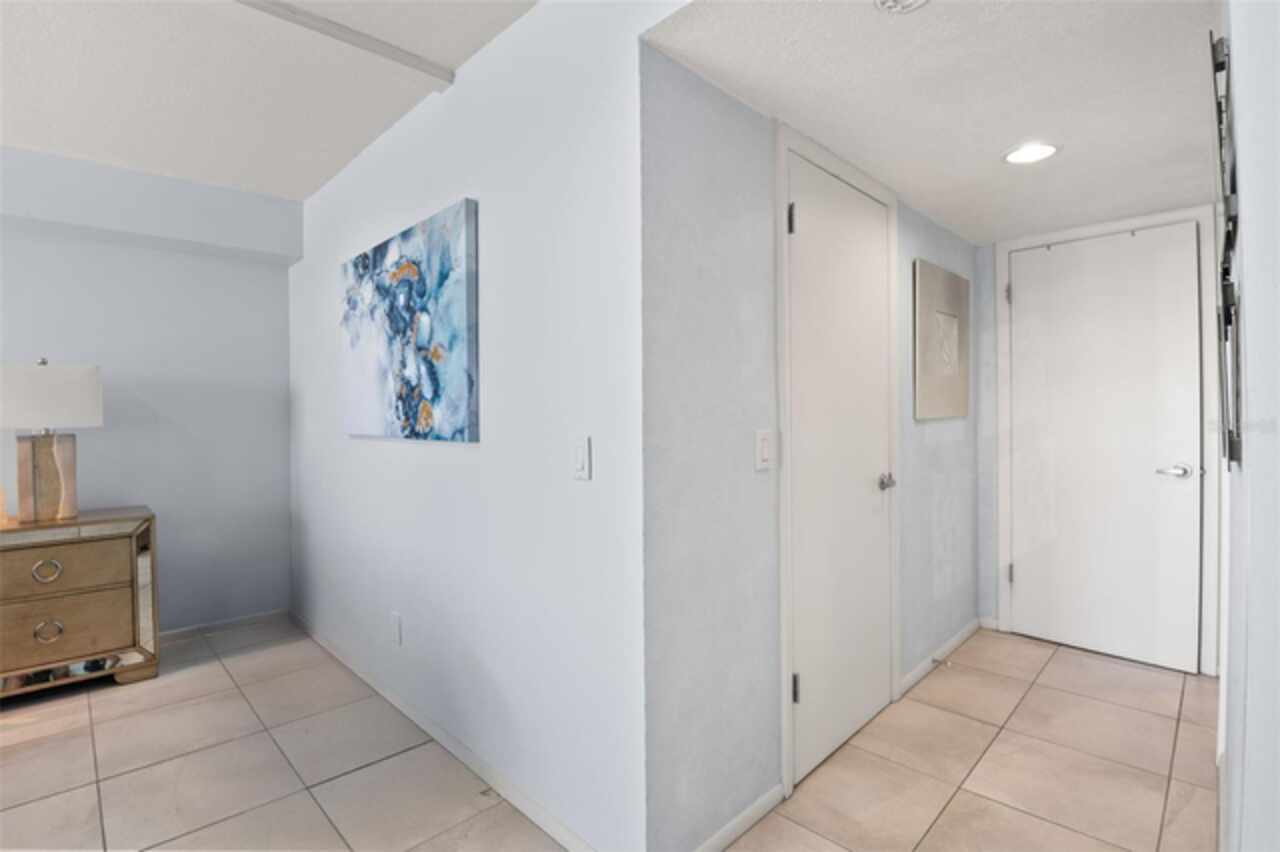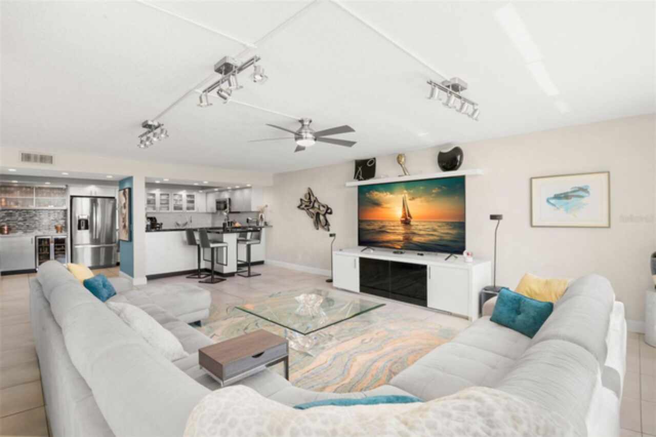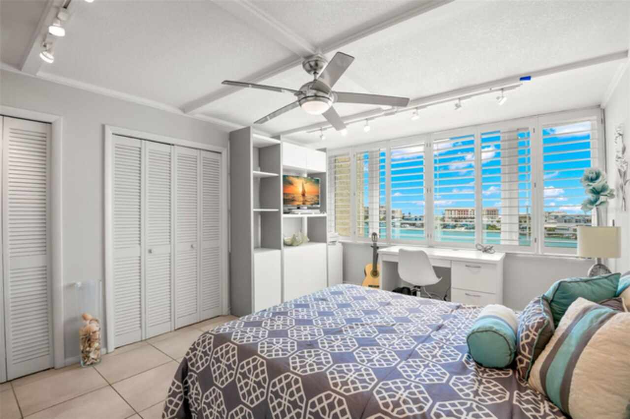 Welcome to waterfront living at its finest in this spacious 2-bedroom, 2-bath west facing condo boasting over 1, 900 square feet and breathtaking water views from every window. Perfectly situated in the highly desirable Island Estates community of Clearwater Beach, this residence offers the rare combination of size, location, and resort-style amenities. From the moment you step inside, the panoramic views of the Gulf, Intracoastal, pool, and marina will captivate you. The open floor plan is designed for both comfort and entertaining, featuring a beautifully updated kitchen with abundant custom storage, stainless steel appliances, double built-in ovens, wine refrigerator, designer granite countertops, and water views from the sink. A built-in seating area flows seamlessly into the expansive great room, while the dining area offers the perfect backdrop of passing boats and playful dolphins. Just off of the dining room you will find a private balcony with breathtaking views and a private storage room. The primary suite is a true retreat with sweeping water views, a private balcony for enjoying stunning sunsets, a large walk-in closet with built-ins, and a ensuite with double vessel sinks, generous storage, and an oversized walk-in shower with beautiful tile work and framless glass enclosure. The second bedroom also enjoys endless water views, a wall of closets, and custom plantation shutters. An updated second bathroom completes the layout, featuring a modern vanity and a tub/shower combo—offering comfort and convenience for guests or family. Storage is abundant with multiple hallway closets, plus a large laundry room with a full-size washer and dryer, water softener, and more cabinetry. Recent upgrades include brand-new impact windows and sliders, as well as a newer HVAC system (2020), providing peace of mind for years to come. This pet-friendly building welcomes one cat or dog up to 35 pounds and features secure entry, covered parking, private storage, tennis courts, fitness center, clubhouse, billiards, and so much more. Best of all, all special assessments will be covered by the seller. Move-in ready and meticulously maintained, this condo is the one you’ve been waiting for—schedule your private tour today and start living the waterfront lifestyle!