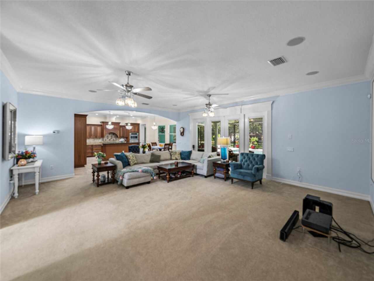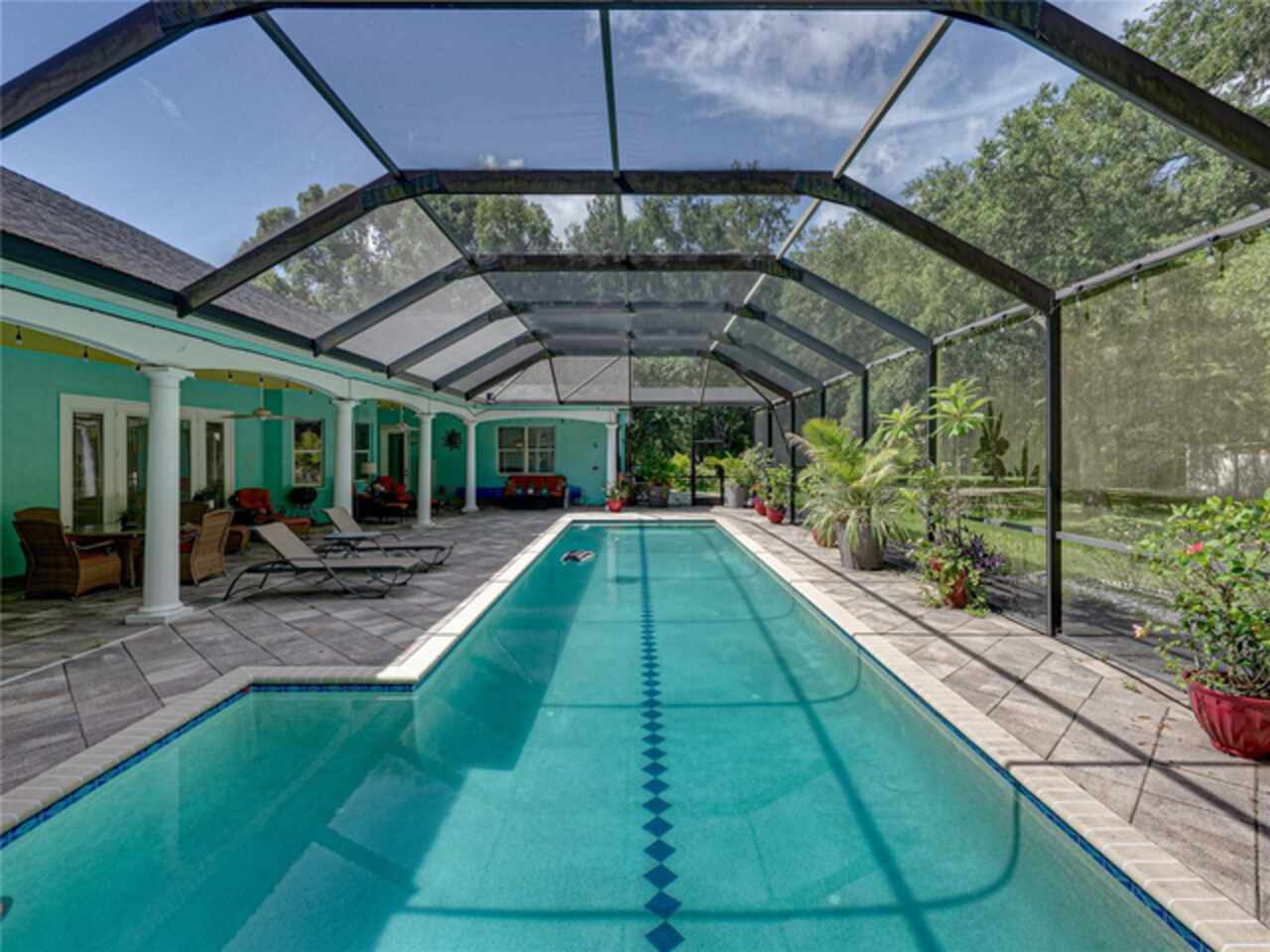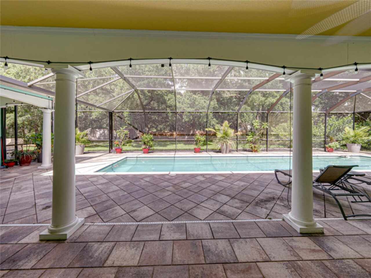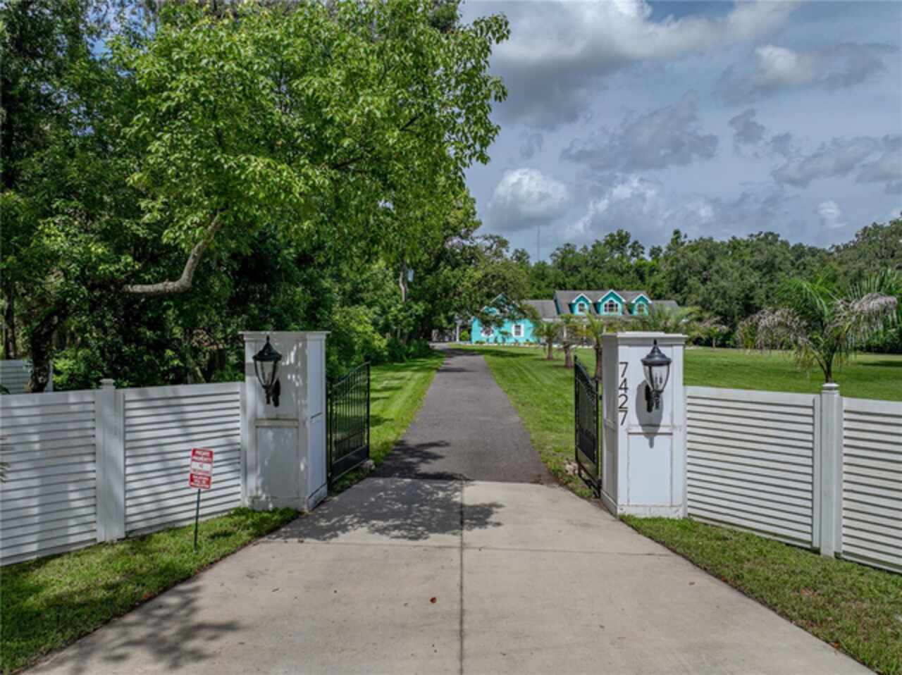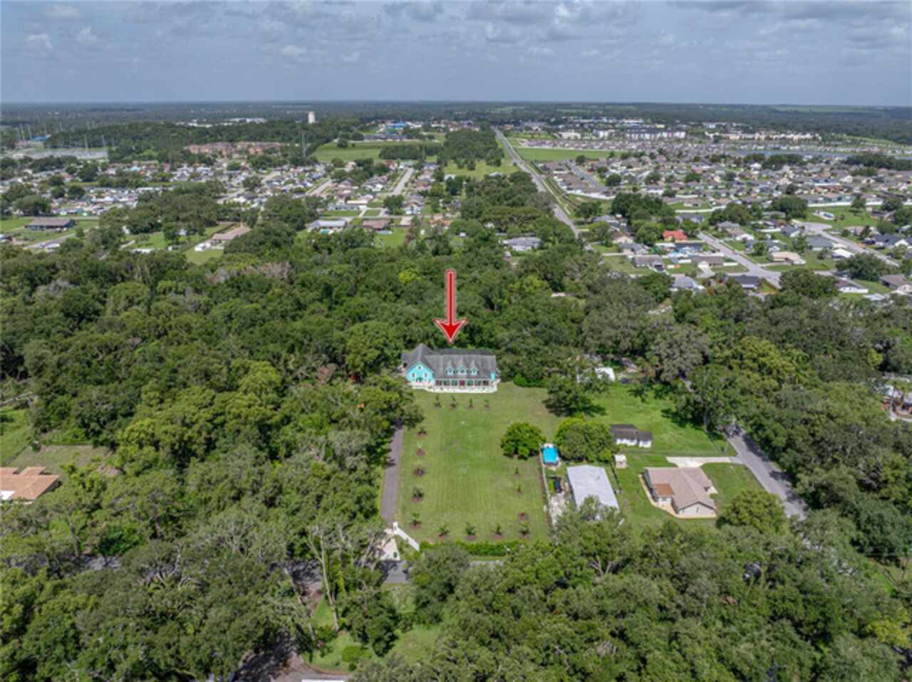 A private tropical retreat set on 1.96 carefully manicured acres, this 5 bedroom, 4 bathroom pool home offers the ultimate in flexibility, privacy, and style, including a full 1 bedroom in-law suite with its own kitchen, living room, private entry, and pool access. Behind the gated entry, a long driveway leads you through lush Florida landscaping to the classic covered front porch, a warm and inviting welcome to this spacious 4, 242 sq ft estate. Inside, you're greeted by a dramatic two-story foyer featuring decorative tile work and elegant stair railings. The main living areas are open and thoughtfully designed, with architectural archways, crown molding, built-in speakers, and elevated lighting fixtures throughout. French doors in the generous living room lead to the screened lanai, and the space offers clear views of the pristine eat-in kitchen, complete with stunning wood cabinetry, granite countertops, stainless steel appliances, a center island, and a cooktop accompanied by a custom range hood. Dining and entertaining here is effortless, with a sunny eat-in dinette, breakfast bar seating, and a formal dining room positioned near the front of the home. The first floor hosts two bedrooms and two full bathrooms, including a spacious guest bedroom with access to a full Jack-and-Jill bathroom, as well as an oversized peaceful primary suite offering pool views, private lanai access, a massive walk-in closet with custom organizers, and a luxurious ensuite bath with dual sinks and a custom walk-in shower featuring multiple showerheads, bench seating, and a glass enclosure. Upstairs, the home continues to impress with two additional generously sized bedrooms, a full guest bathroom, and a dedicated storage room for added functionality. The private in-law suite enhances the home's versatility- perfect for multigenerational living, long- term guests, or rental income opportunities. This self-contained space includes a full kitchen, living area, bedroom, full bathroom with direct pool access, and three private entrances: one through the garage, one from a separate covered front porch, and one from the pool deck. Its own dedicated laundry setup in the garage adds even more independence. Step outside to a massive screened pool deck finished in pavers and bordered by tranquil wooded views. Two storage sheds sit neatly on the property, and the welcomed shade from mature trees makes outdoor living as comfortable as it is scenic. With an additional 1, 823 sq ft of open porch space, there's no shortage of spots to relax and enjoy the meticulously maintained landscape. This is a truly special opportunity to own a sprawling estate in the heart of Zephyrhills. Contact us today to schedule your private tour.