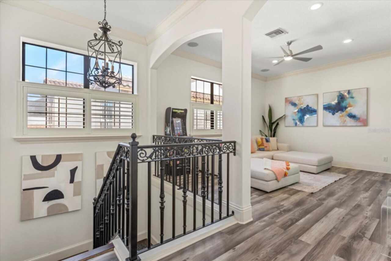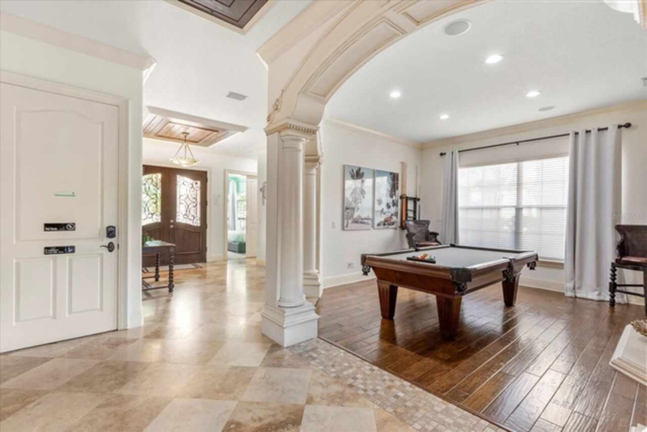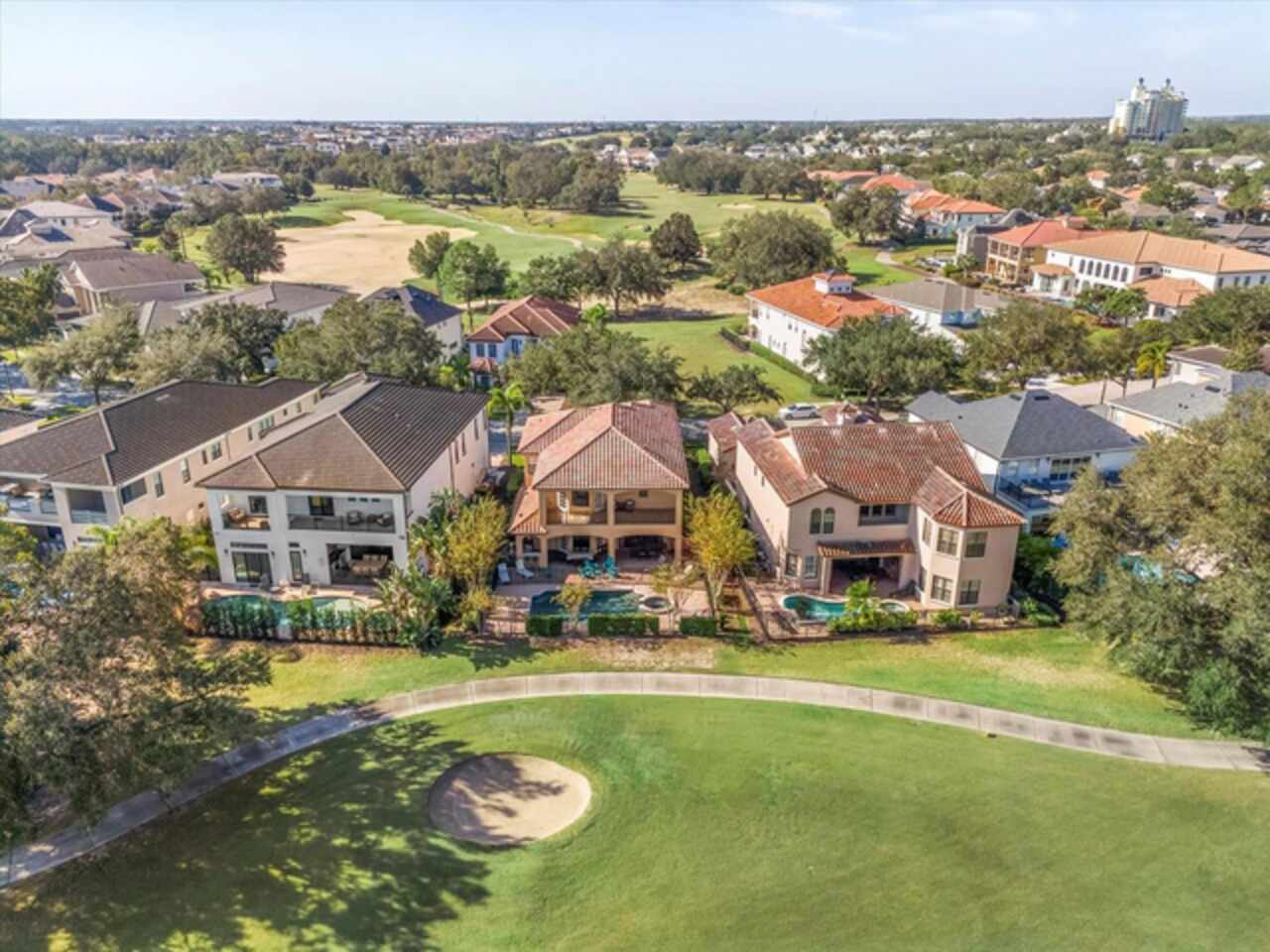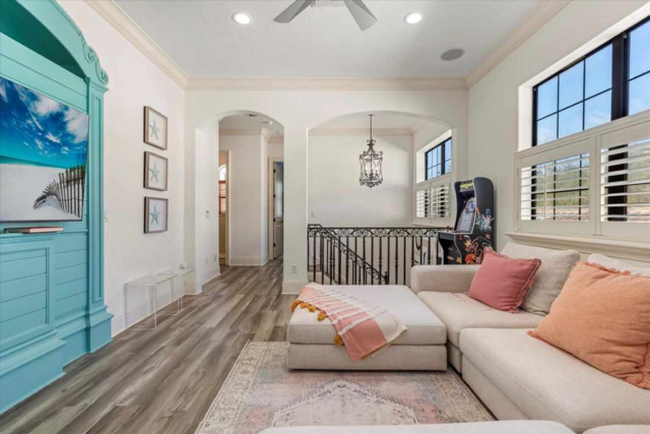 **Active Reunion Club Membership**New downstairs A/C & pool pump / filter installed 2025** Welcome to the renowned guard gated, golf community of Reunion Resort! Positioned with frontage, and beautiful views of the Tom Watson Signature golf course, this 5 bed 4 bath home is the golfers paradise. As you enter the home you will immediately notice the mediterranean style, beauty of this home. Travertine tile, and scraped wood flooring cover the entire first level of this home, with Lvp wood flooring being added to the second floor. Making your way through the home, you you will notice the custom features throughout including built in bookshelves in several areas of the home, custom wood accents on the ceiling, and a chef's kitchen. Downstairs you will find a lounge area in the center of the home, complete with a pool table, and a formal dining room directly across from it, allowing ample space for you and family to gather and create memories together. The chef's kitchen is complete with custom appliances to match the cabinets, granite countertops, and a seating area in the kitchen, overlooking the beautiful golf views, and the oversized pool. As you make your way up stairs you will notice that there is a second living room area, designed as a comfortable place for family and friends to come together and hangout, or watch a movie. Two theme rooms have been added to the home, giving a fun, safe area for the little ones to enjoy themselves, and make forever memories. This home is a true turnkey rental property, with bookings already in place that will convey to you at closing. Reunion Resort is a luxury resort, that also allows short term rental, and is a top choice for visitors of all ages, Reunion features 12 Pools In The Community, Including a multimillion dollar water park, Complete with a lazy river, splash park for the little ones, tiki bar, & Water Slides, 3 championship golf courses, 5 restaurants, tennis/pickleball courts, putt putt golf, and many more amenities, making Reunion truly a city within gates. This home is turnkey, and has so much more to appreciate, that you will have to see in person to appreciate. It is now your turn to call Reunion Resort your new home.