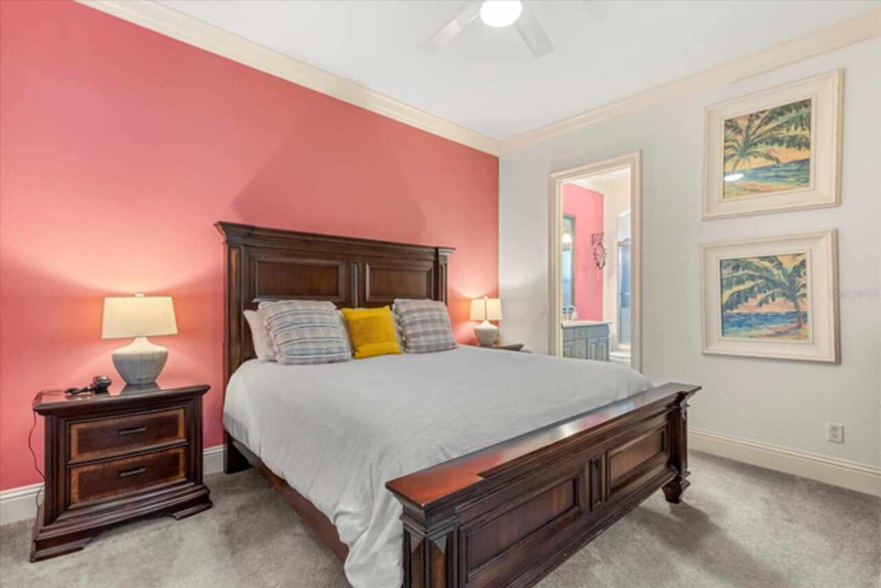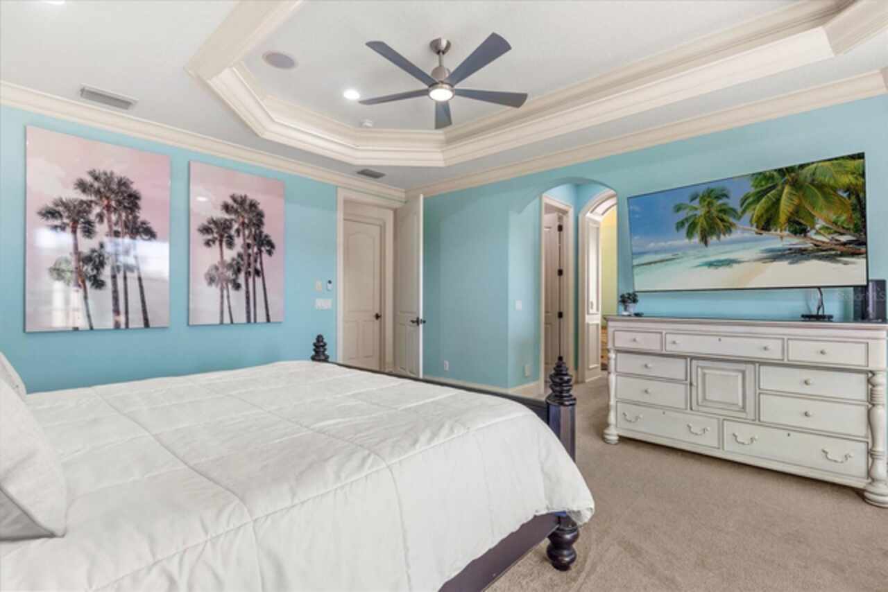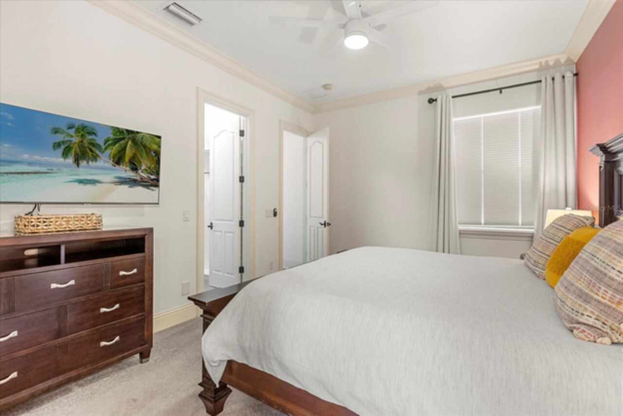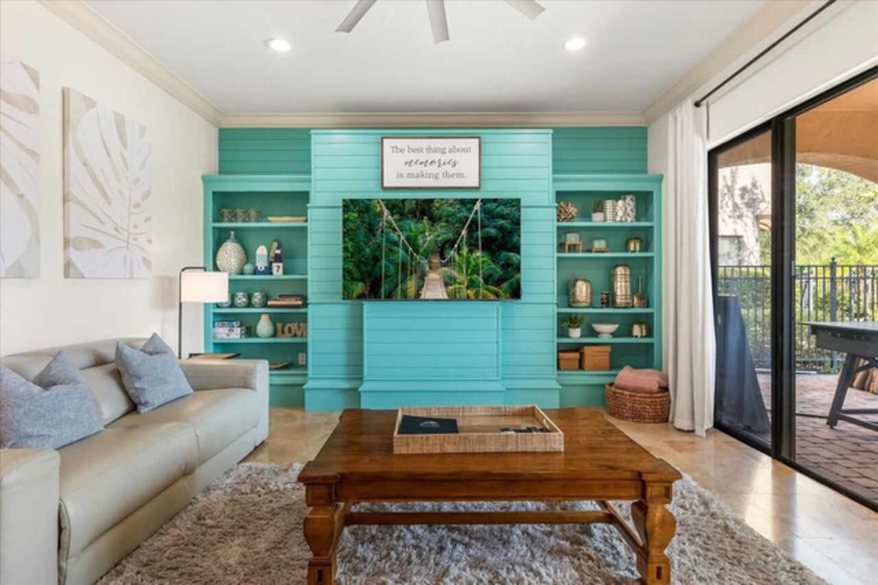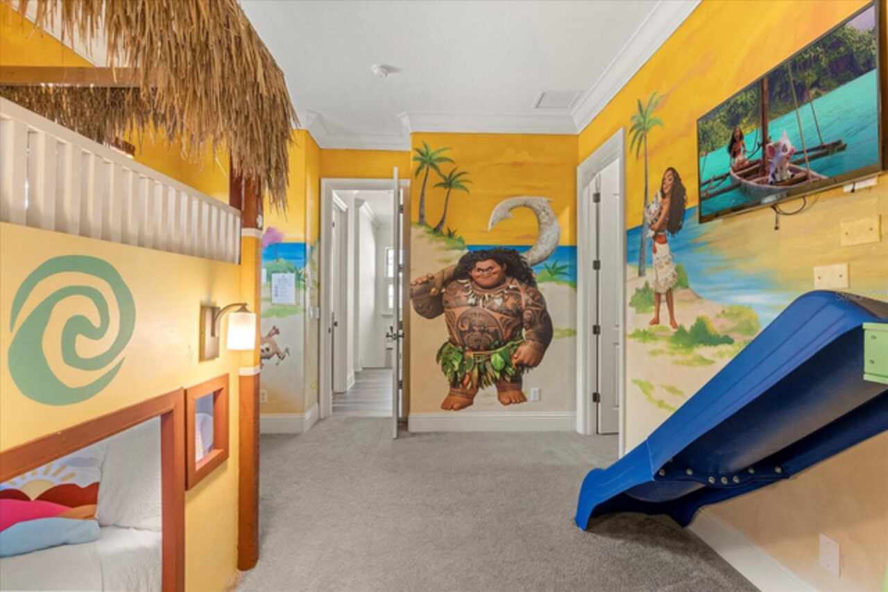 **Active Reunion Club Membership**New downstairs A/C & pool pump / filter installed 2025** Welcome to the renowned guard gated, golf community of Reunion Resort! Positioned with frontage, and beautiful views of the Tom Watson Signature golf course, this 5 bed 4 bath home is the golfers paradise. As you enter the home you will immediately notice the mediterranean style, beauty of this home. Travertine tile, and scraped wood flooring cover the entire first level of this home, with Lvp wood flooring being added to the second floor. Making your way through the home, you you will notice the custom features throughout including built in bookshelves in several areas of the home, custom wood accents on the ceiling, and a chef's kitchen. Downstairs you will find a lounge area in the center of the home, complete with a pool table, and a formal dining room directly across from it, allowing ample space for you and family to gather and create memories together. The chef's kitchen is complete with custom appliances to match the cabinets, granite countertops, and a seating area in the kitchen, overlooking the beautiful golf views, and the oversized pool. As you make your way up stairs you will notice that there is a second living room area, designed as a comfortable place for family and friends to come together and hangout, or watch a movie. Two theme rooms have been added to the home, giving a fun, safe area for the little ones to enjoy themselves, and make forever memories. This home is a true turnkey rental property, with bookings already in place that will convey to you at closing. Reunion Resort is a luxury resort, that also allows short term rental, and is a top choice for visitors of all ages, Reunion features 12 Pools In The Community, Including a multimillion dollar water park, Complete with a lazy river, splash park for the little ones, tiki bar, & Water Slides, 3 championship golf courses, 5 restaurants, tennis/pickleball courts, putt putt golf, and many more amenities, making Reunion truly a city within gates. This home is turnkey, and has so much more to appreciate, that you will have to see in person to appreciate. It is now your turn to call Reunion Resort your new home.