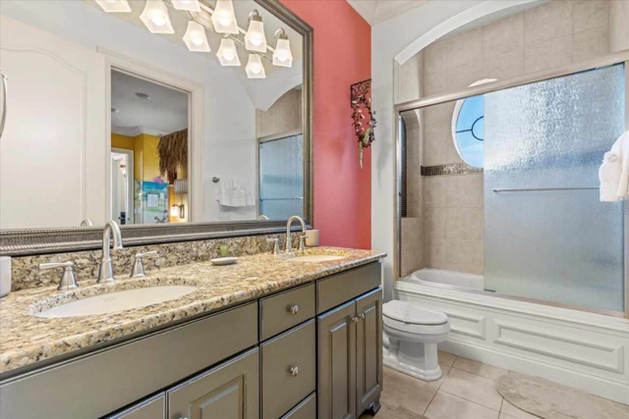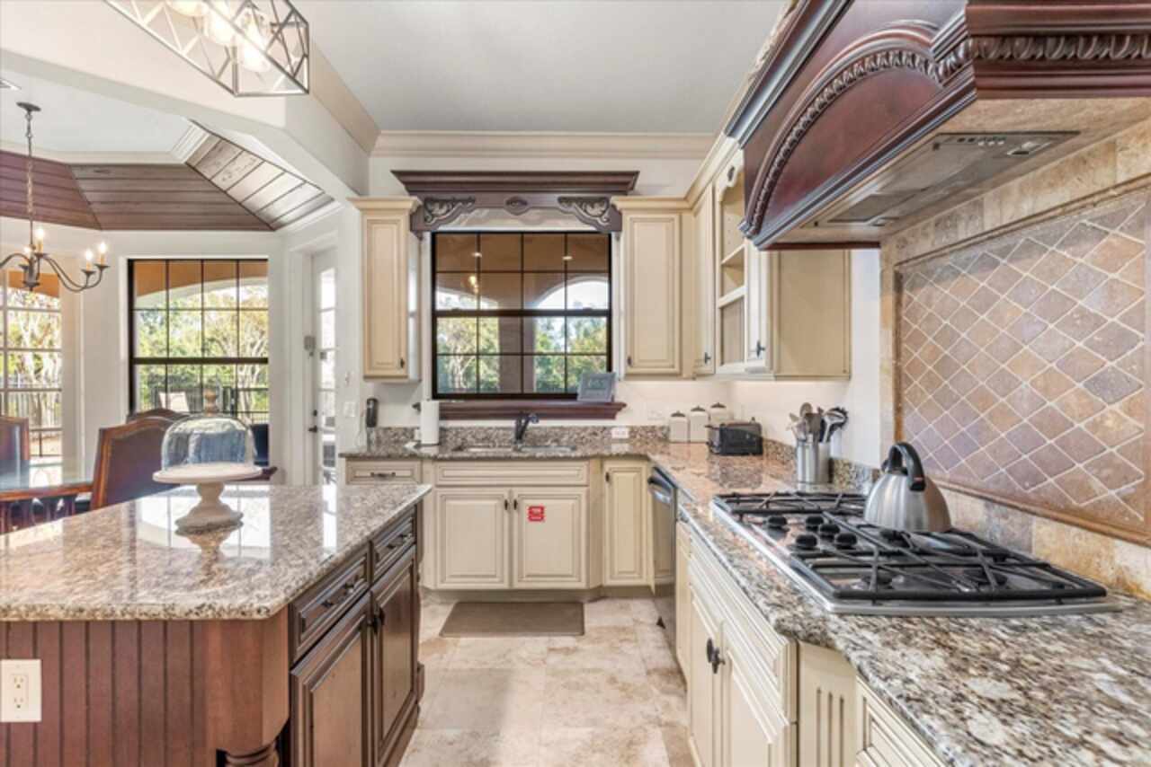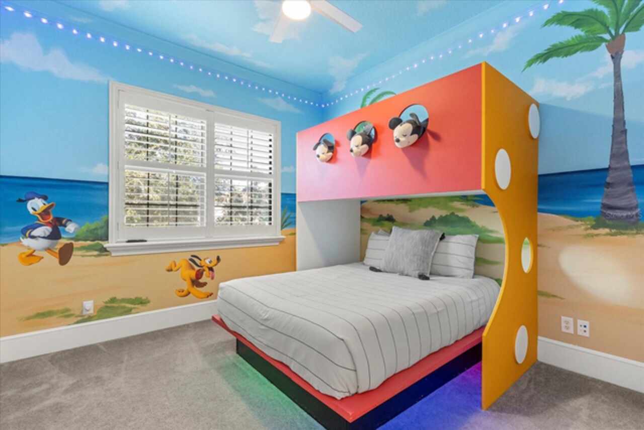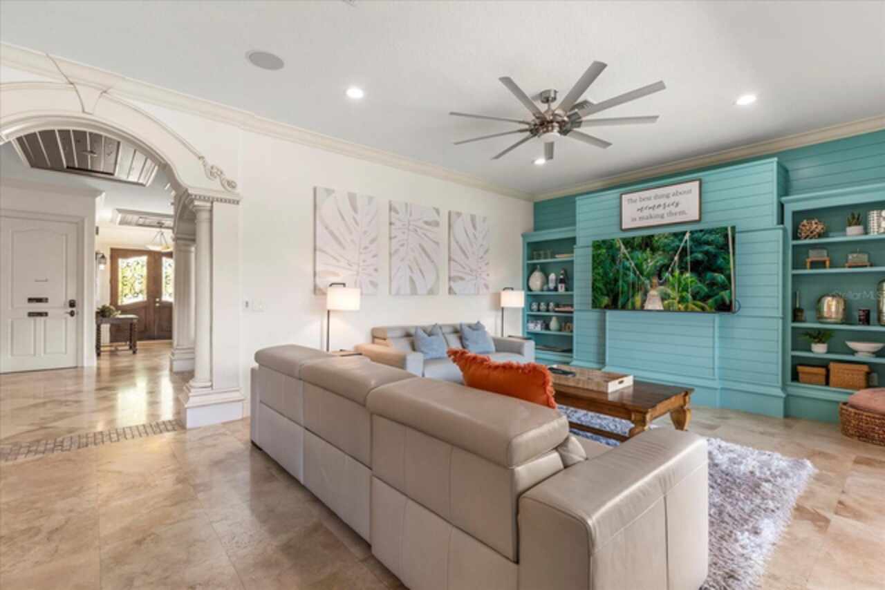 **Active Reunion Club Membership**New downstairs A/C & pool pump / filter installed 2025** Welcome to the renowned guard gated, golf community of Reunion Resort! Positioned with frontage, and beautiful views of the Tom Watson Signature golf course, this 5 bed 4 bath home is the golfers paradise. As you enter the home you will immediately notice the mediterranean style, beauty of this home. Travertine tile, and scraped wood flooring cover the entire first level of this home, with Lvp wood flooring being added to the second floor. Making your way through the home, you you will notice the custom features throughout including built in bookshelves in several areas of the home, custom wood accents on the ceiling, and a chef's kitchen. Downstairs you will find a lounge area in the center of the home, complete with a pool table, and a formal dining room directly across from it, allowing ample space for you and family to gather and create memories together. The chef's kitchen is complete with custom appliances to match the cabinets, granite countertops, and a seating area in the kitchen, overlooking the beautiful golf views, and the oversized pool. As you make your way up stairs you will notice that there is a second living room area, designed as a comfortable place for family and friends to come together and hangout, or watch a movie. Two theme rooms have been added to the home, giving a fun, safe area for the little ones to enjoy themselves, and make forever memories. This home is a true turnkey rental property, with bookings already in place that will convey to you at closing. Reunion Resort is a luxury resort, that also allows short term rental, and is a top choice for visitors of all ages, Reunion features 12 Pools In The Community, Including a multimillion dollar water park, Complete with a lazy river, splash park for the little ones, tiki bar, & Water Slides, 3 championship golf courses, 5 restaurants, tennis/pickleball courts, putt putt golf, and many more amenities, making Reunion truly a city within gates. This home is turnkey, and has so much more to appreciate, that you will have to see in person to appreciate. It is now your turn to call Reunion Resort your new home.