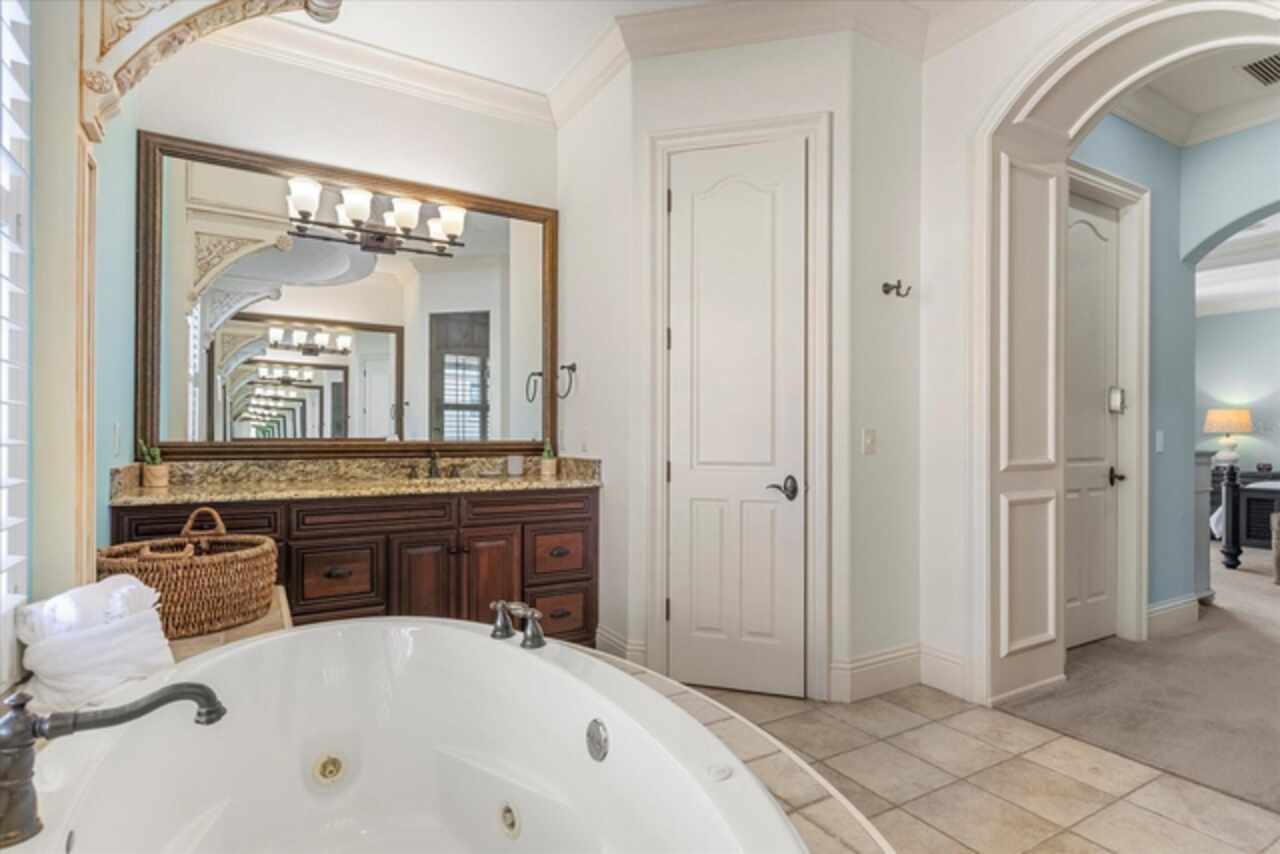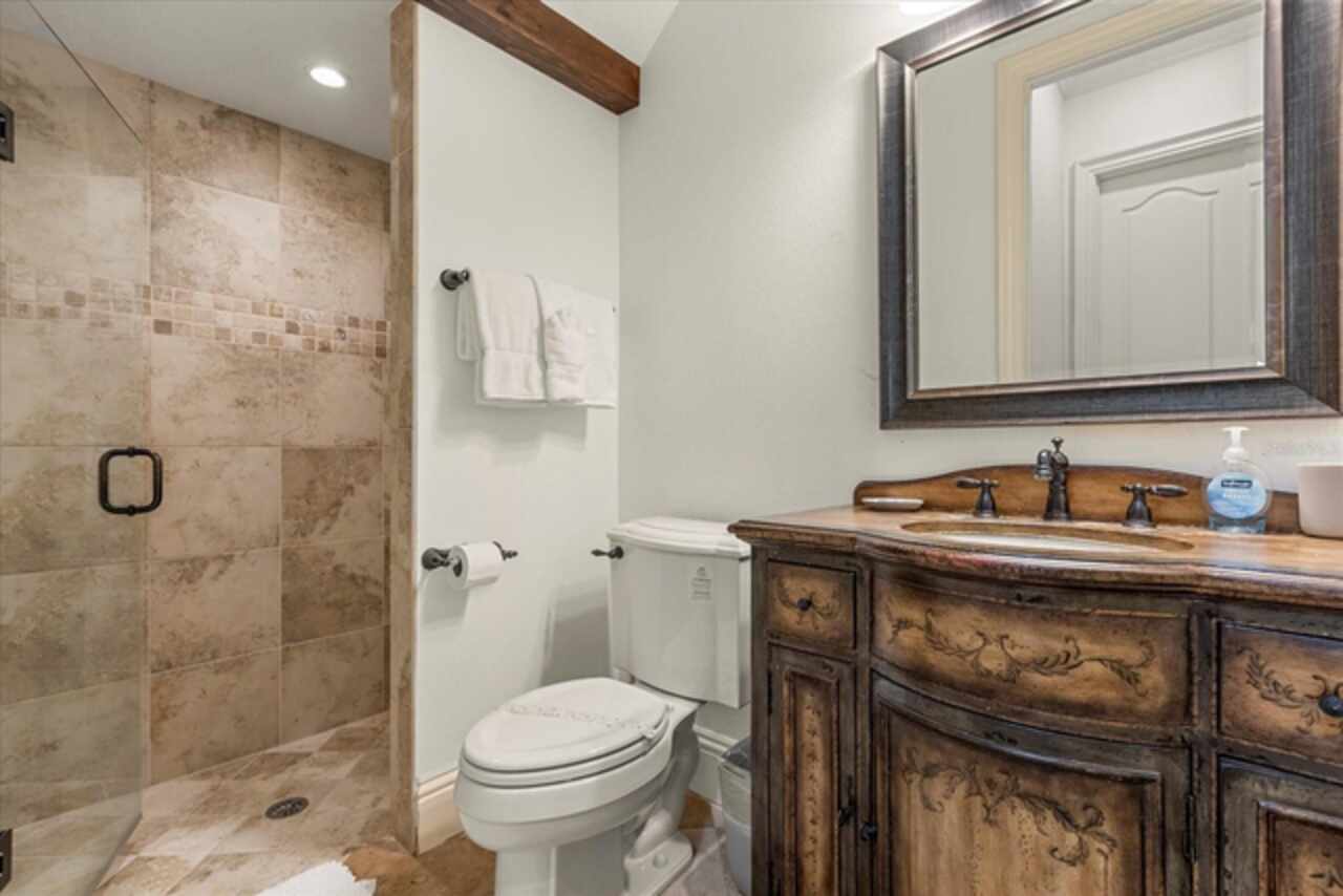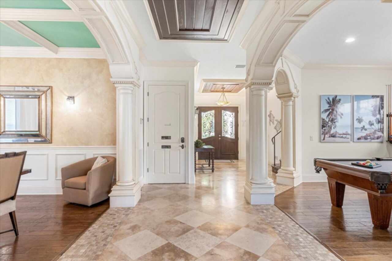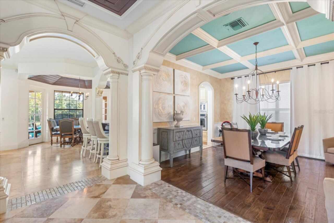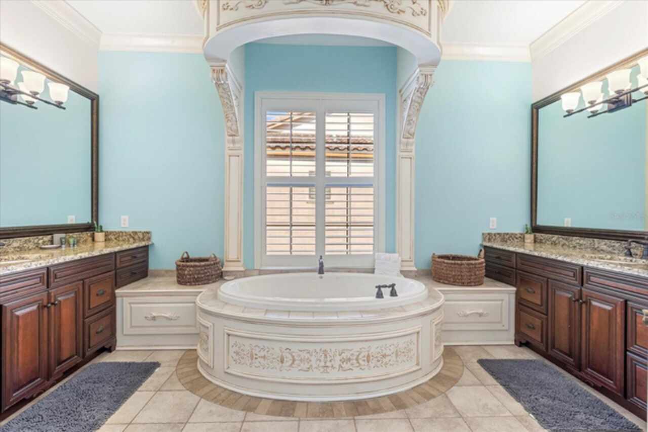**Active Reunion Club Membership**New downstairs A/C & pool pump / filter installed 2025** Welcome to the renowned guard gated, golf community of Reunion Resort! Positioned with frontage, and beautiful views of the Tom Watson Signature golf course, this 5 bed 4 bath home is the golfers paradise. As you enter the home you will immediately notice the mediterranean style, beauty of this home. Travertine tile, and scraped wood flooring cover the entire first level of this home, with Lvp wood flooring being added to the second floor. Making your way through the home, you you will notice the custom features throughout including built in bookshelves in several areas of the home, custom wood accents on the ceiling, and a chef's kitchen. Downstairs you will find a lounge area in the center of the home, complete with a pool table, and a formal dining room directly across from it, allowing ample space for you and family to gather and create memories together. The chef's kitchen is complete with custom appliances to match the cabinets, granite countertops, and a seating area in the kitchen, overlooking the beautiful golf views, and the oversized pool. As you make your way up stairs you will notice that there is a second living room area, designed as a comfortable place for family and friends to come together and hangout, or watch a movie. Two theme rooms have been added to the home, giving a fun, safe area for the little ones to enjoy themselves, and make forever memories. This home is a true turnkey rental property, with bookings already in place that will convey to you at closing. Reunion Resort is a luxury resort, that also allows short term rental, and is a top choice for visitors of all ages, Reunion features 12 Pools In The Community, Including a multimillion dollar water park, Complete with a lazy river, splash park for the little ones, tiki bar, & Water Slides, 3 championship golf courses, 5 restaurants, tennis/pickleball courts, putt putt golf, and many more amenities, making Reunion truly a city within gates. This home is turnkey, and has so much more to appreciate, that you will have to see in person to appreciate. It is now your turn to call Reunion Resort your new home.