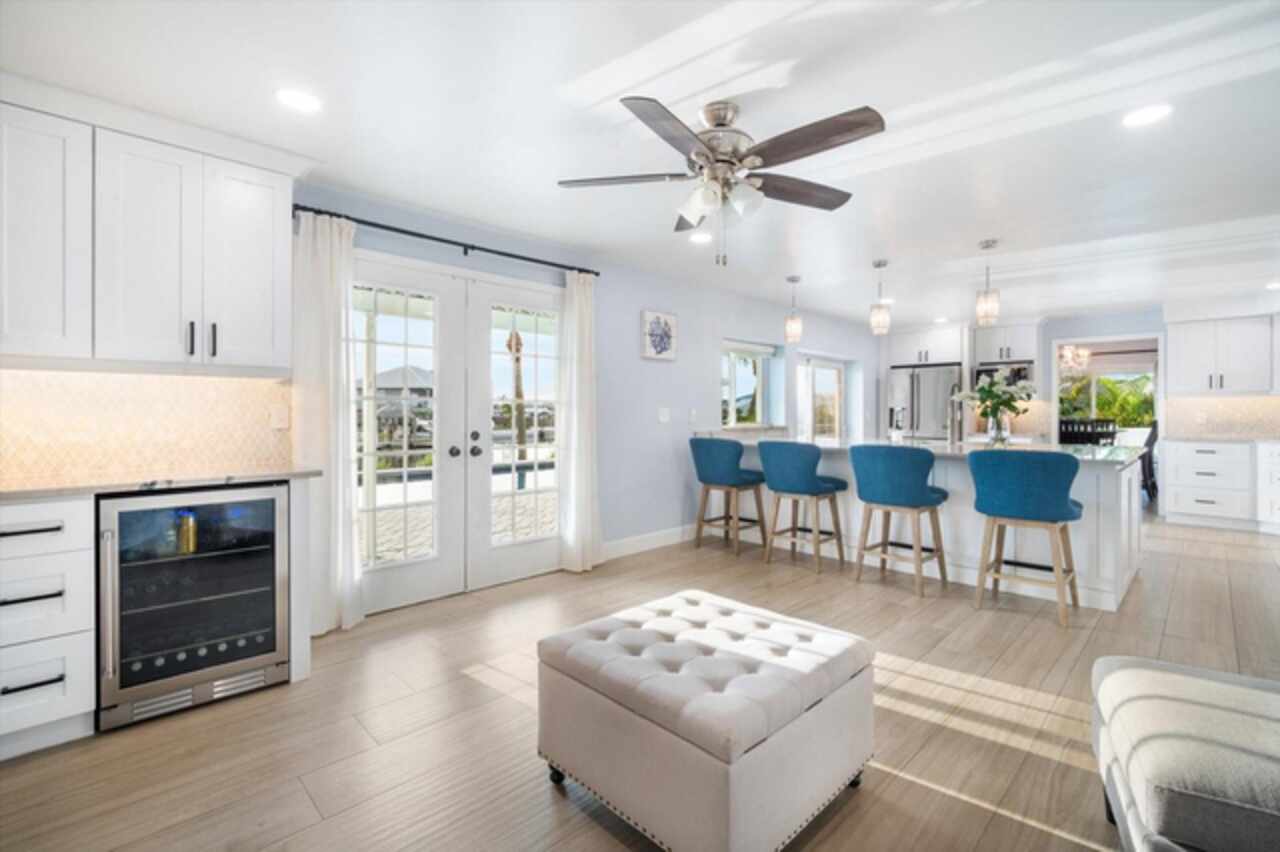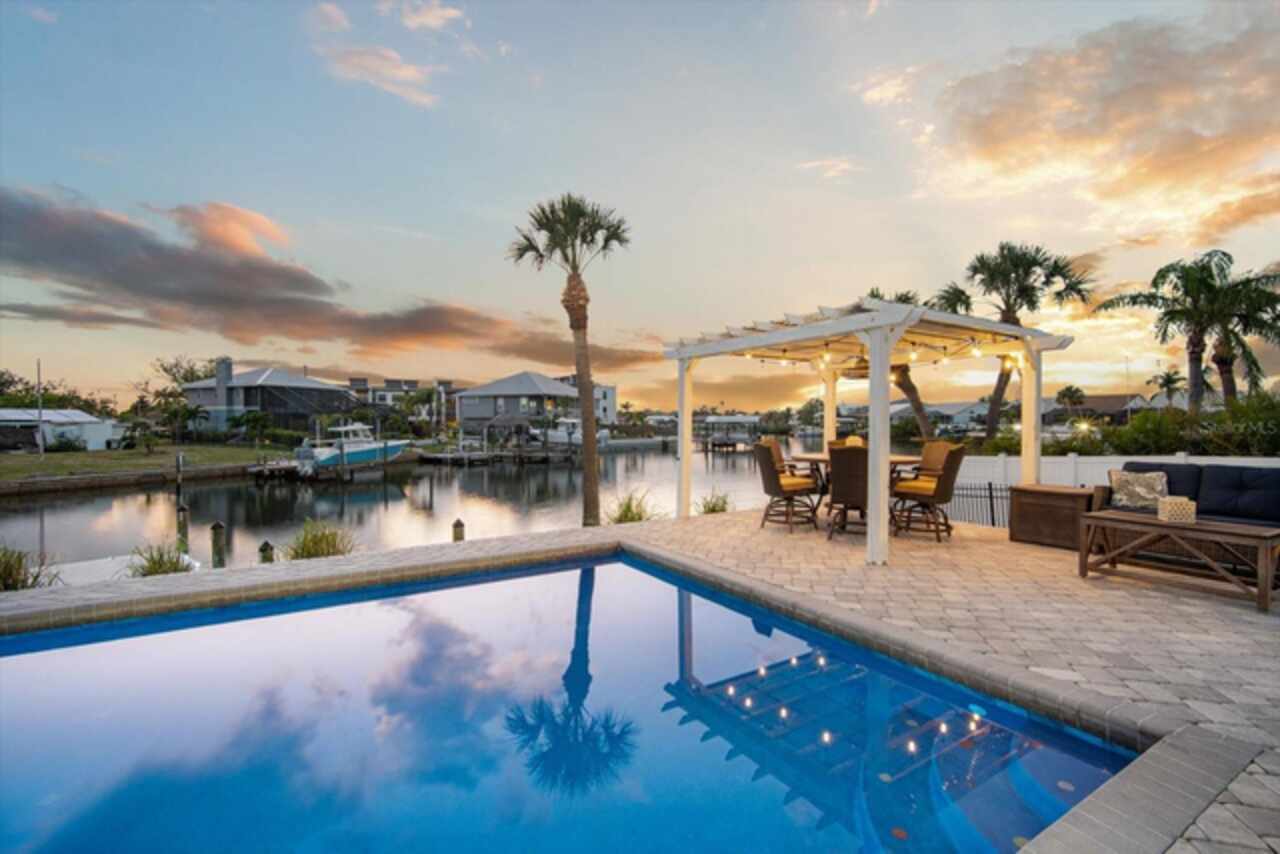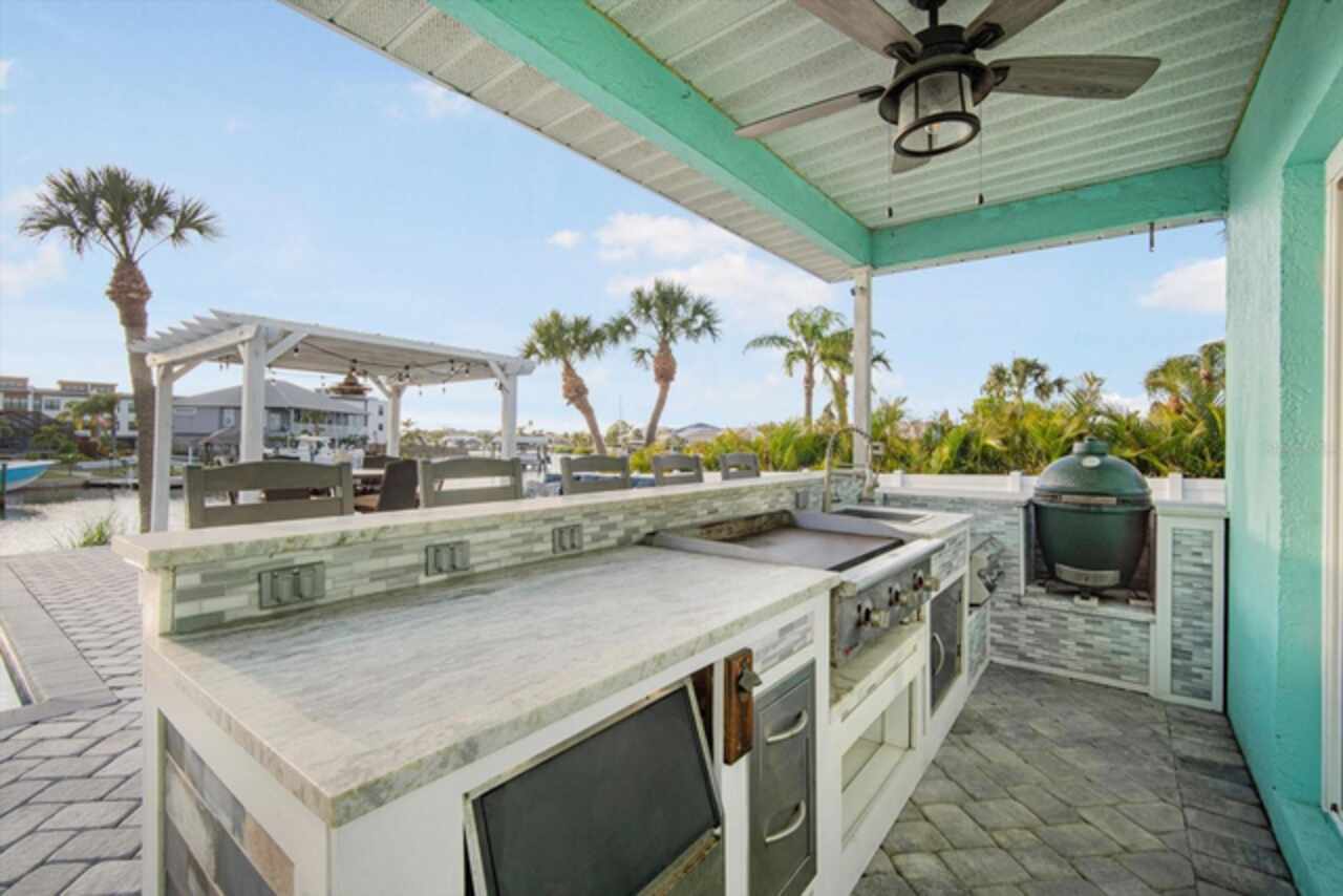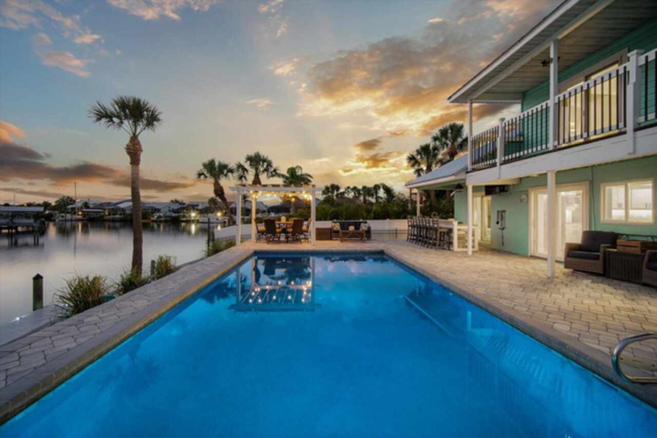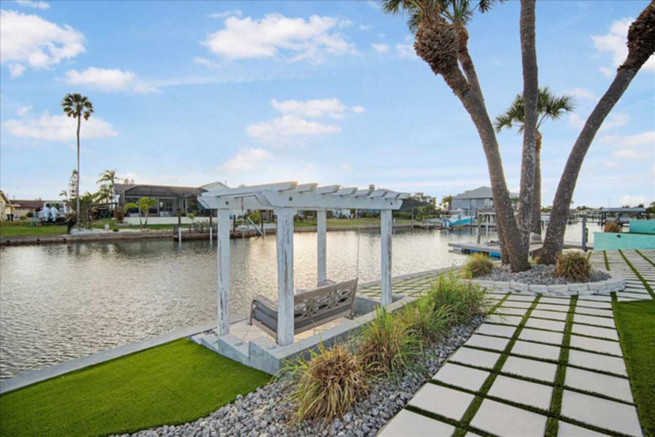 Take a Vacation in your own backyard. Price adjusted to way below appraisal value. Your dream waterfront lifestyle starts here. This beautifully remodeled home in Apollo Beach brings together all the best elements of Florida living—boating, entertaining, relaxing, and soaking in the sunshine. Situated at the end of a quiet cul-de-sac, this elevated 4-bedroom home with a dedicated home office and a spacious 3-car garage sits on a generous 1/3-acre lot with 160 feet of seawall and stunning wide canal views. No HOA or rental restrictions here! Income Producing Short Term Rental as a possibility with this one as well. Flood Insurance is transferable so this saves you $$$. Step into your personal paradise, where a brand-new dock (March 2024), 6, 000 lb boat lift, and deep water access put Tampa Bay just 8 minutes away by boat. Whether you're cruising into open water or enjoying a peaceful sunset from your private balcony off the primary suite, this home is built for those who love life on the water. When it’s time to entertain, the outdoor setup is second to none. A sparkling pool with lighting features, a pergola for shaded dining, a private beach area for laid-back lounging, and a fully equipped outdoor kitchen with a grill, and sink create the ultimate backyard retreat. Indoors, the home continues to impress with thoughtful updates and stylish finishes throughout. The welcoming first floor features a bright living room with a fireplace and cozy window seat, a formal dining room with views of the water, and a beautifully remodeled kitchen outfitted with upgraded appliances, pot filler, elegant backsplash, and bar seating. A separate bar area with a wine cooler, mini fridge, and sink adds even more space for entertaining. You’ll also find a full bath and a flexible home office or fifth bedroom on this level. Upstairs, the spacious primary suite offers a custom closet with barn doors, an en-suite bathroom with double sinks and a walk-in shower, and that dreamy balcony overlooking the pool and canal. Three additional bedrooms and a full bath complete the second floor, each offering peaceful water views. All of this, plus the peace of mind knowing the elevated home remained unaffected by recent hurricanes. Living in Apollo Beach means more than just owning a waterfront home— it means access to nearby parks, waterfront dining, marinas, and a strong sense of community. Whether you're boating to dinner, catching a sunset by the bay, or simply enjoying the breeze from your hammock under the palms, you'll quickly discover why so many are proud to call Apollo Beach home. Schedule your private showing and come experience Florida waterfront living the way it’s meant to be.
