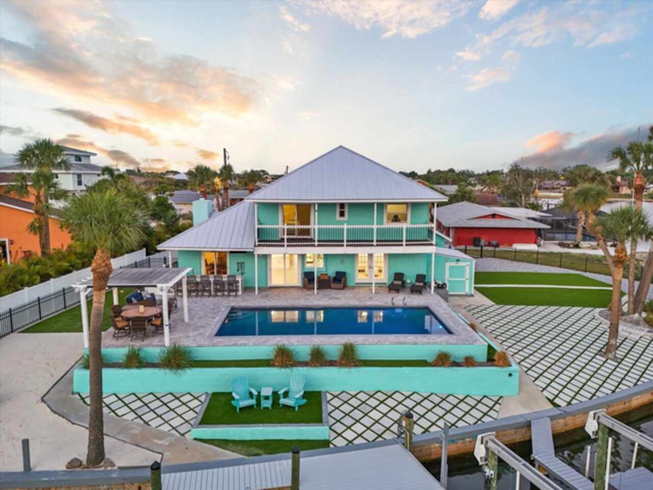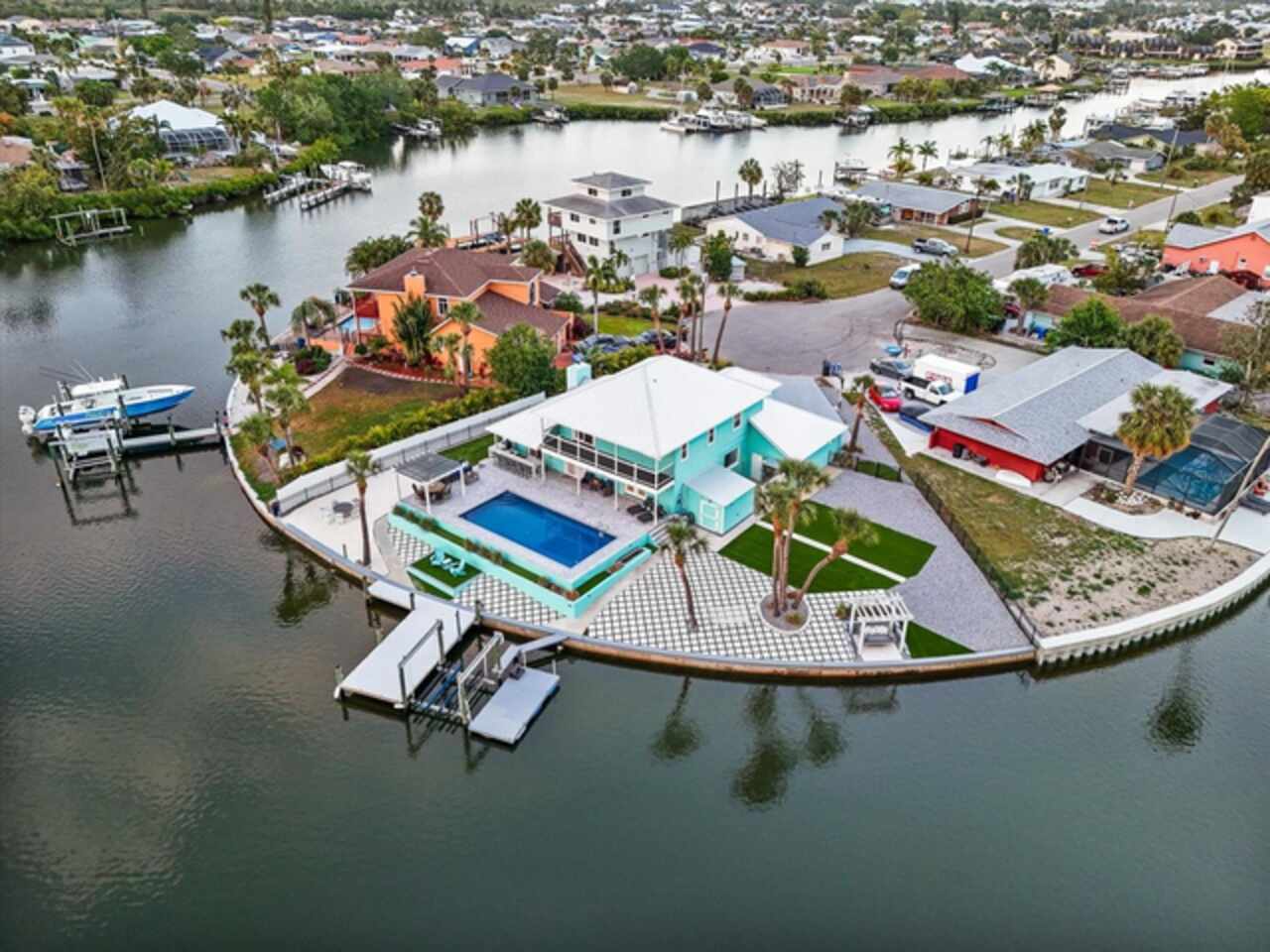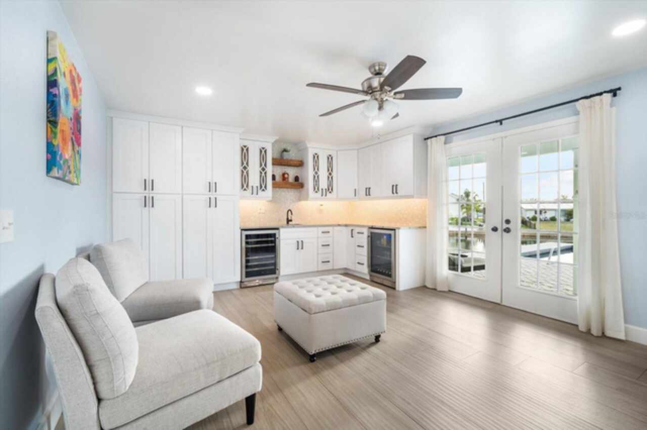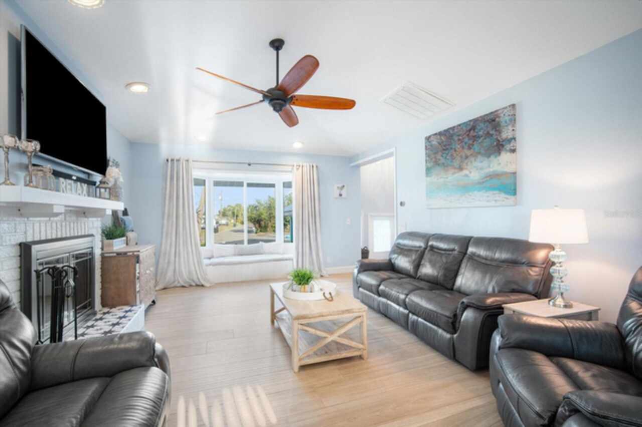 Take a Vacation in your own backyard. Price adjusted to way below appraisal value. Your dream waterfront lifestyle starts here. This beautifully remodeled home in Apollo Beach brings together all the best elements of Florida living—boating, entertaining, relaxing, and soaking in the sunshine. Situated at the end of a quiet cul-de-sac, this elevated 4-bedroom home with a dedicated home office and a spacious 3-car garage sits on a generous 1/3-acre lot with 160 feet of seawall and stunning wide canal views. No HOA or rental restrictions here! Income Producing Short Term Rental as a possibility with this one as well. Flood Insurance is transferable so this saves you $$$. Step into your personal paradise, where a brand-new dock (March 2024), 6, 000 lb boat lift, and deep water access put Tampa Bay just 8 minutes away by boat. Whether you're cruising into open water or enjoying a peaceful sunset from your private balcony off the primary suite, this home is built for those who love life on the water. When it’s time to entertain, the outdoor setup is second to none. A sparkling pool with lighting features, a pergola for shaded dining, a private beach area for laid-back lounging, and a fully equipped outdoor kitchen with a grill, and sink create the ultimate backyard retreat. Indoors, the home continues to impress with thoughtful updates and stylish finishes throughout. The welcoming first floor features a bright living room with a fireplace and cozy window seat, a formal dining room with views of the water, and a beautifully remodeled kitchen outfitted with upgraded appliances, pot filler, elegant backsplash, and bar seating. A separate bar area with a wine cooler, mini fridge, and sink adds even more space for entertaining. You’ll also find a full bath and a flexible home office or fifth bedroom on this level. Upstairs, the spacious primary suite offers a custom closet with barn doors, an en-suite bathroom with double sinks and a walk-in shower, and that dreamy balcony overlooking the pool and canal. Three additional bedrooms and a full bath complete the second floor, each offering peaceful water views. All of this, plus the peace of mind knowing the elevated home remained unaffected by recent hurricanes. Living in Apollo Beach means more than just owning a waterfront home— it means access to nearby parks, waterfront dining, marinas, and a strong sense of community. Whether you're boating to dinner, catching a sunset by the bay, or simply enjoying the breeze from your hammock under the palms, you'll quickly discover why so many are proud to call Apollo Beach home. Schedule your private showing and come experience Florida waterfront living the way it’s meant to be.