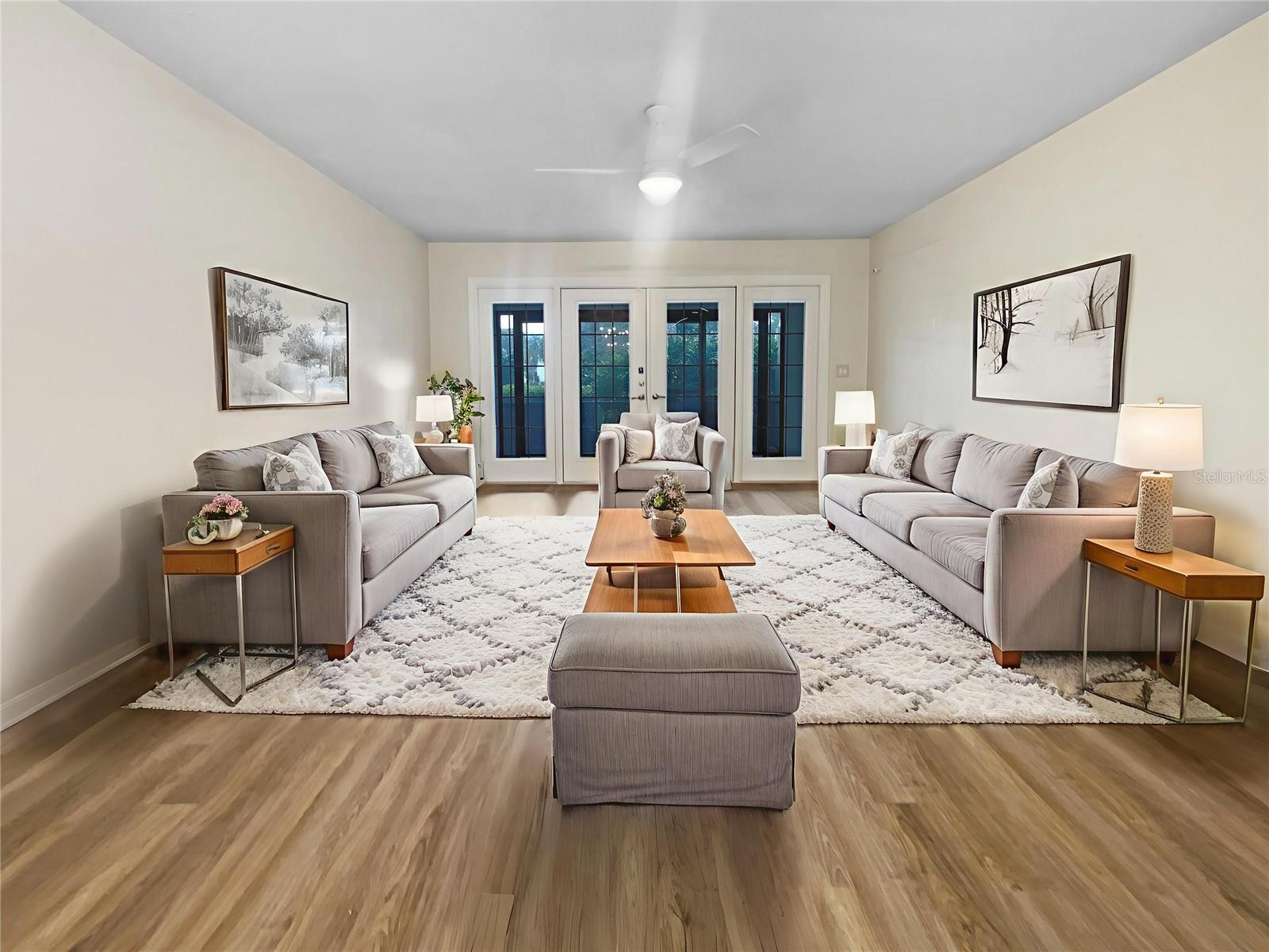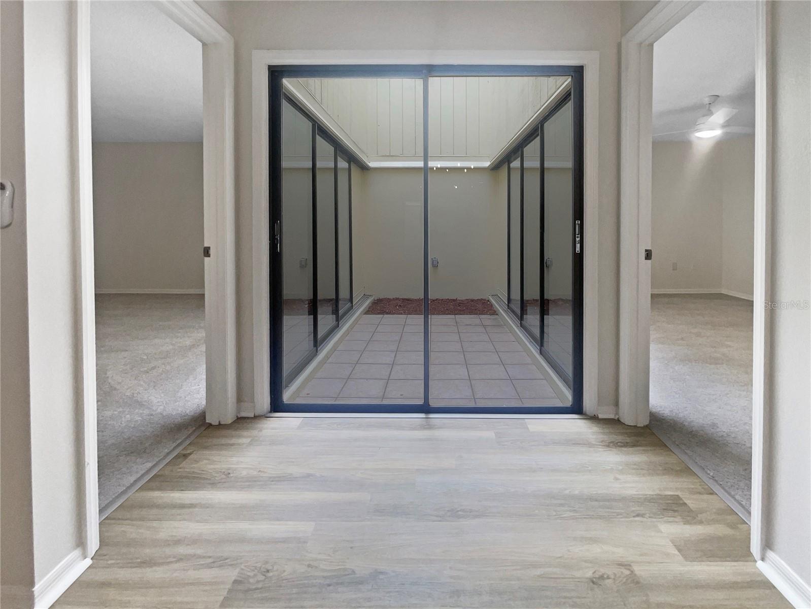 One or more photo(s) has been virtually staged. Welcome to this beautifully maintained property that is sure to impress. This home offers 2-bedrooms, 2-bathrooms with a spacious 2-car garage and is nestled in the tranquil and sought-after Ballantrae neighborhood. The HOA fees cover Cable TV. Seller is willing to cover up to six (6) months of buyer’s Homeowners Association (HOA) dues with an acceptable offer. From the moment you arrive, you’ll appreciate the peaceful setting and charming curb appeal. Step through the inviting courtyard and into the front screened-in porch—perfect for enjoying your morning coffee or relaxing with a good book. The home boasts a neutral color paint scheme that provides a calming and inviting atmosphere. As you enter the home, you’ll be greeted by an abundance of natural light and a stunning central atrium that brings the beauty of the outdoors inside. The interior of the home has been freshly painted and newly installed LVP flooring, adding to the overall appeal. The kitchen is equipped with all stainless steel appliances, offering a sleek and modern look. The kitchen also features a cozy breakfast nook and a bar area, ideal for casual dining or entertaining guests. The open-concept layout flows seamlessly into the living and dining areas, creating an airy, welcoming atmosphere. The second bedroom is generously sized and includes a large walk-in closet for ample storage. The second bedroom also features direct access to the guest bathroom for added convenience. The primary bedroom features a spacious walk-in closet, providing ample storage space. The spacious primary suite also offers a private en-suite bath with a large walk-in shower. Step through the French doors to a fully enclosed back porch with sliding glass panels, allowing you to enjoy the Florida weather year-round—whether opened for a breeze or closed for comfort. This property is a perfect blend of style and comfort, making it a must-see. Don't miss out on this opportunity to own a home that truly stands out. Located just minutes from shopping, dining, medical facilities, and entertainment, and only a short drive to the world-renowned beaches of Siesta Key, this home truly offers the best of Florida living. Don’t miss this incredible opportunity—schedule your private showing today!