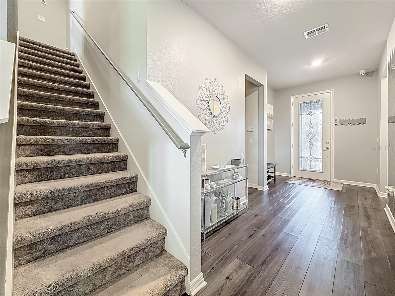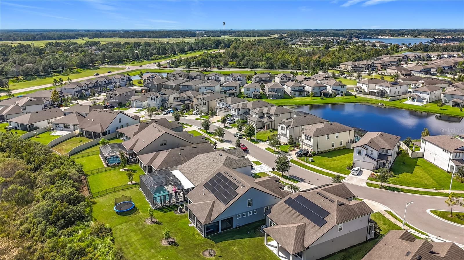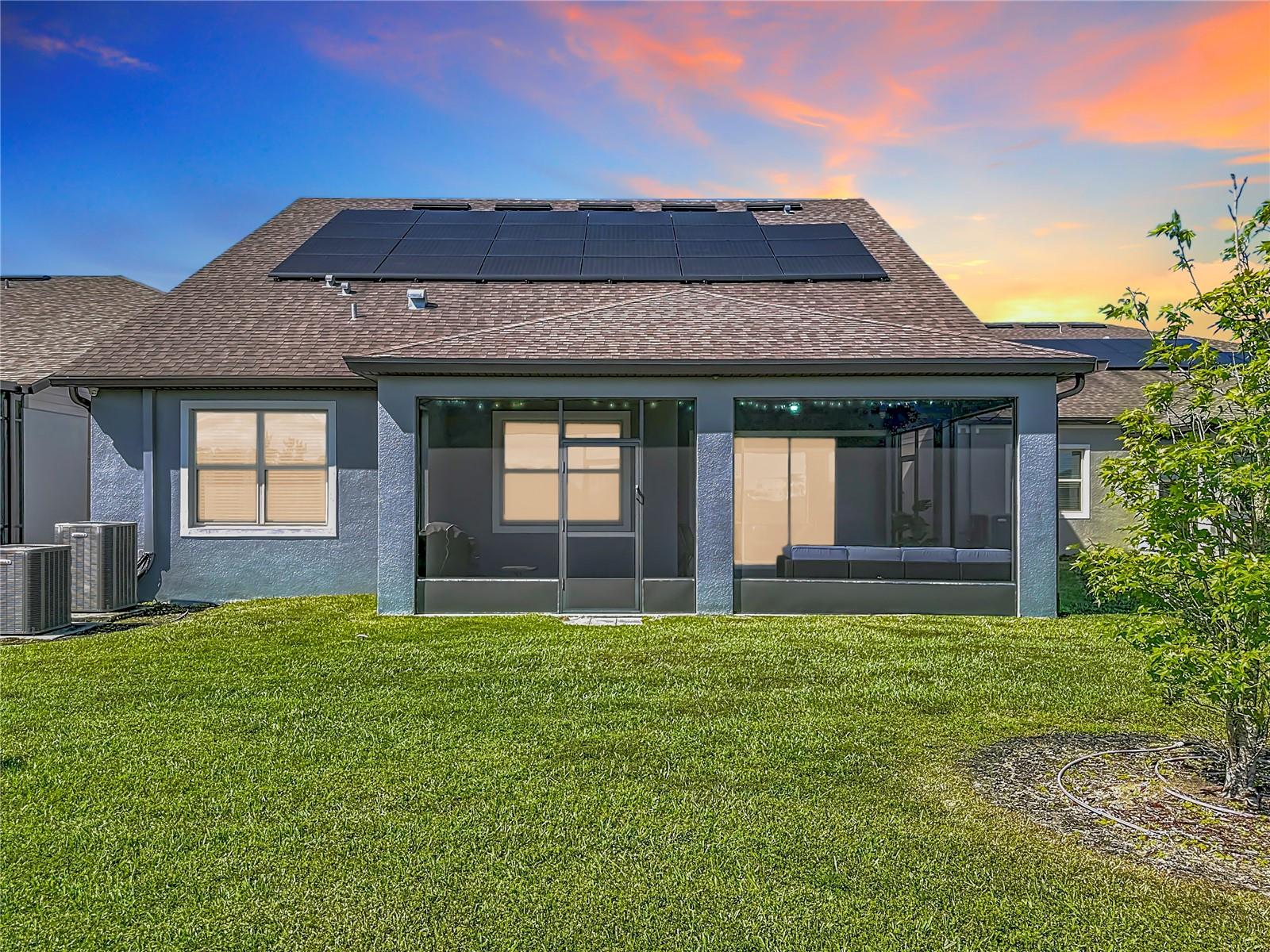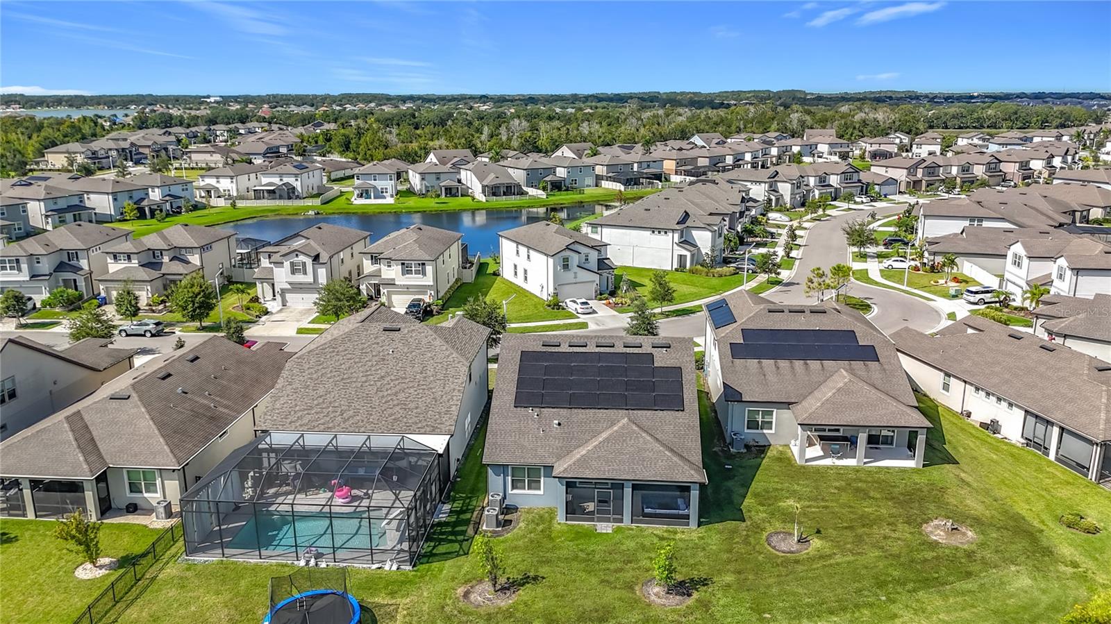 Welcome to your dream home in the gated community of Epperson Ranch in Wesley Chapel, Florida! This stunning 4-bedroom, 3-bathroom home with a dedicated office combines modern design, energy efficiency, and resort-style living. Step inside to discover an open and airy floor plan featuring vinyl wood flooring throughout the main living areas and plush gray carpet in the bedrooms. The bright living room boasts stackable sliding glass doors that open to a large screened-in patio, perfect for relaxing or entertaining in Florida’s beautiful weather. The gourmet kitchen showcases stainless steel appliances, granite countertops, elegant wood cabinetry, and a spacious island with seating—ideal for family gatherings and hosting friends. A formal dining room adds a touch of sophistication for special occasions. The first-floor primary suite offers a peaceful retreat with dual sinks, a walk-in shower, and a spacious walk-in closet. Two additional bedrooms, a full bathroom, and a private office complete the first floor. Upstairs, a generous loft area—currently a game room—can easily be used as a home theater, playroom, or secondary living space. The fourth bedroom and third full bath upstairs provide privacy for guests or family. Enjoy modern upgrades including a Yamaha surround sound system, dual HVAC systems, solar panels, and a security system for comfort, efficiency, and peace of mind. Living in Epperson Ranch means access to world-class amenities, including the famous Metro Lagoon, eco-friendly street lighting, Eagle Park with walking trails and picnic areas, the Lake House with a fitness center and event spaces, a dog park, butterfly garden, tot lot, and golf cart paths. The HOA includes cable and ultra-high-speed internet, offering even more value. Conveniently located near downtown Tampa, Gulf beaches, and major highways, this home provides the perfect balance of luxury, comfort, and community. Don’t miss your opportunity to make this incredible home yours—schedule your private showing today!