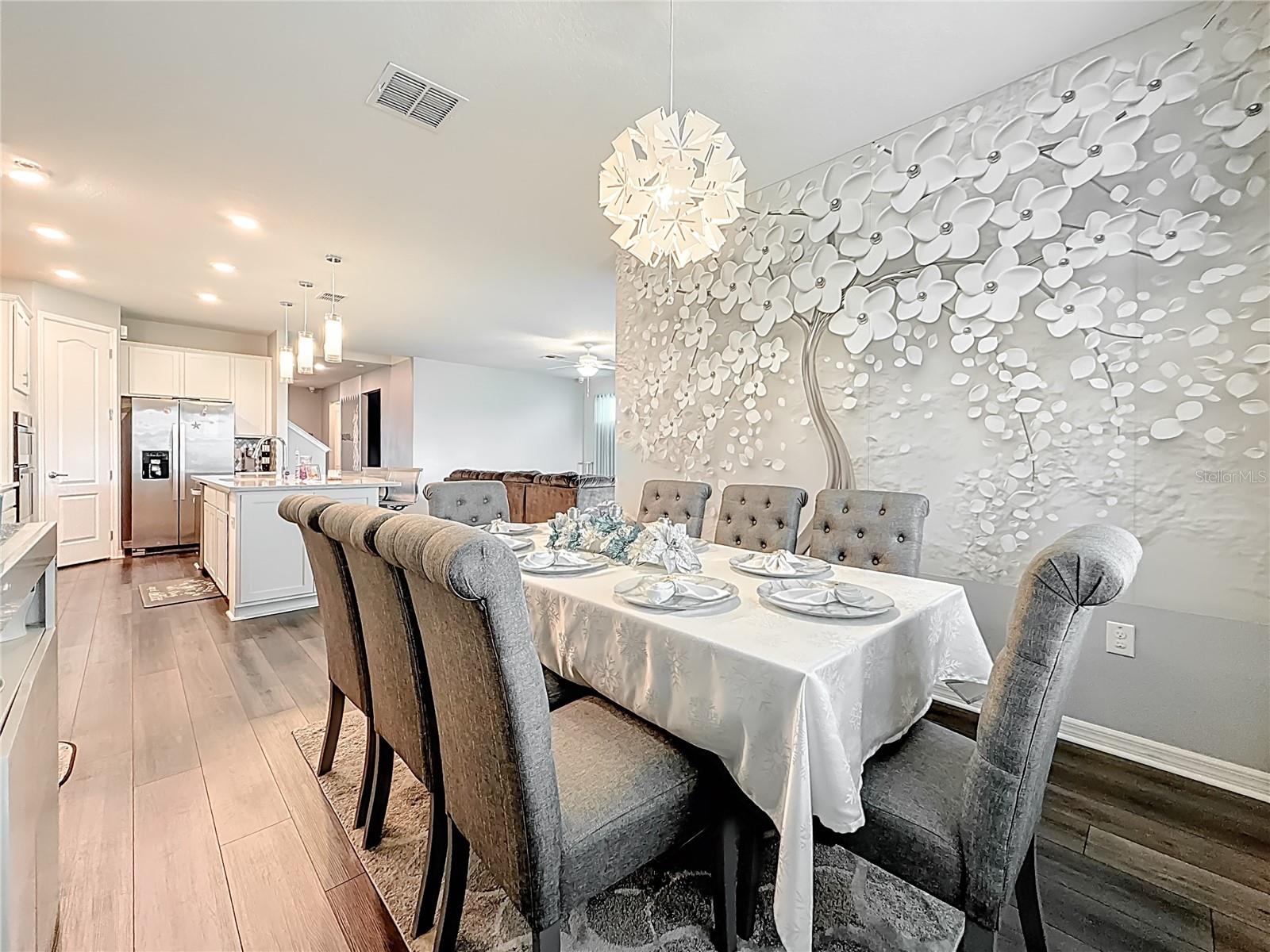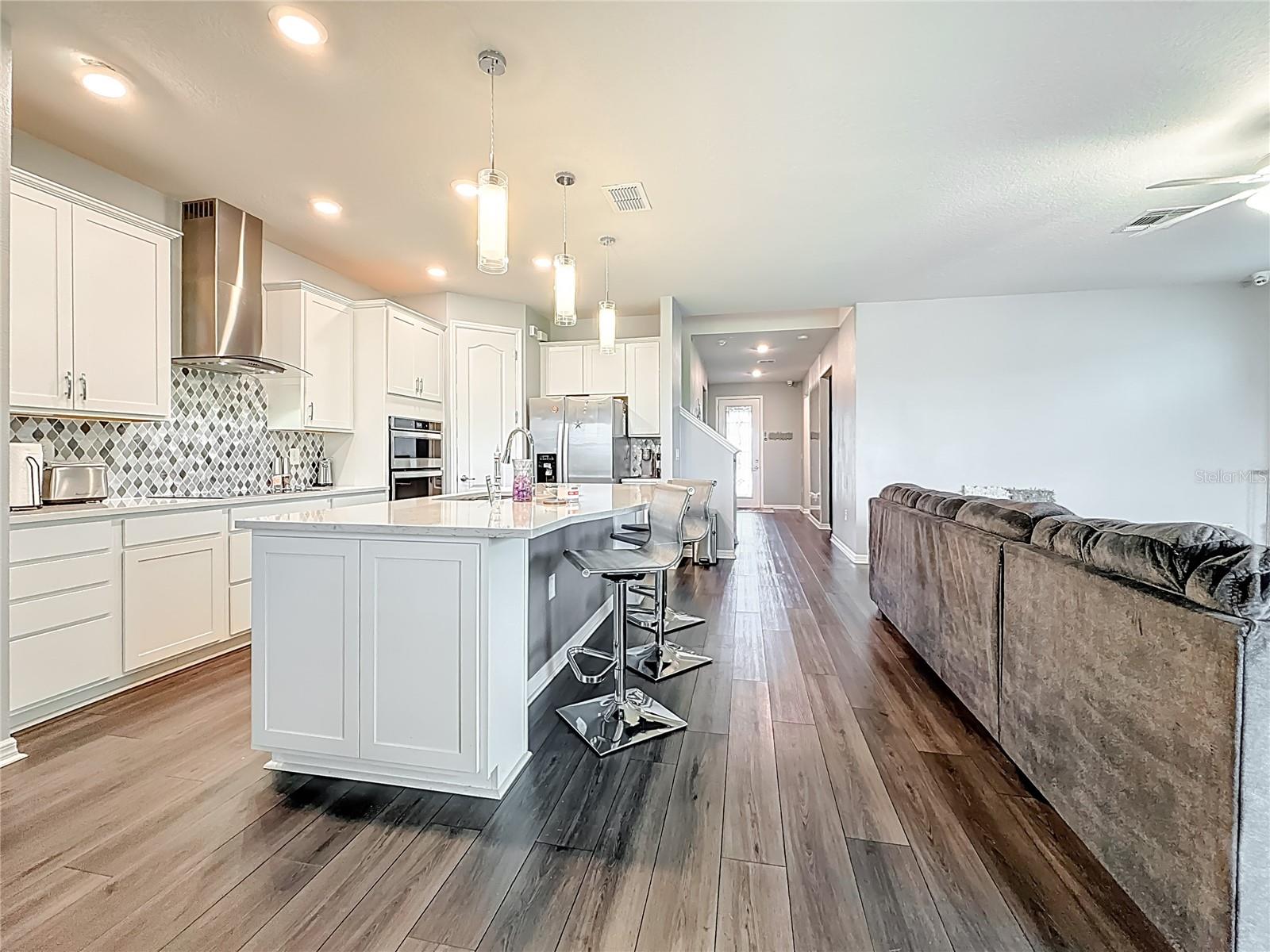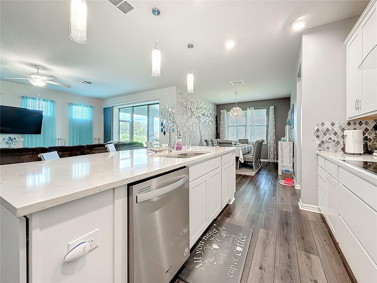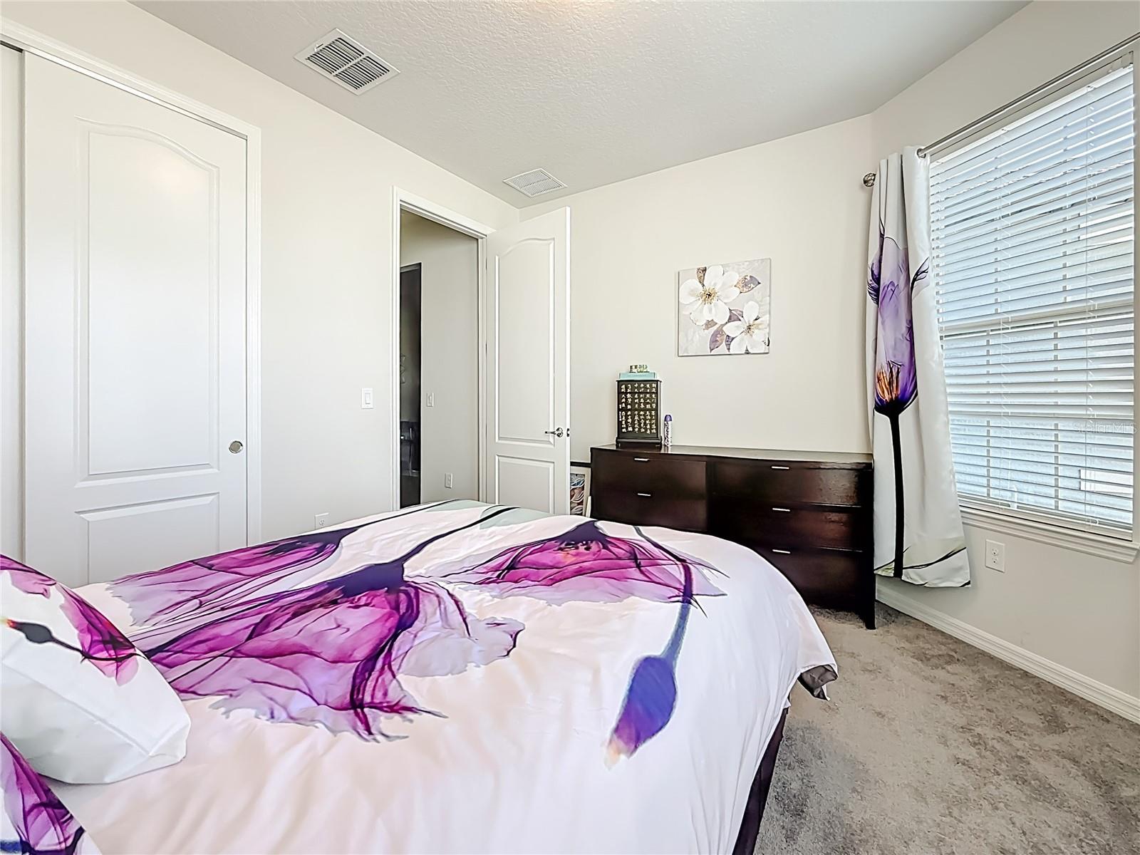 Welcome to your dream home in the gated community of Epperson Ranch in Wesley Chapel, Florida! This stunning 4-bedroom, 3-bathroom home with a dedicated office combines modern design, energy efficiency, and resort-style living. Step inside to discover an open and airy floor plan featuring vinyl wood flooring throughout the main living areas and plush gray carpet in the bedrooms. The bright living room boasts stackable sliding glass doors that open to a large screened-in patio, perfect for relaxing or entertaining in Florida’s beautiful weather. The gourmet kitchen showcases stainless steel appliances, granite countertops, elegant wood cabinetry, and a spacious island with seating—ideal for family gatherings and hosting friends. A formal dining room adds a touch of sophistication for special occasions. The first-floor primary suite offers a peaceful retreat with dual sinks, a walk-in shower, and a spacious walk-in closet. Two additional bedrooms, a full bathroom, and a private office complete the first floor. Upstairs, a generous loft area—currently a game room—can easily be used as a home theater, playroom, or secondary living space. The fourth bedroom and third full bath upstairs provide privacy for guests or family. Enjoy modern upgrades including a Yamaha surround sound system, dual HVAC systems, solar panels, and a security system for comfort, efficiency, and peace of mind. Living in Epperson Ranch means access to world-class amenities, including the famous Metro Lagoon, eco-friendly street lighting, Eagle Park with walking trails and picnic areas, the Lake House with a fitness center and event spaces, a dog park, butterfly garden, tot lot, and golf cart paths. The HOA includes cable and ultra-high-speed internet, offering even more value. Conveniently located near downtown Tampa, Gulf beaches, and major highways, this home provides the perfect balance of luxury, comfort, and community. Don’t miss your opportunity to make this incredible home yours—schedule your private showing today!