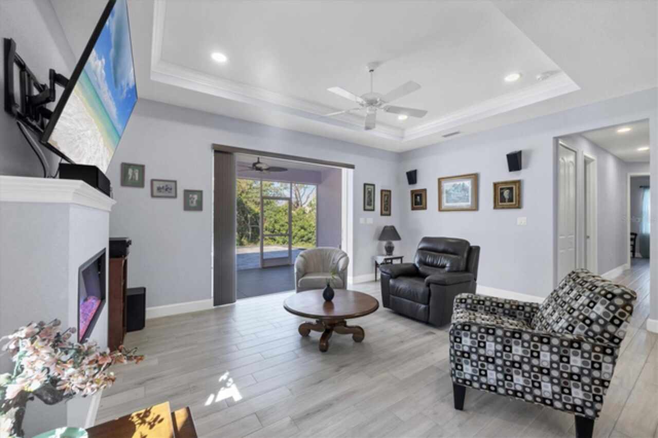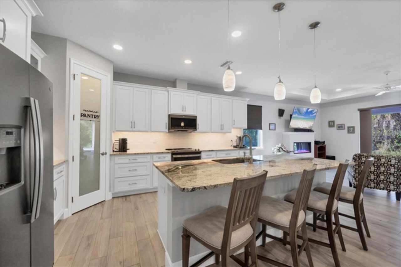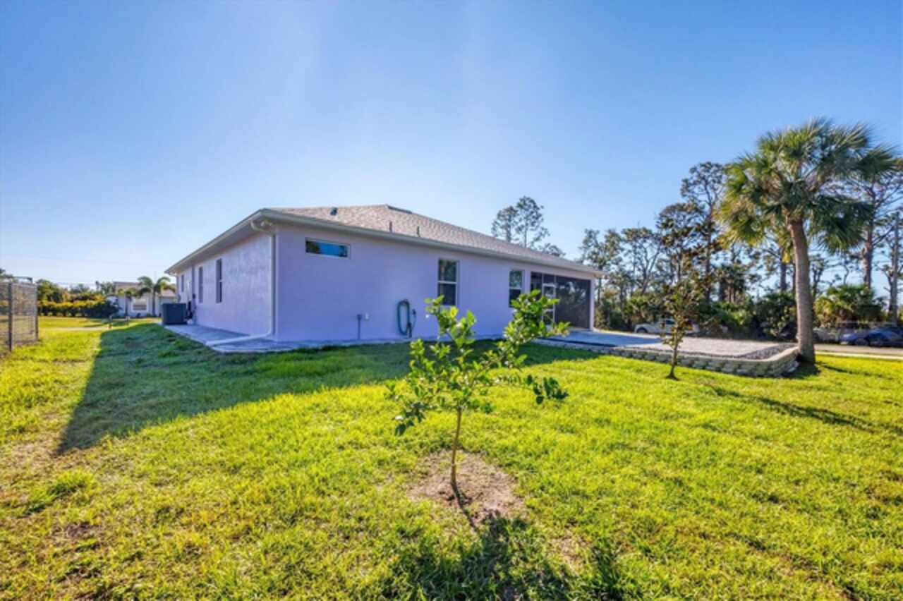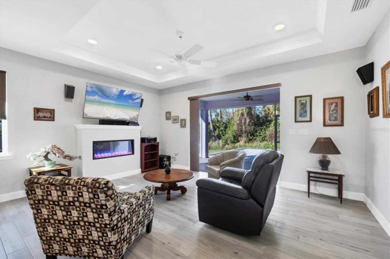 Welcome to Your Dream Home! This 3-bedroom, 2-bath home with a bonus room sits on an oversized corner lot offering world-class fishing, championship golf, pristine beaches, premier shopping, and dining, plus top-rated schools just minutes away—all with NO HOA and located in an X FLOOD ZONE. Step inside to a warm and inviting living room featuring a cozy electric fireplace and an elegant tray ceiling with crown molding, complemented by custom window treatments, lighted outlets, and a state-of-the-art security system. The chef’s kitchen features granite countertops, pot drawers, under-cabinet lighting, soft-close cabinets, and a generous pantry—perfect for everyday cooking and entertaining. The primary suite is a true retreat with a dedicated bar area, an exquisite tray ceiling, and expansive walk-in closets. Additional highlights include plantation shutters and a meticulously finished garage with epoxy flooring, custom shelving, a utility sink, high-tech garage doors with built-in cameras and hurricane shutters. This home blends luxury, convenience, and an unbeatable location!