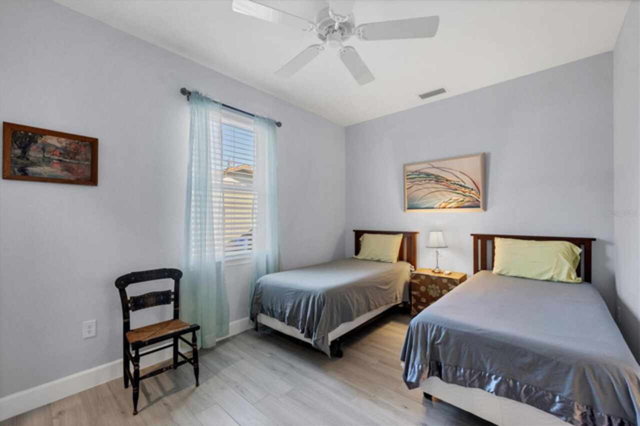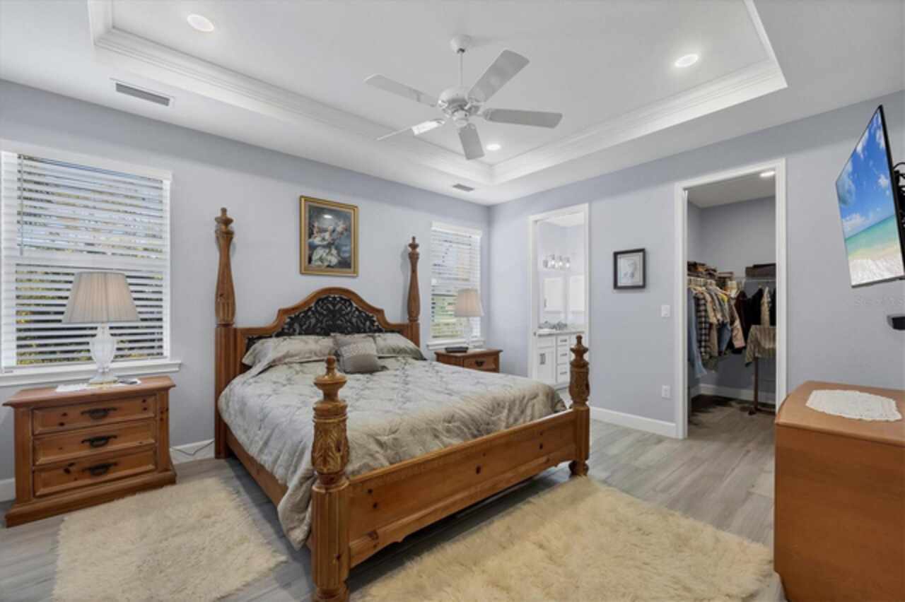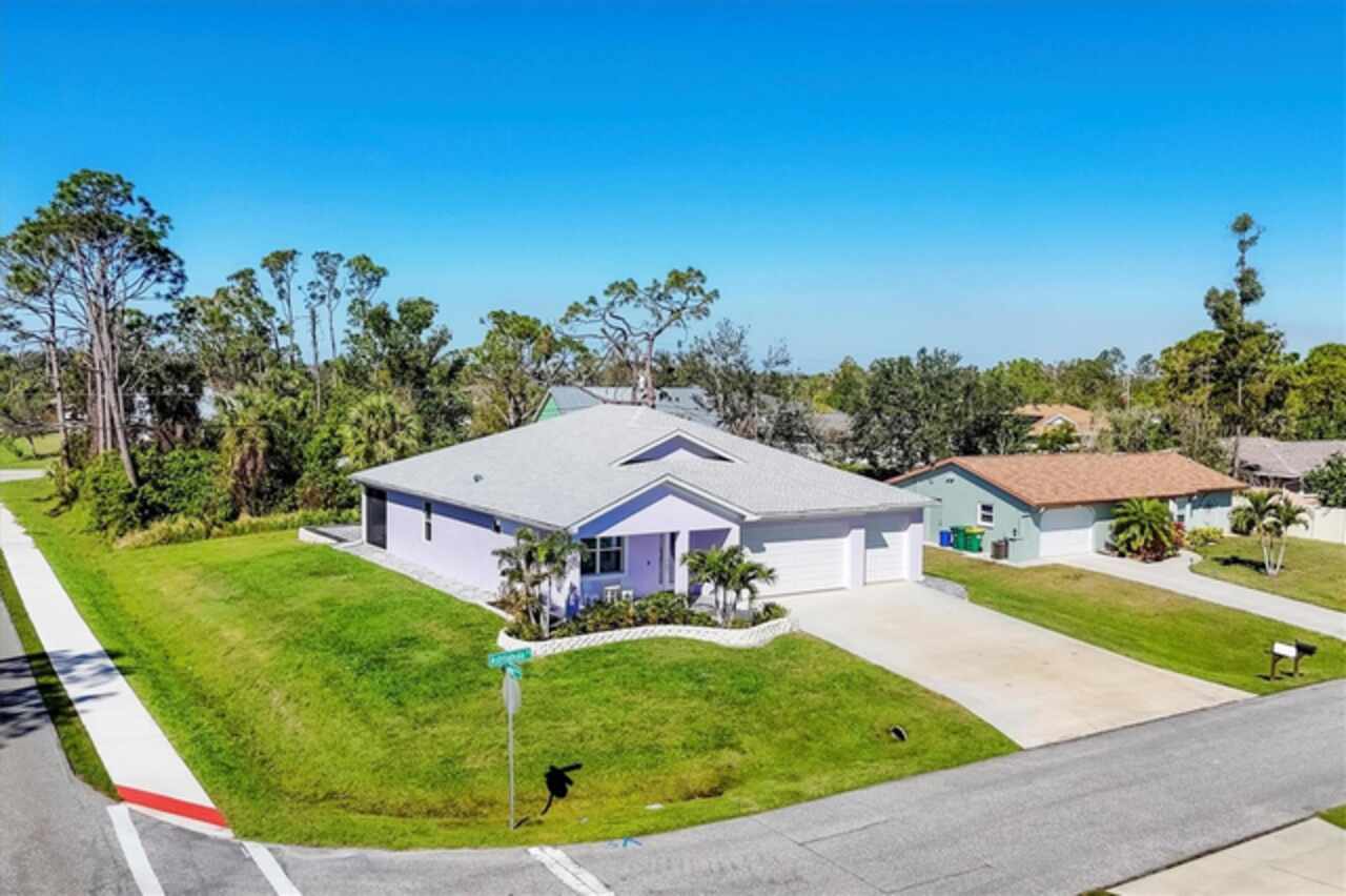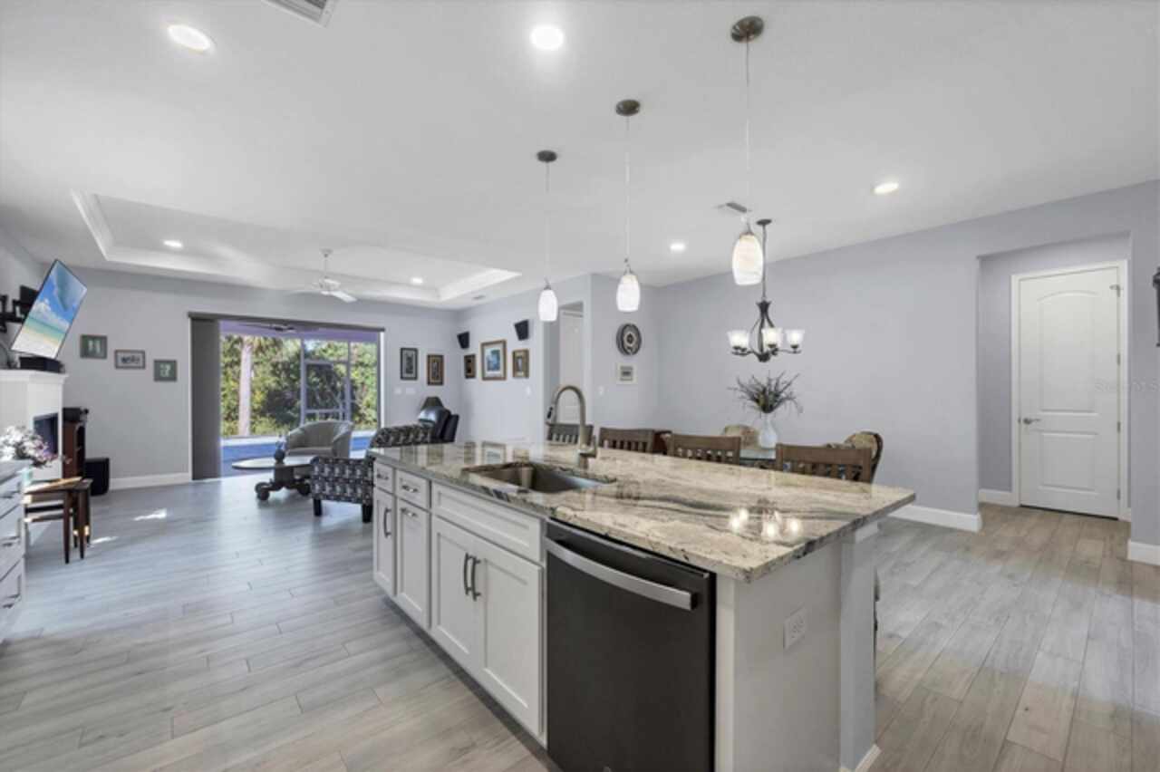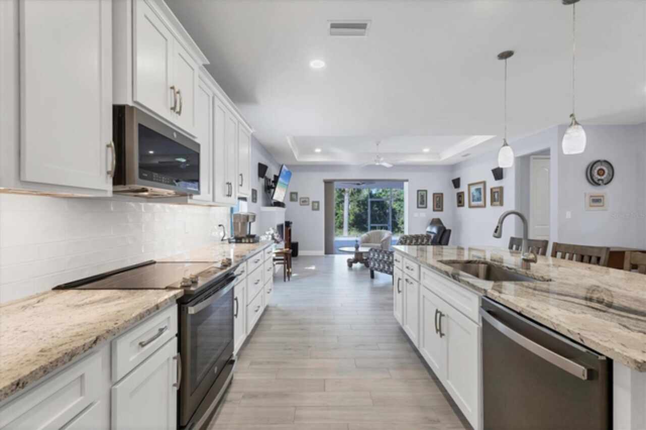 Welcome to Your Dream Home! This 3-bedroom, 2-bath home with a bonus room sits on an oversized corner lot offering world-class fishing, championship golf, pristine beaches, premier shopping, and dining, plus top-rated schools just minutes away—all with NO HOA and located in an X FLOOD ZONE. Step inside to a warm and inviting living room featuring a cozy electric fireplace and an elegant tray ceiling with crown molding, complemented by custom window treatments, lighted outlets, and a state-of-the-art security system. The chef’s kitchen features granite countertops, pot drawers, under-cabinet lighting, soft-close cabinets, and a generous pantry—perfect for everyday cooking and entertaining. The primary suite is a true retreat with a dedicated bar area, an exquisite tray ceiling, and expansive walk-in closets. Additional highlights include plantation shutters and a meticulously finished garage with epoxy flooring, custom shelving, a utility sink, high-tech garage doors with built-in cameras and hurricane shutters. This home blends luxury, convenience, and an unbeatable location!