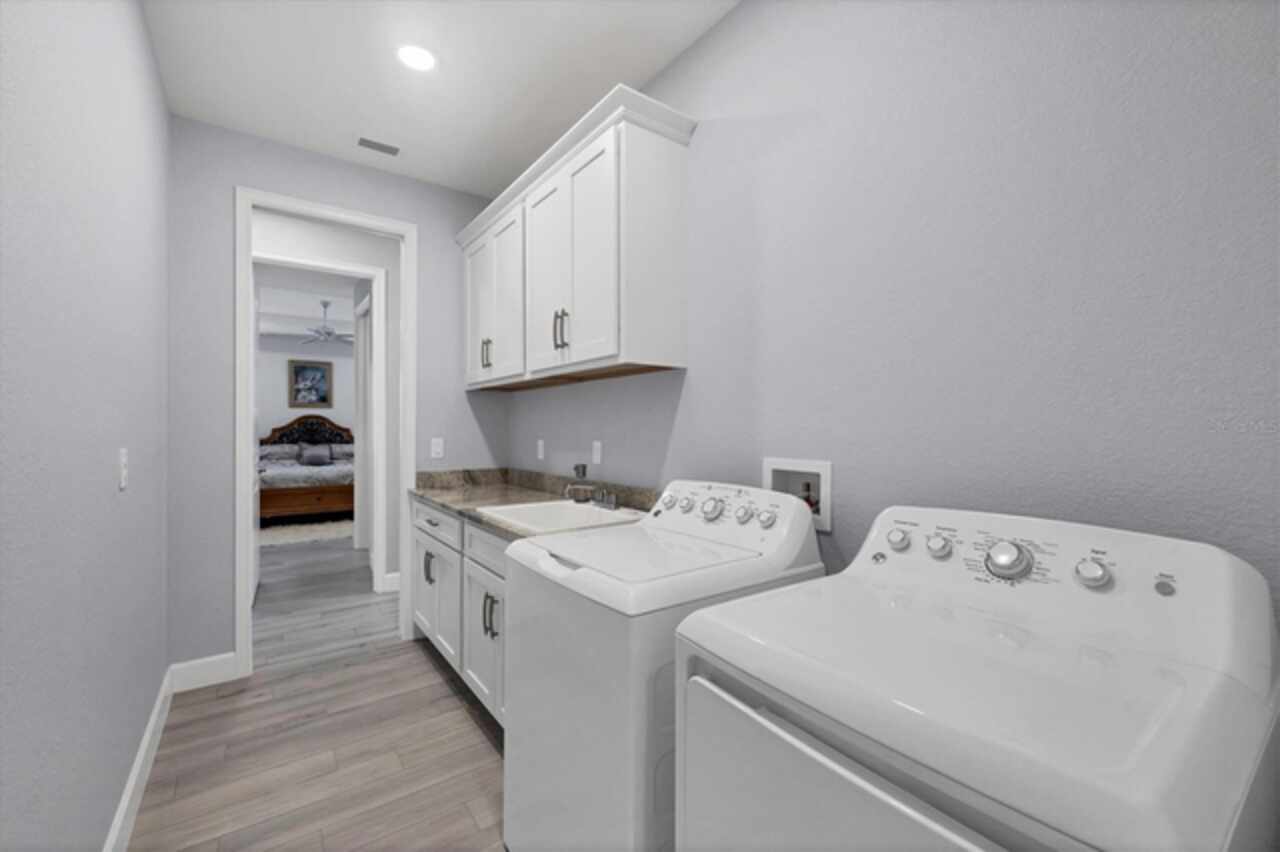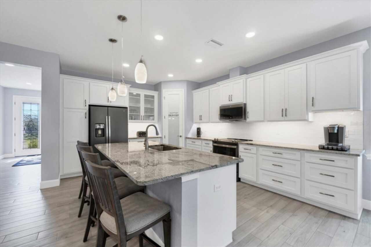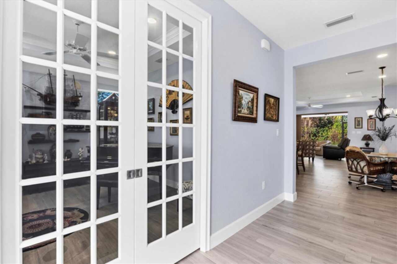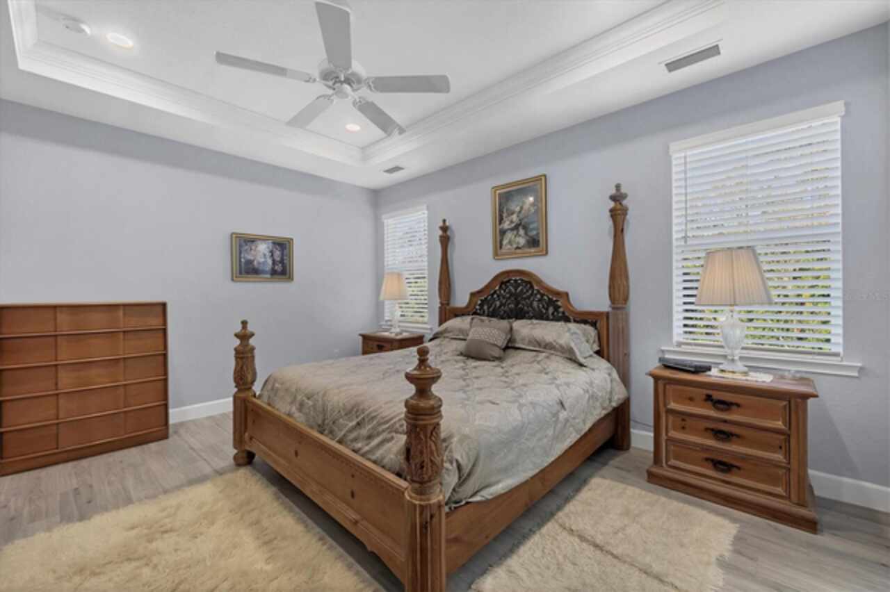 Welcome to Your Dream Home! This 3-bedroom, 2-bath home with a bonus room sits on an oversized corner lot offering world-class fishing, championship golf, pristine beaches, premier shopping, and dining, plus top-rated schools just minutes away—all with NO HOA and located in an X FLOOD ZONE. Step inside to a warm and inviting living room featuring a cozy electric fireplace and an elegant tray ceiling with crown molding, complemented by custom window treatments, lighted outlets, and a state-of-the-art security system. The chef’s kitchen features granite countertops, pot drawers, under-cabinet lighting, soft-close cabinets, and a generous pantry—perfect for everyday cooking and entertaining. The primary suite is a true retreat with a dedicated bar area, an exquisite tray ceiling, and expansive walk-in closets. Additional highlights include plantation shutters and a meticulously finished garage with epoxy flooring, custom shelving, a utility sink, high-tech garage doors with built-in cameras and hurricane shutters. This home blends luxury, convenience, and an unbeatable location!