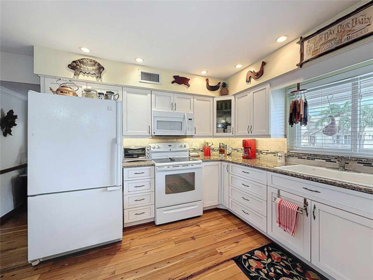 Stunning Waterfront Retreat with Dual Master Suites & Exceptional Outdoor Living! Welcome to this beautifully maintained 4-bedroom, 3.5-bath, two-story home nestled on a double lot (.27 acres) along the shores of Lake Tarpon—a true blend of rustic charm and luxury upgrades! This thoughtfully designed home boasts two primary suites with en-suite bathrooms—one conveniently located on the main floor, and another upstairs with private deck access and tranquil water views. Downstairs, the living space is warmed by reclaimed sawmill wood flooring, a gas fireplace, and stylish finishes. The updated kitchen is a chef’s dream, featuring granite countertops, a large pantry, and modern touches that blend functionality with charm. The formal dining room with tray ceilings sets the scene for elegant dinners and entertaining. Step outside to your composite deck with an outdoor kitchen, perfect for entertaining lakeside. Launch your boat with ease using the remote-controlled boatlift, and take full advantage of the additional lot, brick paver driveway, large garage, and extra driveway space for guests. Additional features include: Impact windows & hurricane shutters, Granite countertops throughout, Lake-fed sprinkler system & lush landscaping, Storage shed, No HOA | Incorporated area. Whether you’re relaxing on the deck, cruising the lake, or hosting unforgettable gatherings, this is a one-of-a-kind waterfront oasis you won’t want to miss. Lake Tarpon Living at Its Finest — Schedule your private showing today! Flood insurance is transferable. Both HVAC systems August 2013.