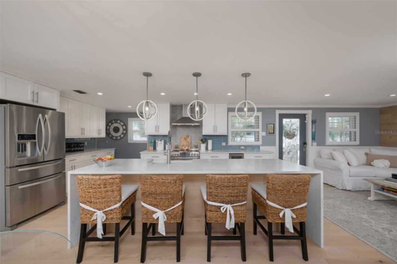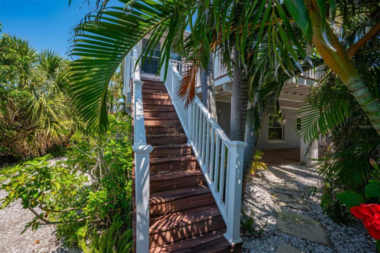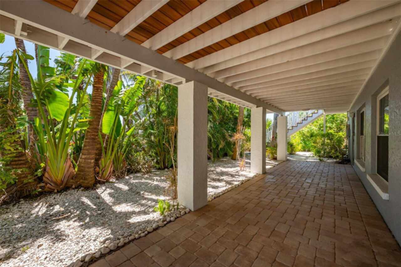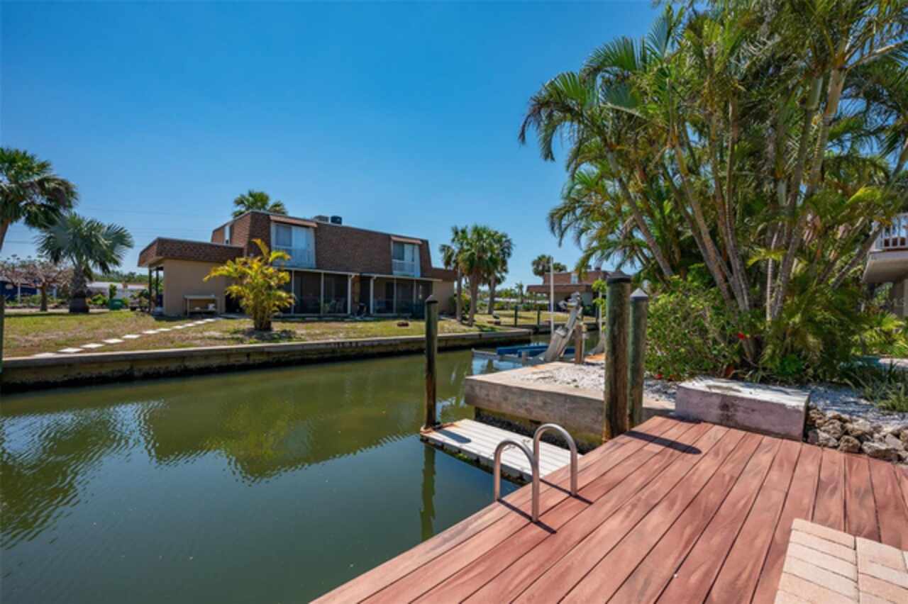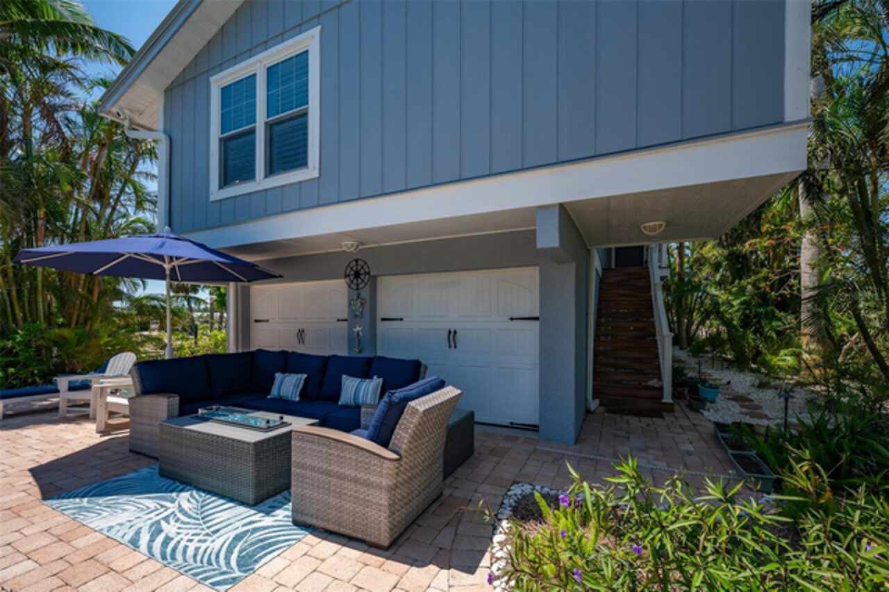Discover your own tropical paradise on the serene North end of Longboat Key and has deeded beach access, a rare gem that blends privacy, luxury, and coastal charm. This stunning, fully renovated home boasts a thoughtfully designed open split-floor plan, perfect for relaxed living and entertaining. The custom-designed kitchen is a chef's dream, featuring sleek solid countertops, custom cabinetry, and premium stainless-steel appliances. An expansive island bar creates an inviting space for casual dining and social gatherings. Gorgeous, engineered wood floors flow throughout the main living areas, adding warmth and elegance. The spacious master suite offers a tranquil retreat, complete with a newly remodeled spa-like master bath ideal for unwinding after a day spent on the water. A well-appointed guest bedroom with its own private bath ensures comfort and privacy for visitors. Step outside to your private oasis, where a sprawling rear balcony overlooks serene canal views and the heated pool. The expansive paver deck offers ample space for lounging, dining, and soaking up the Florida sun. Boating enthusiasts will be delighted by the 120-foot seawall, 7, 000 lb. boat lift, and convenient docking and mooring features providing effortless access to the open water. This property is designed with both style and security in mind. The durable standing seam metal roof and hurricane-resistant impact glass windows and doors provide peace of mind during storm season. The lower level features a versatile guest or in-law suite complete with an upgraded bathroom and kitchenette, ideal for hosting family or accommodating extended stays. Lush, meticulously maintained landscaping showcases a variety of palm trees and fruit trees, creating a true tropical escape. The two-car garage, finished with a sleek and durable epoxy coating, combines style with functionality.