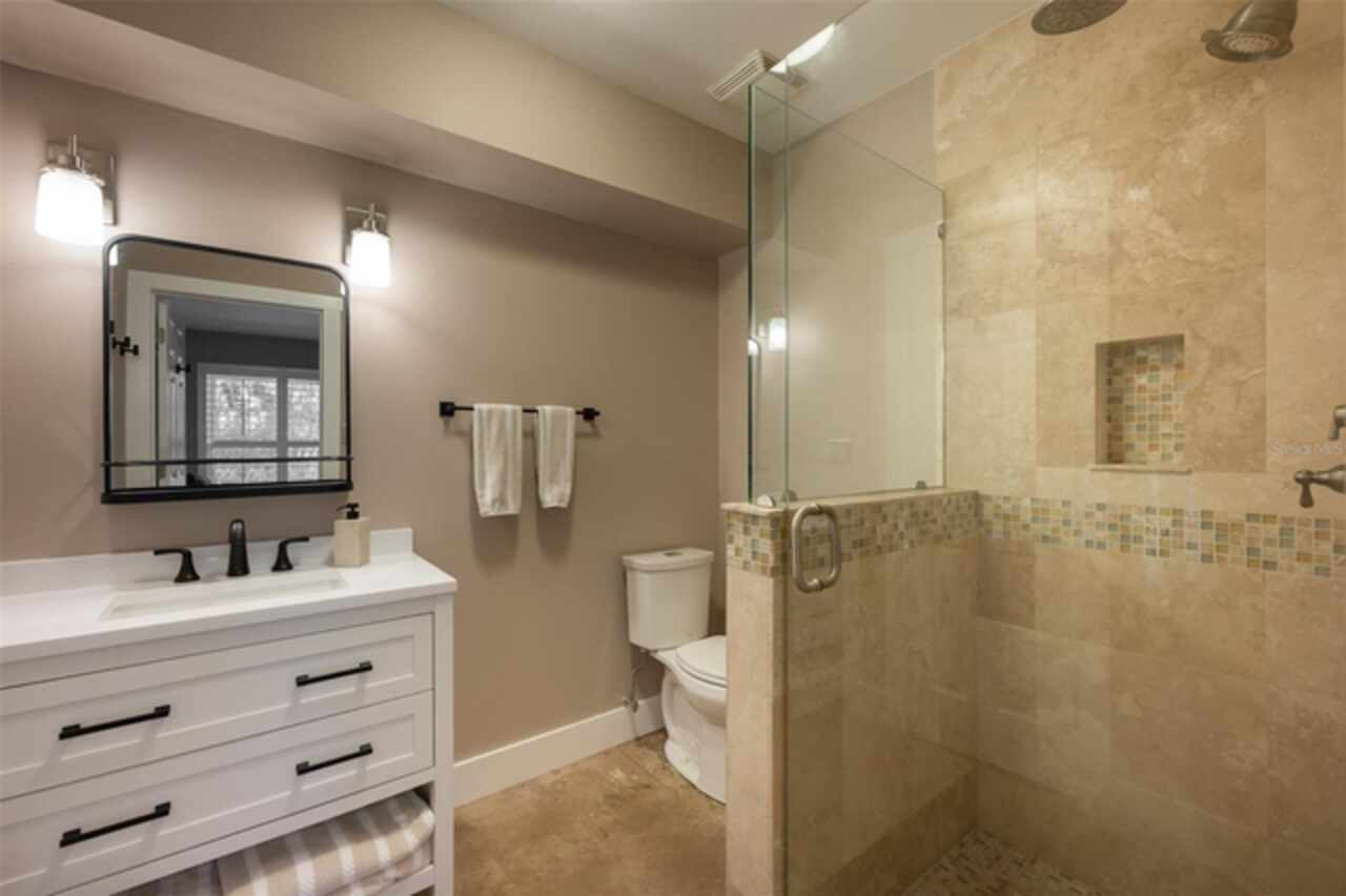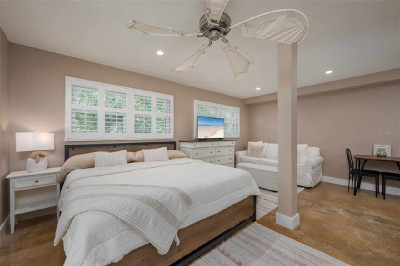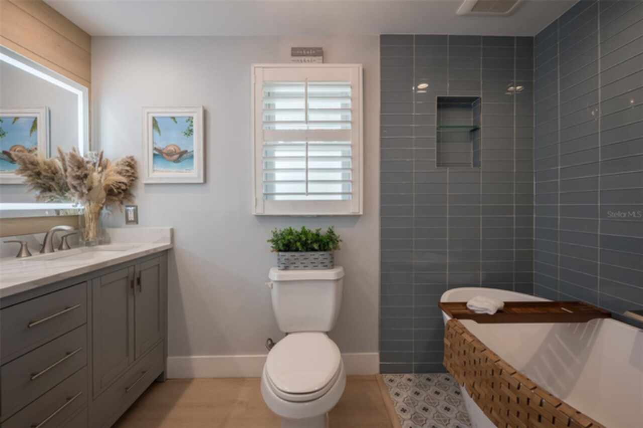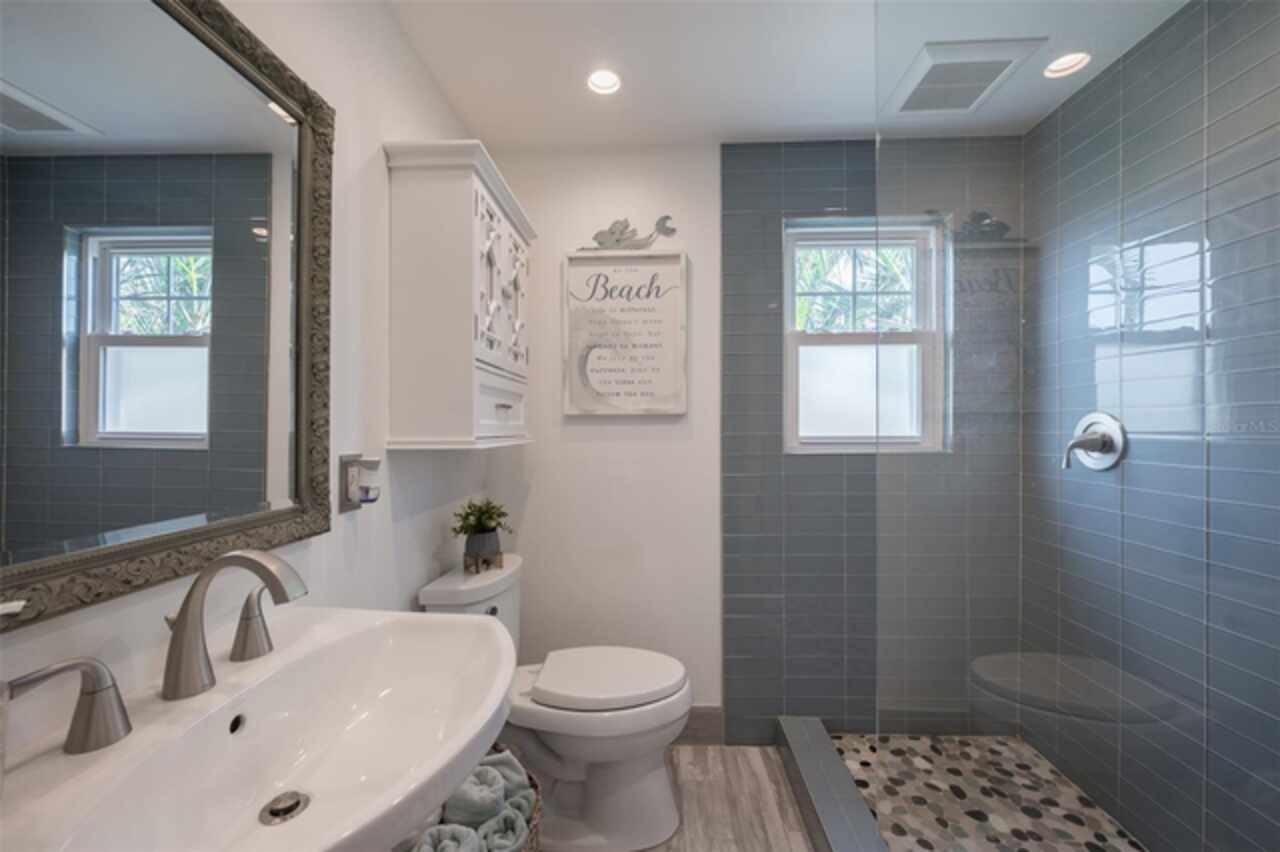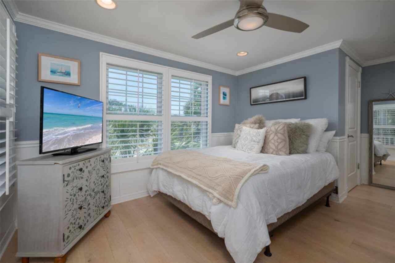 Discover your own tropical paradise on the serene North end of Longboat Key and has deeded beach access, a rare gem that blends privacy, luxury, and coastal charm. This stunning, fully renovated home boasts a thoughtfully designed open split-floor plan, perfect for relaxed living and entertaining. The custom-designed kitchen is a chef's dream, featuring sleek solid countertops, custom cabinetry, and premium stainless-steel appliances. An expansive island bar creates an inviting space for casual dining and social gatherings. Gorgeous, engineered wood floors flow throughout the main living areas, adding warmth and elegance. The spacious master suite offers a tranquil retreat, complete with a newly remodeled spa-like master bath ideal for unwinding after a day spent on the water. A well-appointed guest bedroom with its own private bath ensures comfort and privacy for visitors. Step outside to your private oasis, where a sprawling rear balcony overlooks serene canal views and the heated pool. The expansive paver deck offers ample space for lounging, dining, and soaking up the Florida sun. Boating enthusiasts will be delighted by the 120-foot seawall, 7, 000 lb. boat lift, and convenient docking and mooring features providing effortless access to the open water. This property is designed with both style and security in mind. The durable standing seam metal roof and hurricane-resistant impact glass windows and doors provide peace of mind during storm season. The lower level features a versatile guest or in-law suite complete with an upgraded bathroom and kitchenette, ideal for hosting family or accommodating extended stays. Lush, meticulously maintained landscaping showcases a variety of palm trees and fruit trees, creating a true tropical escape. The two-car garage, finished with a sleek and durable epoxy coating, combines style with functionality.