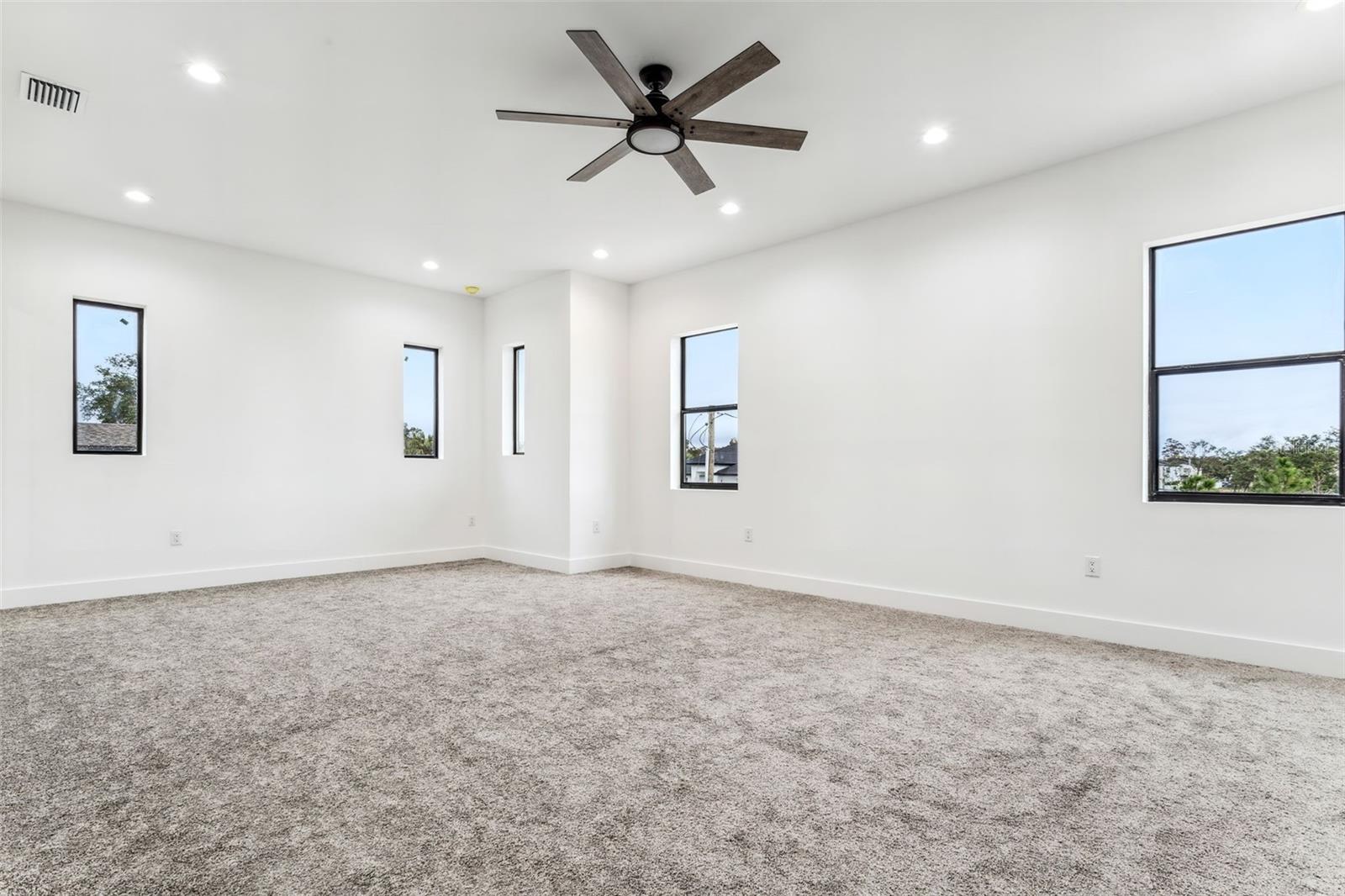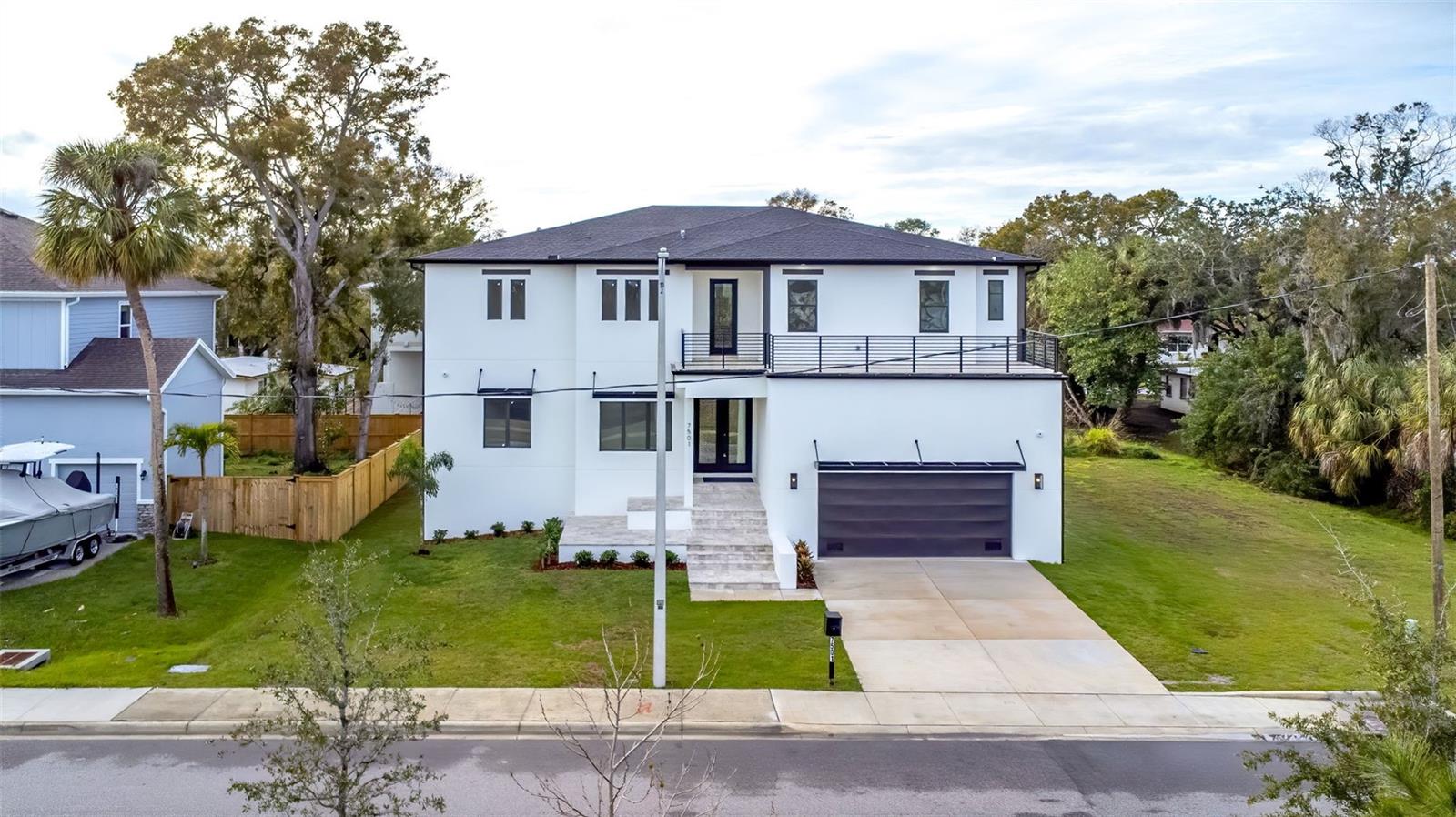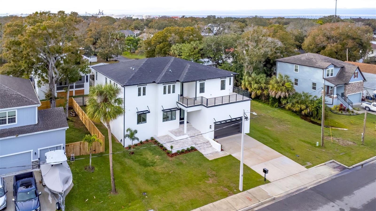 Modern new construction in Port Tampa with no HOA or CDD. This 5BR/4.5BA home offers 4, 941 SF of open living space just minutes from Hyde Park, Downtown, and Picnic Island Beach. Features include a chef’s kitchen with gray shaker cabinets, waterfall quartz countertops, quartz backsplash, stainless Forno appliances, and dual-faucet sink. Open-concept living and dining lead to a large tiled patio ideal for entertaining. The primary suite offers two walk-in closets and a spa-style bath with freestanding tub and dual vanities. Each bedroom includes an ensuite bath and walk-in closet. Additional highlights: loft with balcony, first-floor flex room/office, 50AMP, 240V outlet for car charger, 17 built-in speakers, and prewiring for 8 exterior cameras.