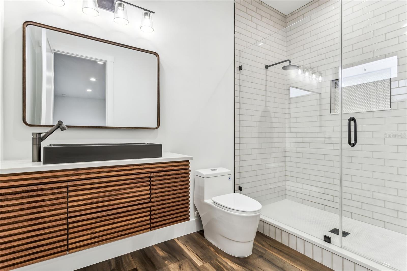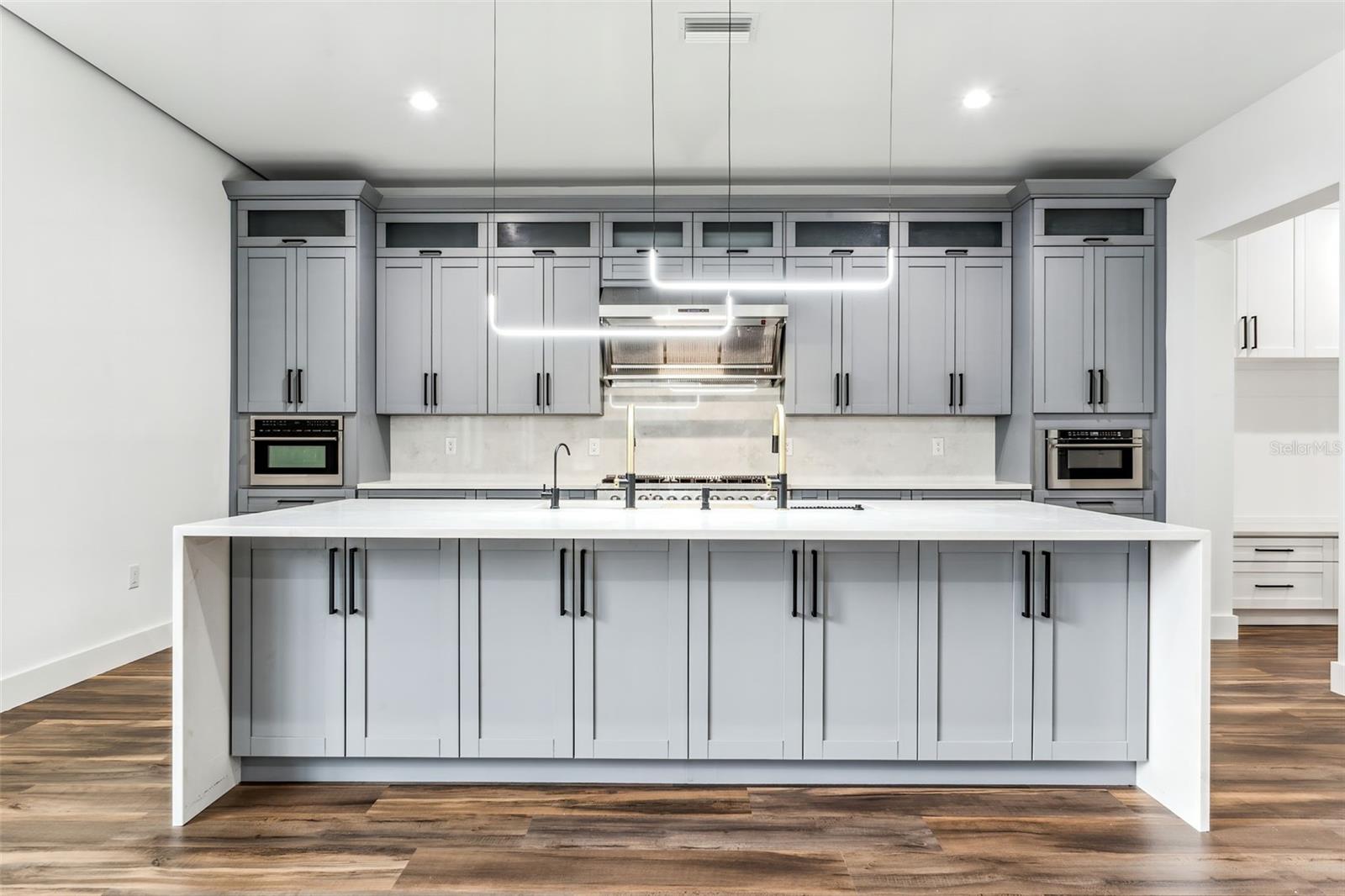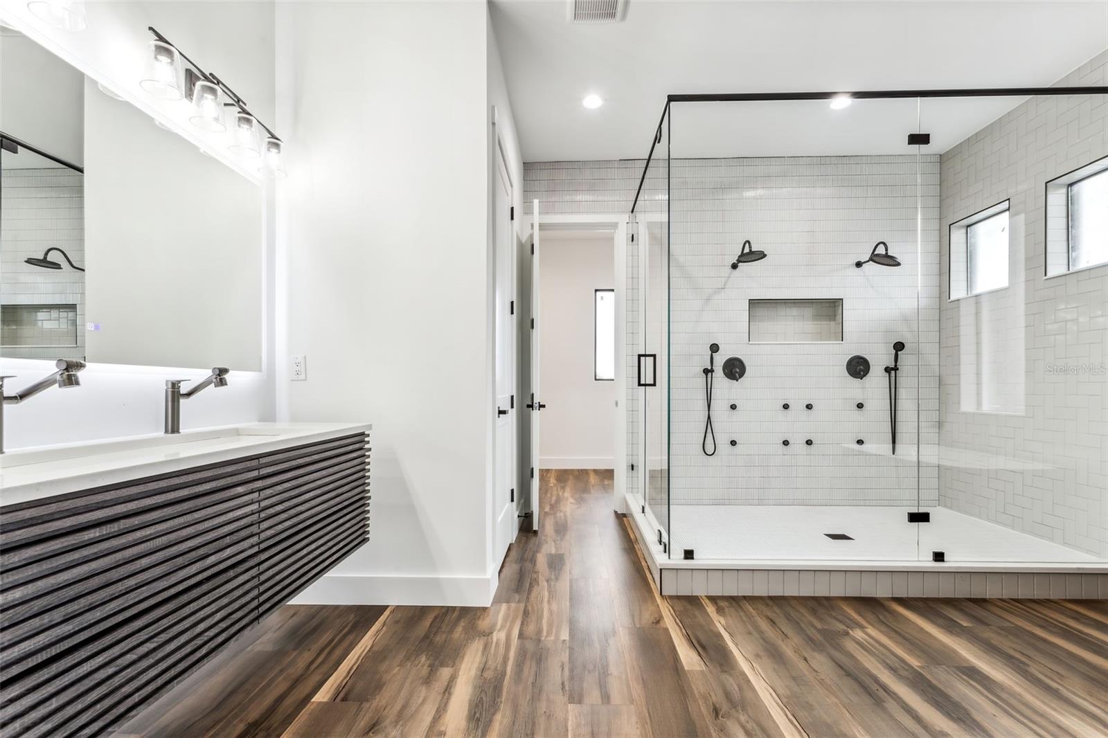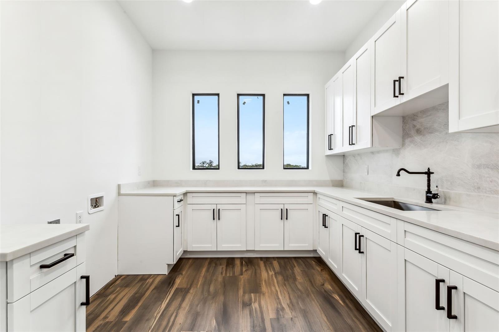 Modern new construction in Port Tampa with no HOA or CDD. This 5BR/4.5BA home offers 4, 941 SF of open living space just minutes from Hyde Park, Downtown, and Picnic Island Beach. Features include a chef’s kitchen with gray shaker cabinets, waterfall quartz countertops, quartz backsplash, stainless Forno appliances, and dual-faucet sink. Open-concept living and dining lead to a large tiled patio ideal for entertaining. The primary suite offers two walk-in closets and a spa-style bath with freestanding tub and dual vanities. Each bedroom includes an ensuite bath and walk-in closet. Additional highlights: loft with balcony, first-floor flex room/office, 50AMP, 240V outlet for car charger, 17 built-in speakers, and prewiring for 8 exterior cameras.