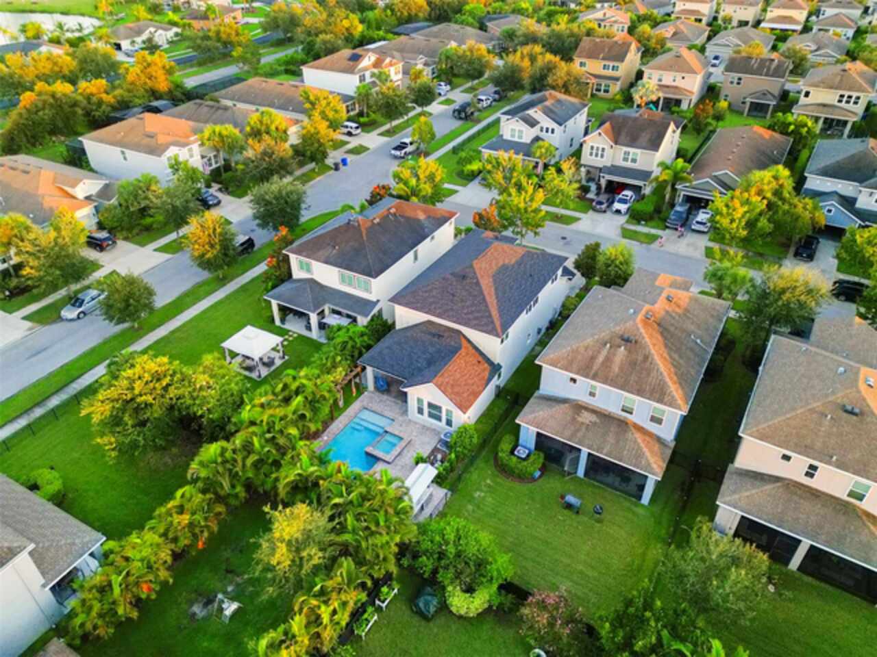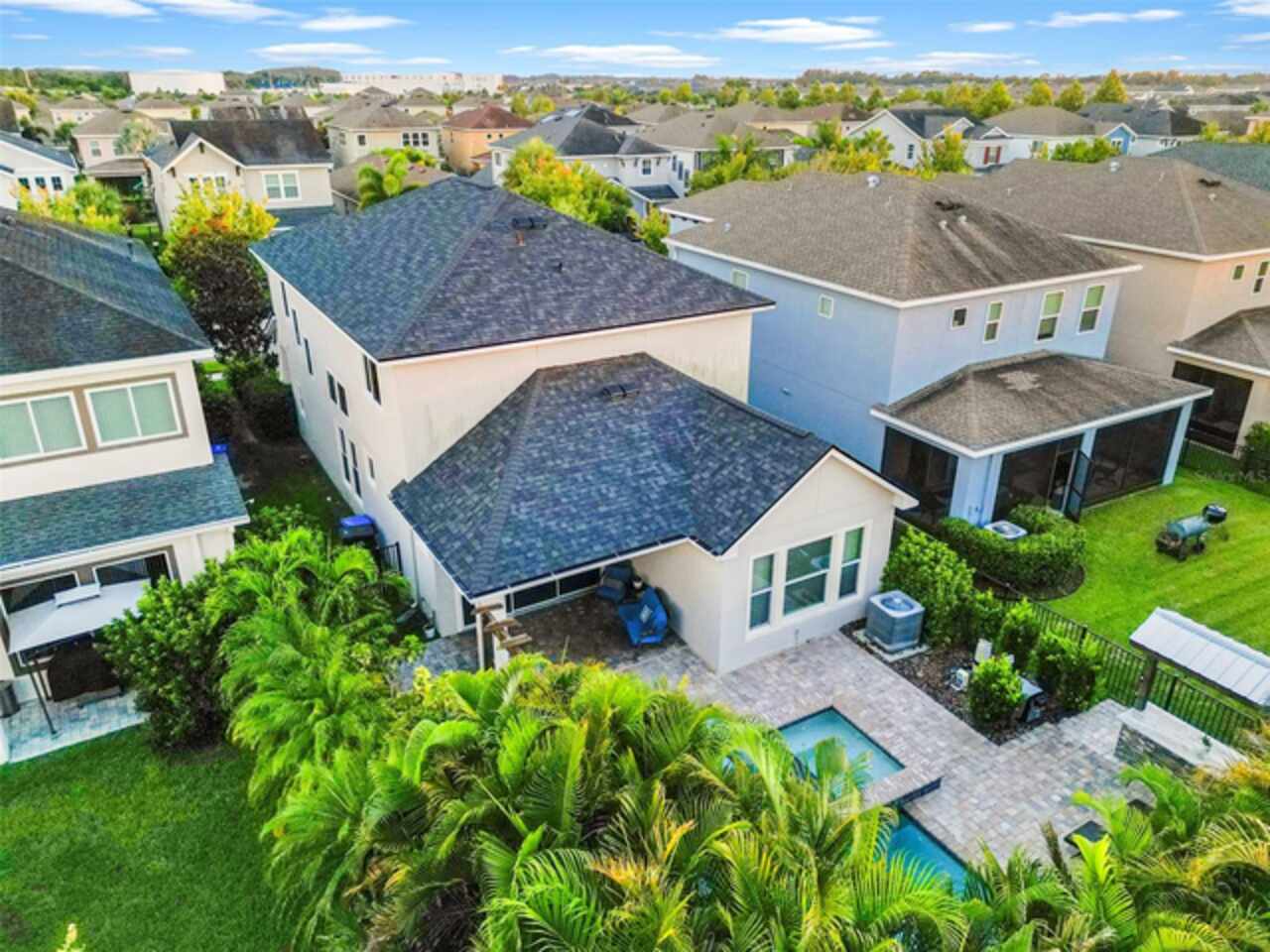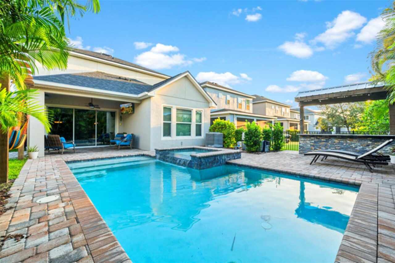 Fall in love with this stunning 4 bedroom 3.5 bath, David Weekly POOL home…did I mention it has a NEW ROOF with transferable Owens Corning Warranty. The moment you walk in you see the tranquil view of the pool and waterfall from the wall to wall multipanel sliders. The Redwing model built in 2017, offers the perfect blend of luxury, comfort, and functionality. This home features soaring high ceilings, abundant natural light, and NO carpet throughout. The layout offers a thoughtful floorplan with a second floor guest bedroom with a full en suite bathroom, a second floor loft large enough for office or rec space, and a FIRST floor Owner’s Suite. The owner’s suite overlooks the pool, 10ft ceilings, tray ceiling, crown molding, and beautiful custom built closet and soaking tub!!!! Upstairs all bedrooms are spacious! Inside upgrades include: Gourmet Kitchen, Granite Counters, Gas Cooktop, Stainless steel appliances, water treatment system, tankless GAS water heater, and a custom built LED Fireplace accent wall in the living area. This home has been pre-wired for indoor/outdoor speakers. My favorite part of this home is the outdoor living space perfect for living your best Florida life!!! Step out to your backyard Oasis featuring a heated saltwater pool with multicolored LED lighting, waterfall, sun shelf, and hot tub! You will enjoy the mature tropical landscaping, fully equipped outdoor kitchen with stainless steel fridge, garbage can, and granite countertops. Sit back in the hammocks, take a dip, and feel at home! Located in the highly desirable Waterset community, known for its resort style amenities and great community events! You will love the amenities: multiple pools including a slide pool, multiple gyms, parks, trails, basketball, tennis, PICKLEBALL, volleyball, splash pad, dog parks, and nature galore!!! Only 20 miles from downtown Tampa, don’t wait to make this home yours today!!!