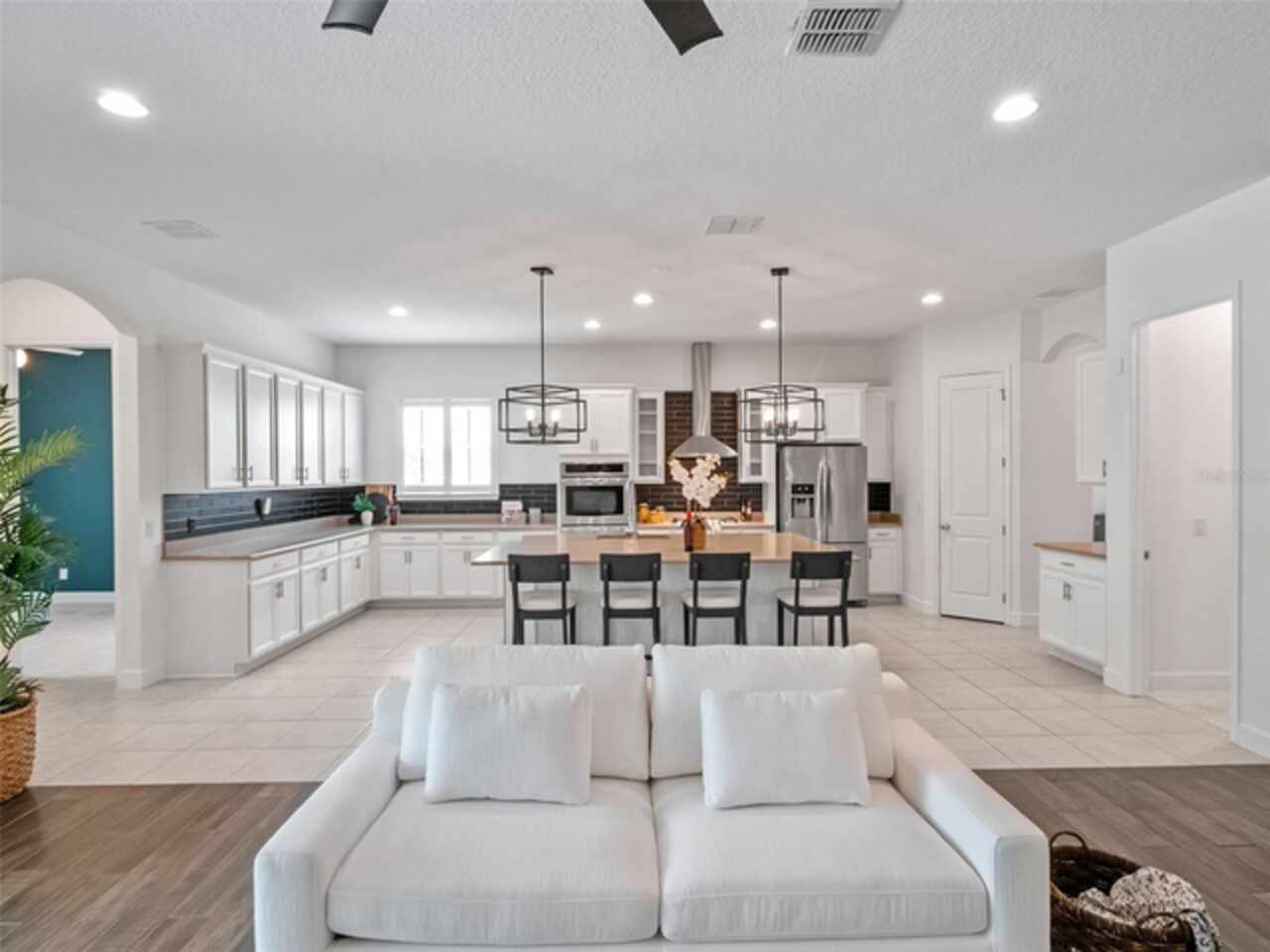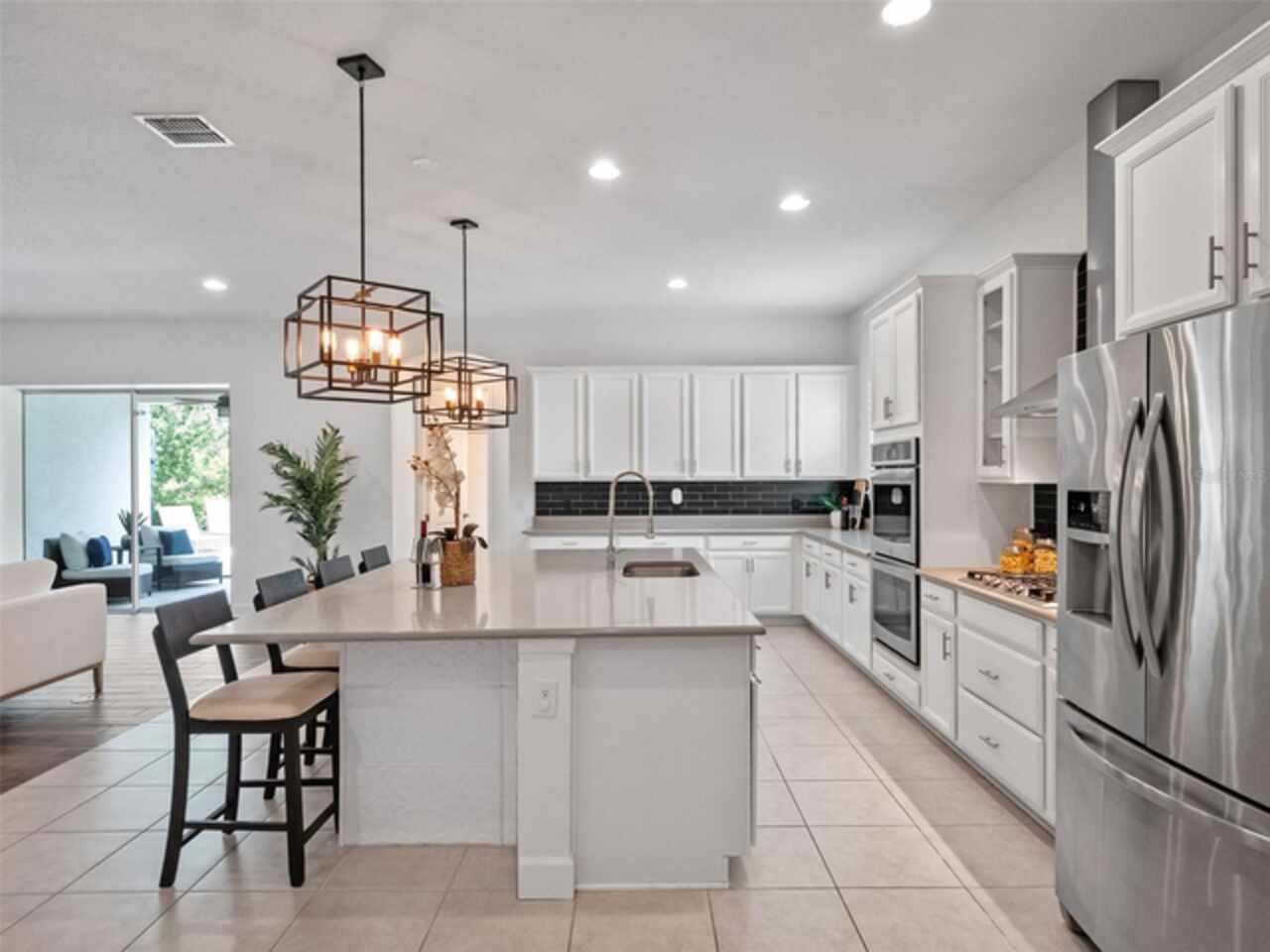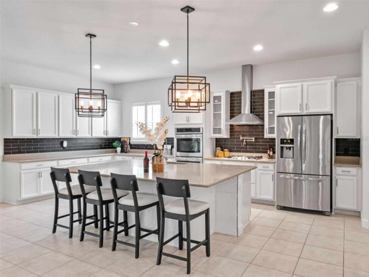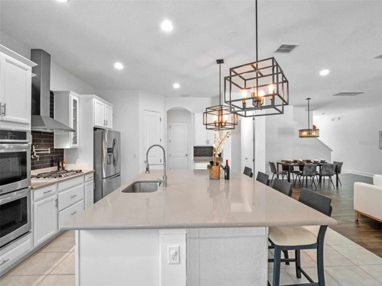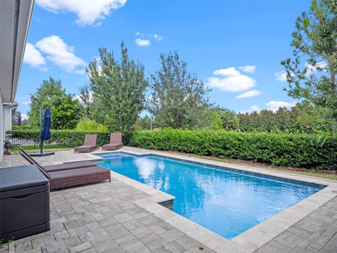 Under contract-accepting backup offers. Welcome to this 3, 097 square foot pool home in Sanctuary at Hamlin, located in the heart of Horizon West and just minutes from Hamlin Town Center. As you enter, two bedrooms share a full bathroom off the foyer, both featuring premium carpet and custom closets. The home then opens into a spacious dining and family room combination with 10-foot ceilings, wood-look tile flooring, and an accent wall. The gourmet kitchen overlooks the main living area and includes Kenmore stainless steel appliances, with double ovens, refrigerator, and natural gas cooktop with hood and pot filler. The kitchen also offers extensive 42-inch cabinetry, a stylish backsplash, ample counter space, a large walk-in pantry, and an oversized quartz island with seating and pendant lighting. The primary suite, accessed through double doors, is generously sized with views of the backyard. A custom barn door leads to the en suite bath, which includes dual vanities with a central makeup station, garden tub, walk-in shower, and two closets. The primary suite features custom closets as well. The first floor includes a third bedroom with pool views and a nearby full bath. Upstairs, you’ll find a private bedroom with en suite bath and a walk-in closet. Step outside through the sliding door to an open-air patio overlooking the saltwater pool and spa, surrounded by paver decking. The open design offers a clean, unobstructed view of the Florida sky, with no rear neighbors for added privacy. A gas hookup is in place for a future summer kitchen. Additional features include plantation shutters throughout, a downstairs laundry room, and a 3-car garage pre-wired for an electric vehicle charger. This home is conveniently close to Cinepolis, PopStroke, Orange County National Golf Center, restaurants, grocery stores, Orlando Health Horizon West Hospital, and Disney World, with easy access to SR-429 for commuting. Schedule your private showing today.