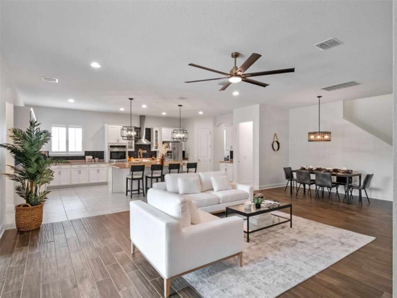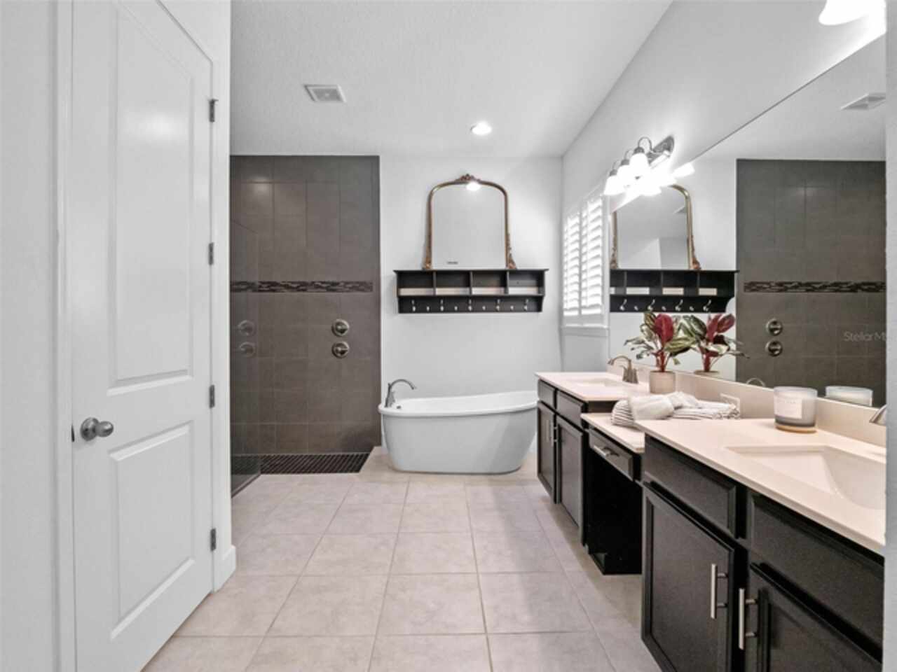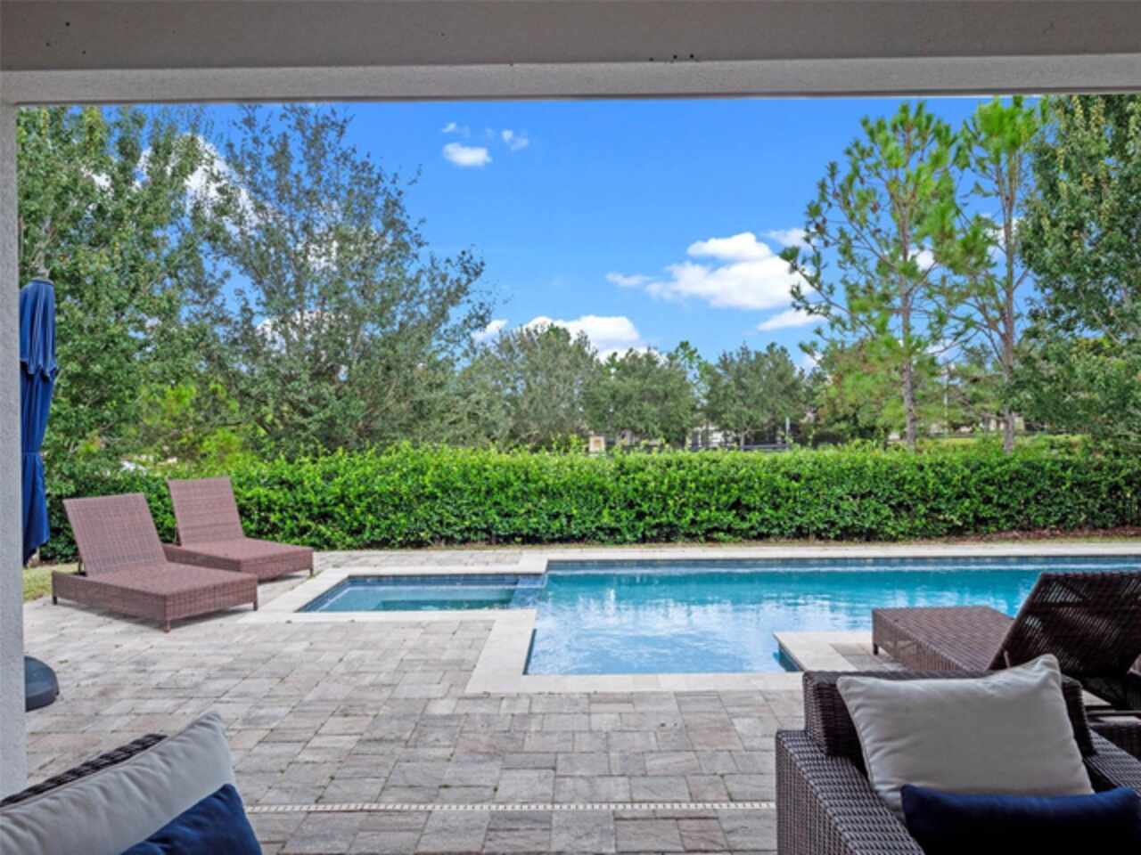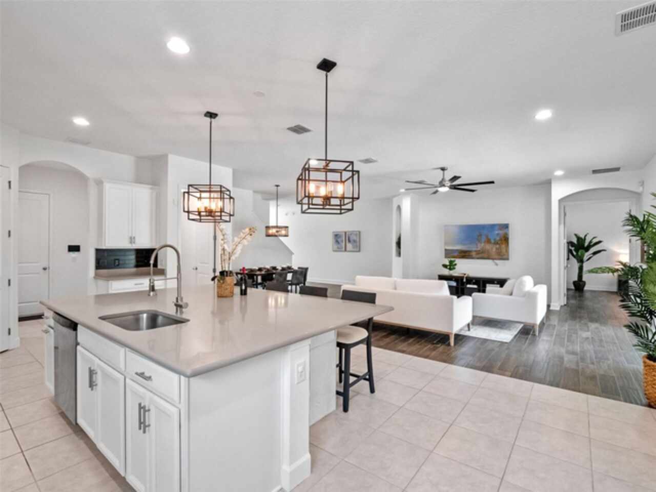 Under contract-accepting backup offers. Welcome to this 3, 097 square foot pool home in Sanctuary at Hamlin, located in the heart of Horizon West and just minutes from Hamlin Town Center. As you enter, two bedrooms share a full bathroom off the foyer, both featuring premium carpet and custom closets. The home then opens into a spacious dining and family room combination with 10-foot ceilings, wood-look tile flooring, and an accent wall. The gourmet kitchen overlooks the main living area and includes Kenmore stainless steel appliances, with double ovens, refrigerator, and natural gas cooktop with hood and pot filler. The kitchen also offers extensive 42-inch cabinetry, a stylish backsplash, ample counter space, a large walk-in pantry, and an oversized quartz island with seating and pendant lighting. The primary suite, accessed through double doors, is generously sized with views of the backyard. A custom barn door leads to the en suite bath, which includes dual vanities with a central makeup station, garden tub, walk-in shower, and two closets. The primary suite features custom closets as well. The first floor includes a third bedroom with pool views and a nearby full bath. Upstairs, you’ll find a private bedroom with en suite bath and a walk-in closet. Step outside through the sliding door to an open-air patio overlooking the saltwater pool and spa, surrounded by paver decking. The open design offers a clean, unobstructed view of the Florida sky, with no rear neighbors for added privacy. A gas hookup is in place for a future summer kitchen. Additional features include plantation shutters throughout, a downstairs laundry room, and a 3-car garage pre-wired for an electric vehicle charger. This home is conveniently close to Cinepolis, PopStroke, Orange County National Golf Center, restaurants, grocery stores, Orlando Health Horizon West Hospital, and Disney World, with easy access to SR-429 for commuting. Schedule your private showing today.