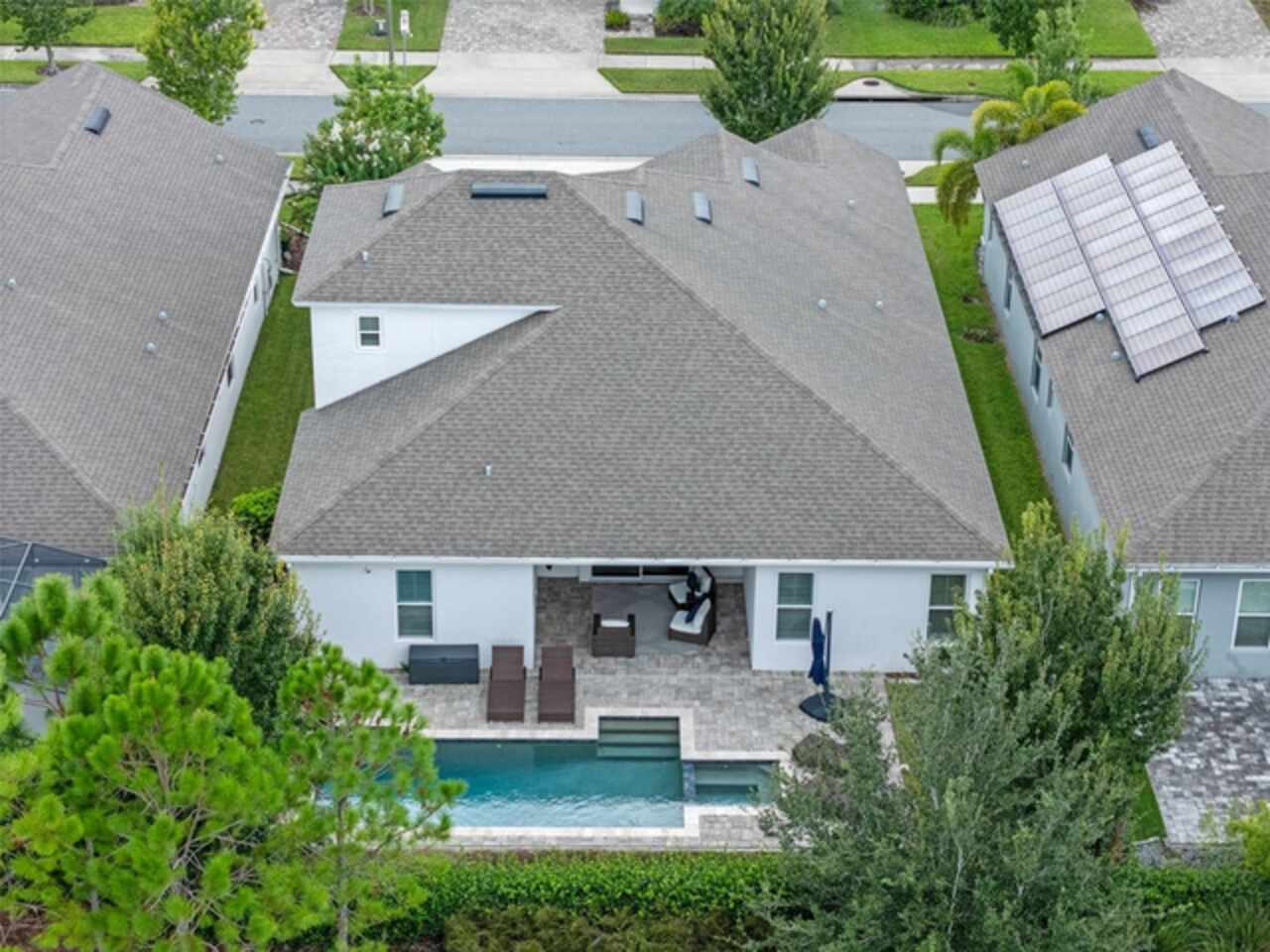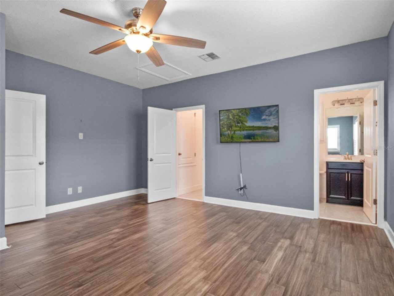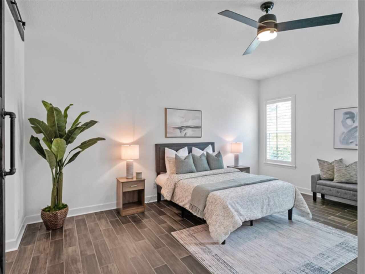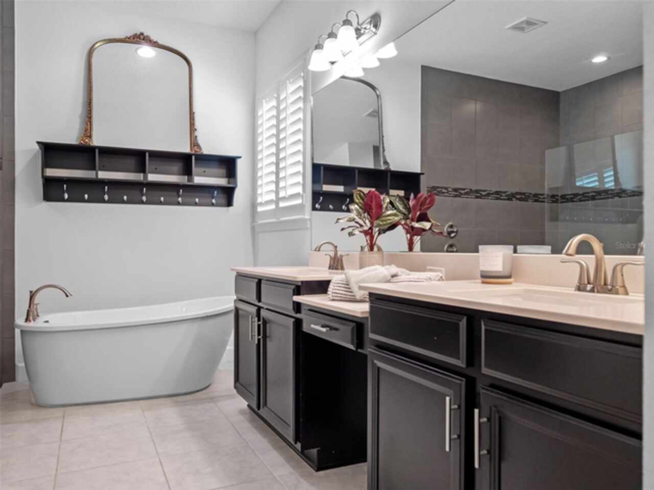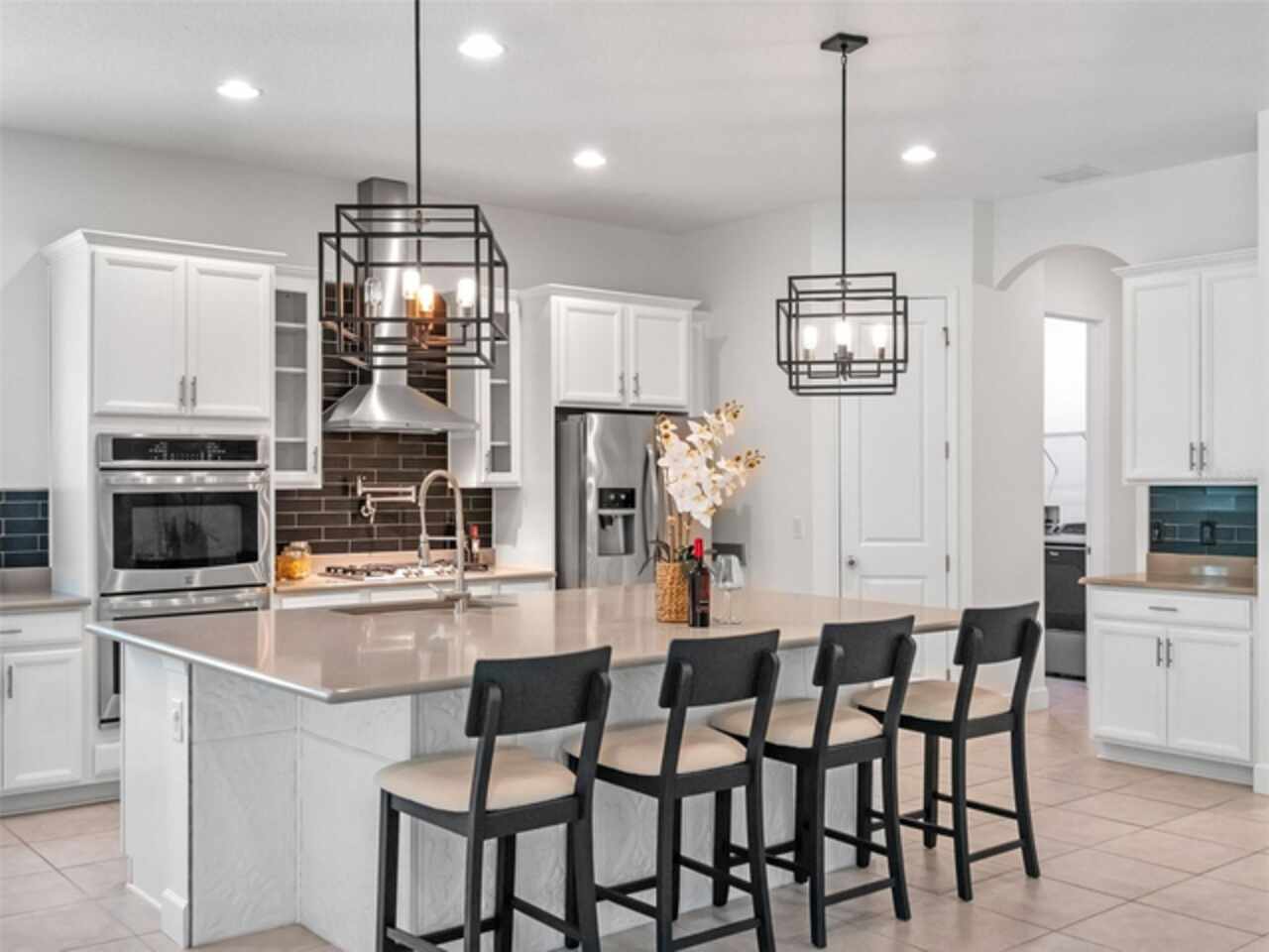 Under contract-accepting backup offers. Welcome to this 3, 097 square foot pool home in Sanctuary at Hamlin, located in the heart of Horizon West and just minutes from Hamlin Town Center. As you enter, two bedrooms share a full bathroom off the foyer, both featuring premium carpet and custom closets. The home then opens into a spacious dining and family room combination with 10-foot ceilings, wood-look tile flooring, and an accent wall. The gourmet kitchen overlooks the main living area and includes Kenmore stainless steel appliances, with double ovens, refrigerator, and natural gas cooktop with hood and pot filler. The kitchen also offers extensive 42-inch cabinetry, a stylish backsplash, ample counter space, a large walk-in pantry, and an oversized quartz island with seating and pendant lighting. The primary suite, accessed through double doors, is generously sized with views of the backyard. A custom barn door leads to the en suite bath, which includes dual vanities with a central makeup station, garden tub, walk-in shower, and two closets. The primary suite features custom closets as well. The first floor includes a third bedroom with pool views and a nearby full bath. Upstairs, you’ll find a private bedroom with en suite bath and a walk-in closet. Step outside through the sliding door to an open-air patio overlooking the saltwater pool and spa, surrounded by paver decking. The open design offers a clean, unobstructed view of the Florida sky, with no rear neighbors for added privacy. A gas hookup is in place for a future summer kitchen. Additional features include plantation shutters throughout, a downstairs laundry room, and a 3-car garage pre-wired for an electric vehicle charger. This home is conveniently close to Cinepolis, PopStroke, Orange County National Golf Center, restaurants, grocery stores, Orlando Health Horizon West Hospital, and Disney World, with easy access to SR-429 for commuting. Schedule your private showing today.
