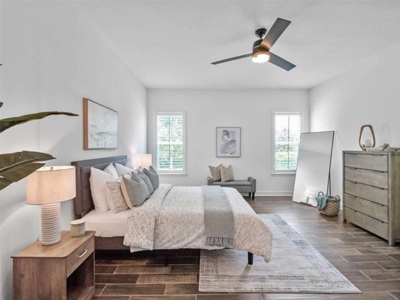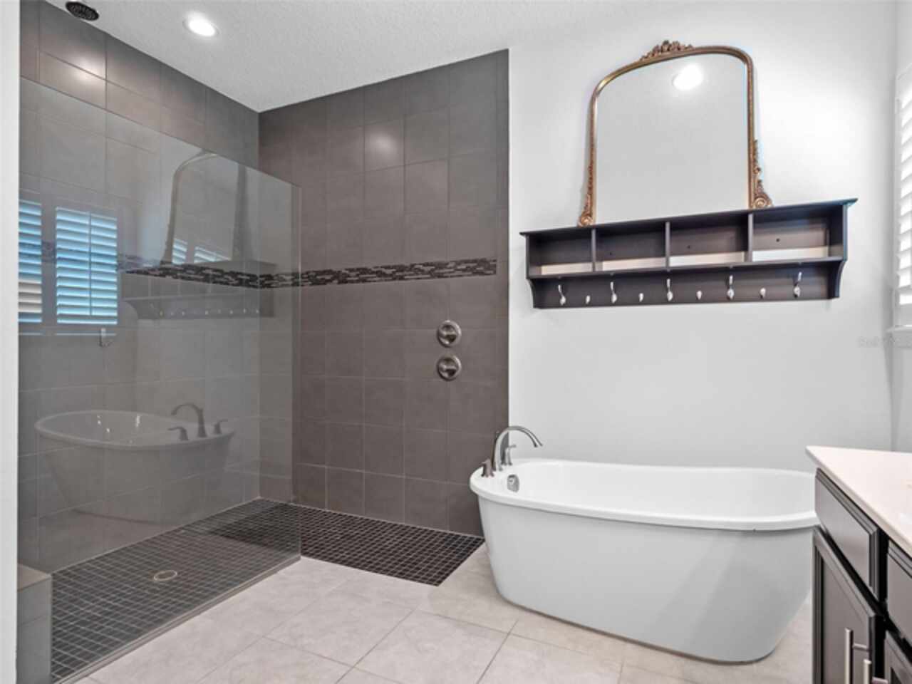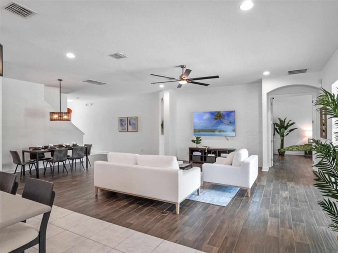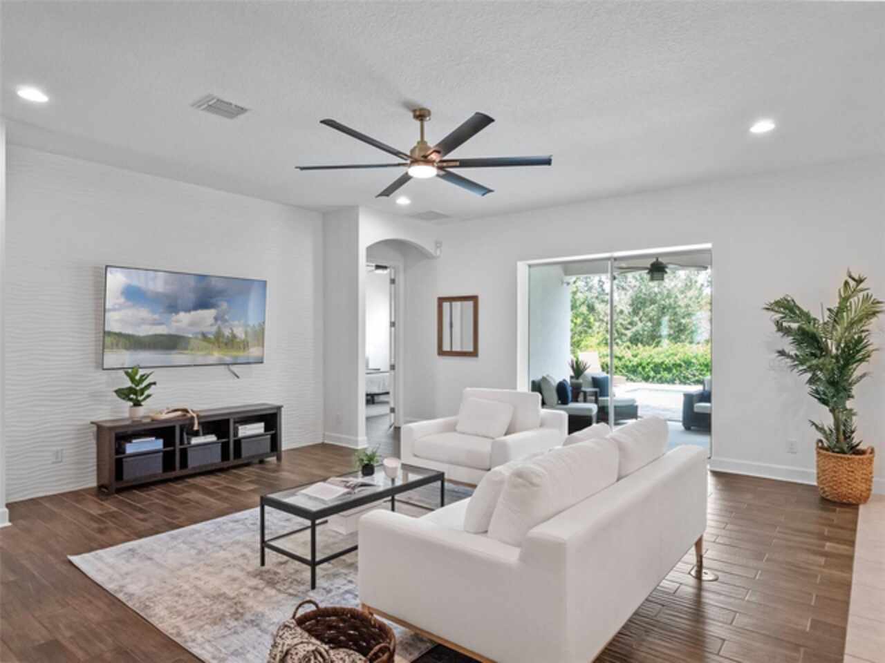 Under contract-accepting backup offers. Welcome to this 3, 097 square foot pool home in Sanctuary at Hamlin, located in the heart of Horizon West and just minutes from Hamlin Town Center. As you enter, two bedrooms share a full bathroom off the foyer, both featuring premium carpet and custom closets. The home then opens into a spacious dining and family room combination with 10-foot ceilings, wood-look tile flooring, and an accent wall. The gourmet kitchen overlooks the main living area and includes Kenmore stainless steel appliances, with double ovens, refrigerator, and natural gas cooktop with hood and pot filler. The kitchen also offers extensive 42-inch cabinetry, a stylish backsplash, ample counter space, a large walk-in pantry, and an oversized quartz island with seating and pendant lighting. The primary suite, accessed through double doors, is generously sized with views of the backyard. A custom barn door leads to the en suite bath, which includes dual vanities with a central makeup station, garden tub, walk-in shower, and two closets. The primary suite features custom closets as well. The first floor includes a third bedroom with pool views and a nearby full bath. Upstairs, you’ll find a private bedroom with en suite bath and a walk-in closet. Step outside through the sliding door to an open-air patio overlooking the saltwater pool and spa, surrounded by paver decking. The open design offers a clean, unobstructed view of the Florida sky, with no rear neighbors for added privacy. A gas hookup is in place for a future summer kitchen. Additional features include plantation shutters throughout, a downstairs laundry room, and a 3-car garage pre-wired for an electric vehicle charger. This home is conveniently close to Cinepolis, PopStroke, Orange County National Golf Center, restaurants, grocery stores, Orlando Health Horizon West Hospital, and Disney World, with easy access to SR-429 for commuting. Schedule your private showing today.