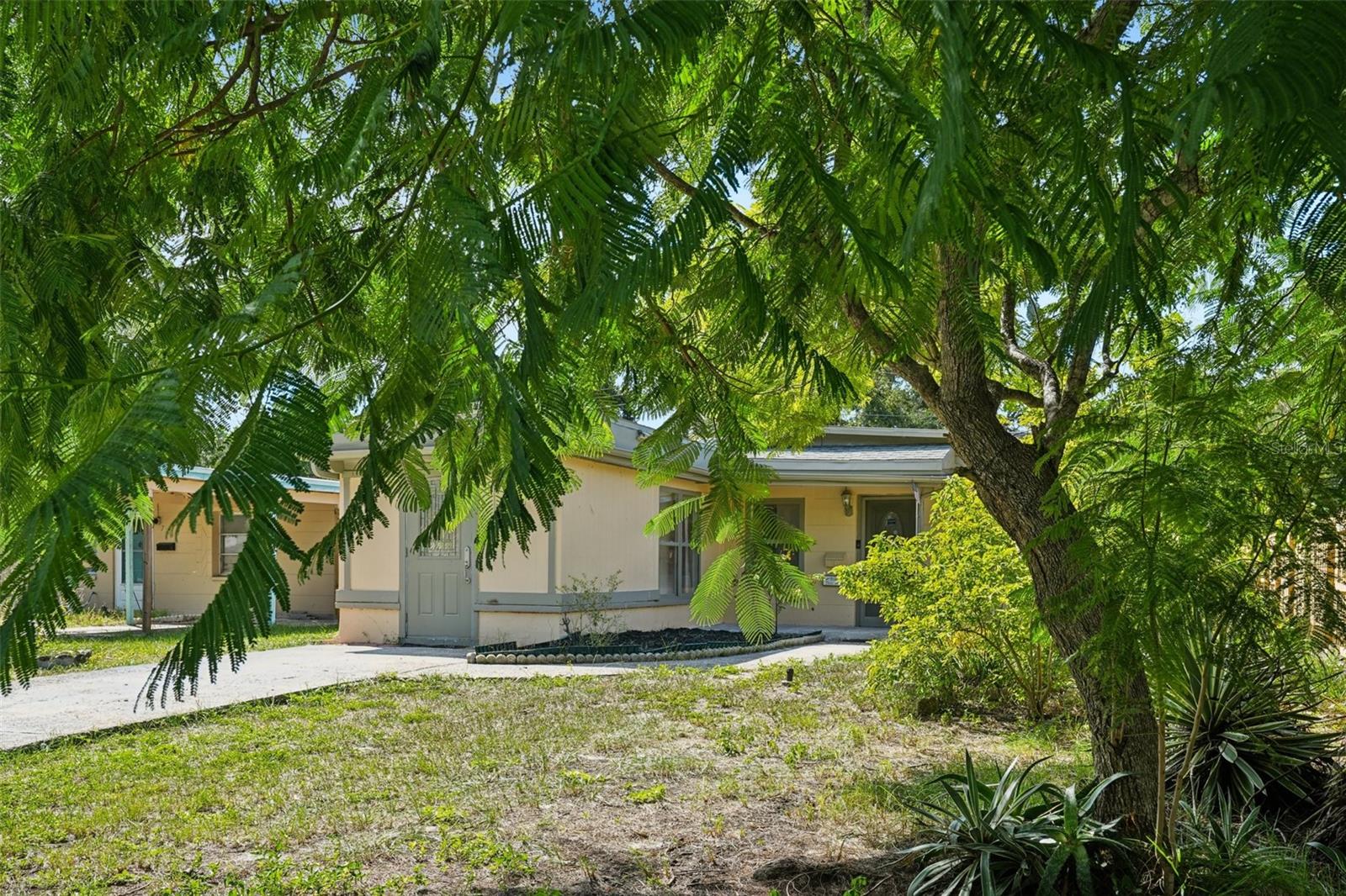 You won’t want to miss this charming St. Pete home, less than 5 miles from beautiful Madeira Beach! Featuring 3 bedrooms and 2 bathrooms, this home offers a smart layout with plenty of potential. The kitchen opens seamlessly to the living room, creating a bright and welcoming gathering space at the heart of the home. Tile floors and updated cabinets bring a modern touch, while the inside laundry room is conveniently located off the kitchen, adds everyday ease. Two bedrooms are tucked away at the back for privacy, while the third bedroom sits at the front with its own private entrance, perfect for guests, a home office, or even an income-producing opportunity. Step outside to a spacious, fenced backyard complete with mature fruit trees, including mango, orange, and custard apple, offering both shade and homegrown delights. With NO HOA or CDD, it’s the perfect place to bring your boat, jet ski or any other water toys. Schedule your private showing today and see the possibilities for yourself!