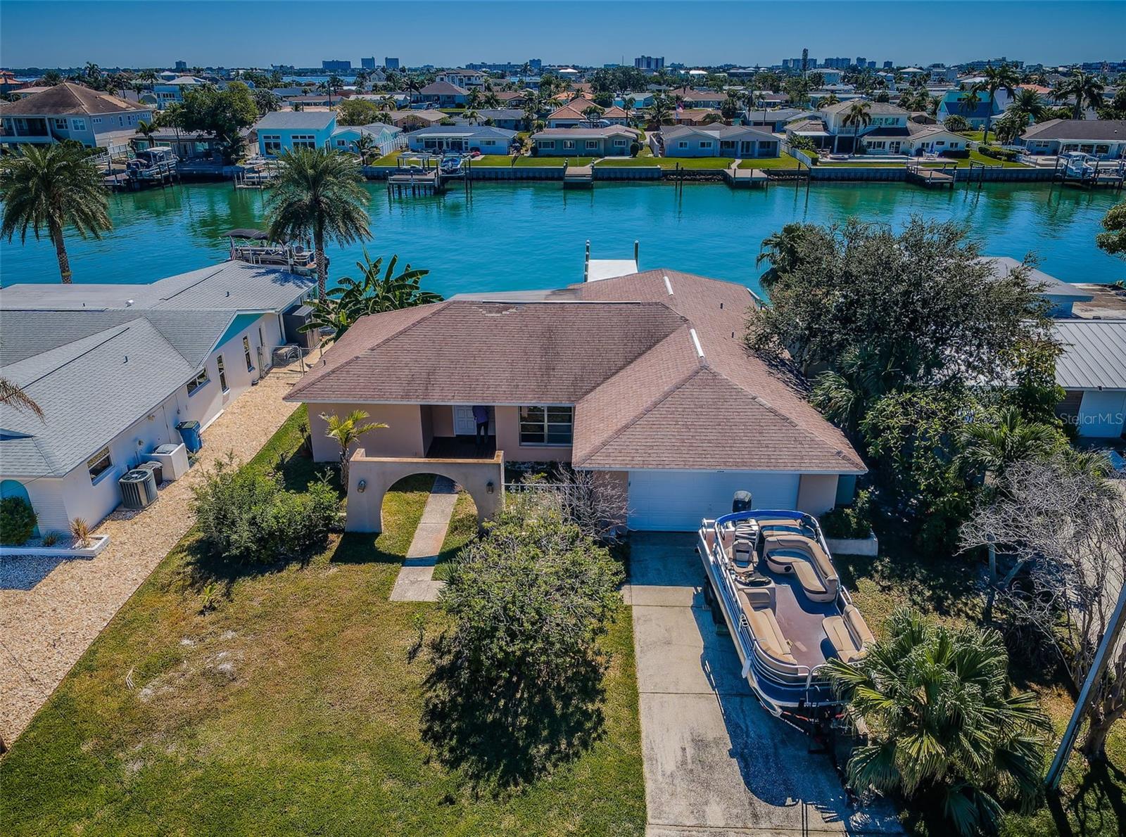 Remediated and ready for your restoration project. Located on beautiful water in the wonderful upscale boating community of Capri Isle, this split bedroom plan, 3 bedroom, 2 bath home is within enjoyable walking distance of Treasure Island’s pristine white sand beaches, and its exceptional dining and entertainment. This residence offers a full 70ft of water frontage, a sizable 2-car garage, indoor laundry, a 200sqft screen-enclosed waterfront lanai, and a large updated composite dock with step-down area for kayak/paddleboard launch. From here, you’re just a 5-minute boat ride to the Gulf! This is an outstanding opportunity to build equity in a waterfront home located in one of Tampa Bay’s premier waterfront/boating communities. Dimensions are estimates, buyer to verify.