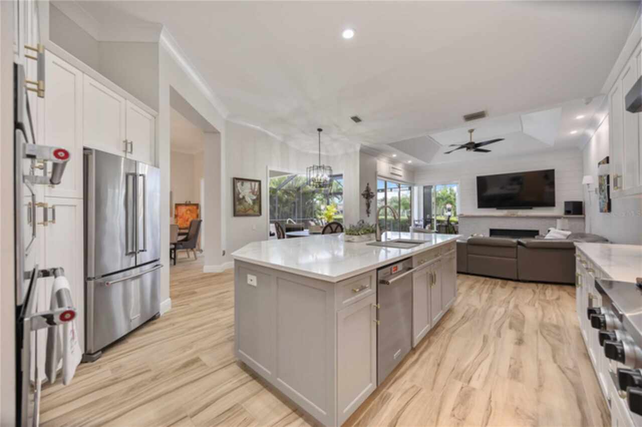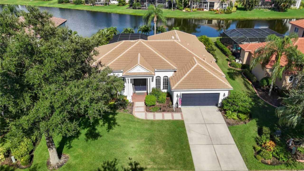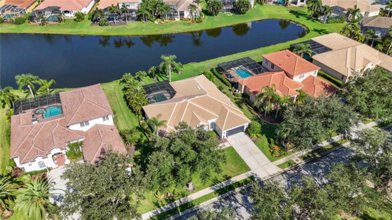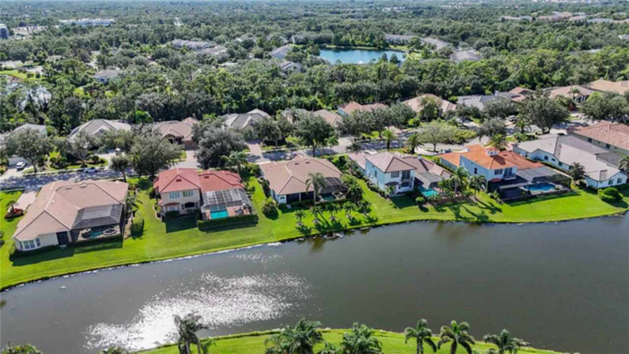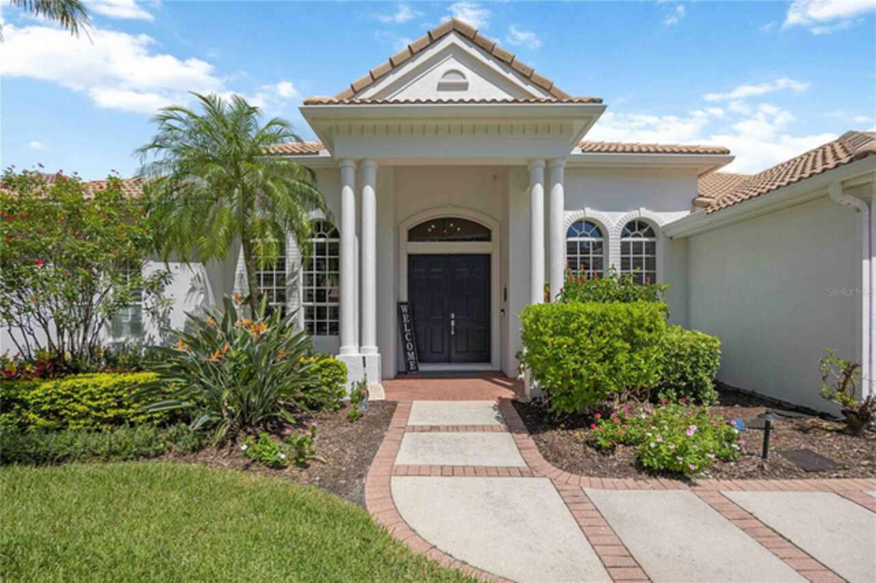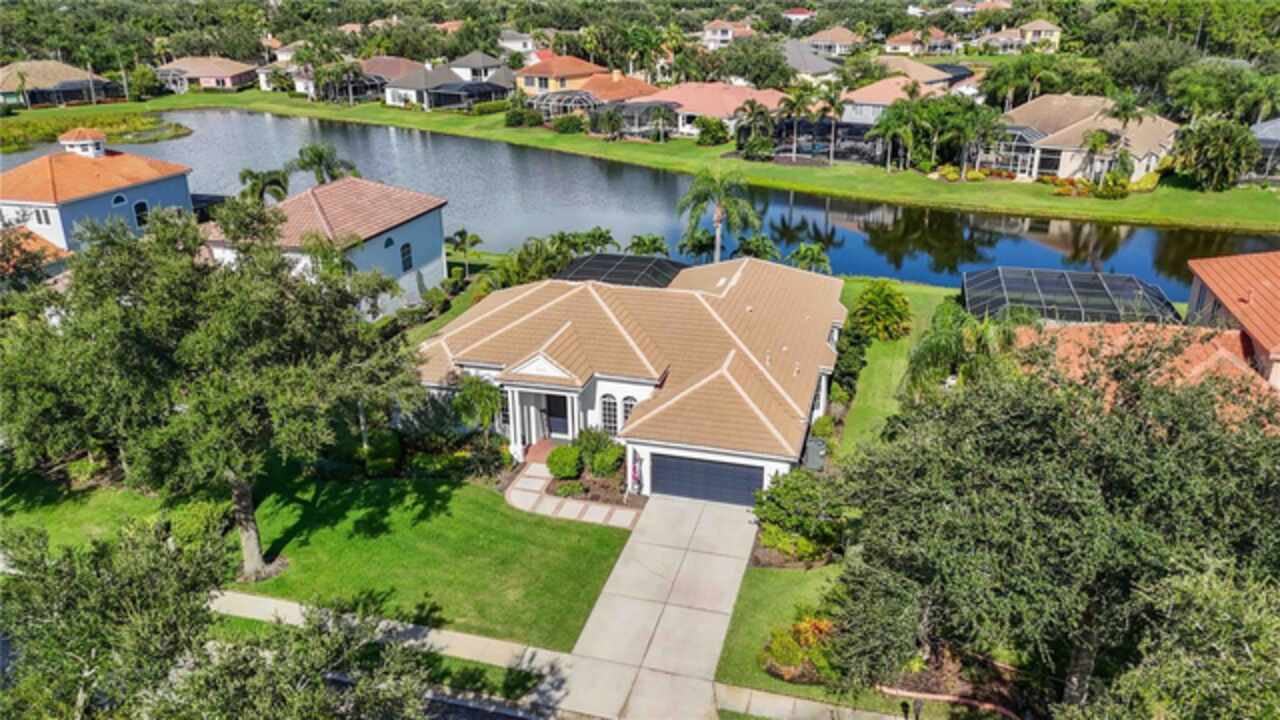 A MUST SEE! Luxury Lakefront Living Awaits with your dream home in The Sanctuary at River Club, a rare lakefront oasis located in one of Lakewood Ranch’s most desirable communities.Experience the pinnacle of luxury lakefront living at 7555 Tori Way in The Sanctuary at River Club—one of Lakewood Ranch’s most sought-after communities. This stunning custom-built home is your rare opportunity to own a private oasis on a premium 12, 981 sq ft lakefront lot. With 3 spacious bedrooms, 3 full bathrooms, and a versatile flex room (perfect as a den or 4th bedroom), this 2, 729 sq ft residence offers an elegant blend of style, comfort, and modern convenience. From the moment you arrive, the freshly painted exterior (2023) and striking curb appeal make a powerful first impression. Inside, you'll be captivated by rich porcelain faux wood plank tile floors, elegant crown molding, plantation shutters (2021), and designer lighting throughout. The open-concept living area boasts a custom vaulted ceiling and cozy fireplace, all perfectly positioned to showcase panoramic lake views and your private pool. At the heart of the home, the gourmet kitchen will thrill any chef—with quartz countertops, a full quartz backsplash, a 6-burner gas cooktop with custom pot filler, stainless steel appliances, and a walk-in pantry. Retreat to the luxurious primary suite featuring a floating jetted soaking tub, oversized dual-entry walk-in shower, dual vanities with quartz counters, remote-control blackout blinds, and two walk-in closets with custom shelving. The thoughtful split floor plan ensures privacy for family and guests alike, with a second en-suite bedroom and a third bedroom conveniently located near a full hallway bath. Step outside to your own personal resort: a heated pool (new heater 2025), relaxing spa, and two covered seating areas where you can entertain or unwind while taking in breathtaking lake views and Florida wildlife. This meticulously maintained home also features top-tier upgrades: a Trane 15 SEER AC (2022), Honeywell gas water heater (2020), washer and dryer (2021), and an oversized two-car garage with built-in cabinetry and epoxy flooring (2021). Best of all, enjoy low HOA fees and NO CDD fees, a rare find in such a prestigious neighborhood. Located minutes from top-rated schools, upscale shopping, dining, the River Club Golf Course, and with easy access to I-75, this home offers the perfect balance of luxury, location, and lifestyle. Don’t miss your chance to own one of Lakewood Ranch’s finest lakefront homes—schedule your private tour today and make 7555 Tori Way your new address in paradise!