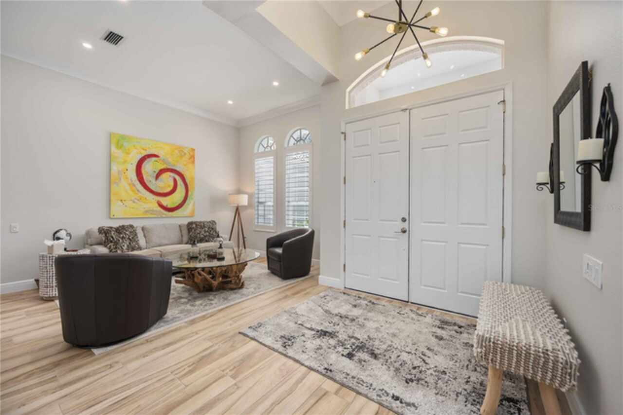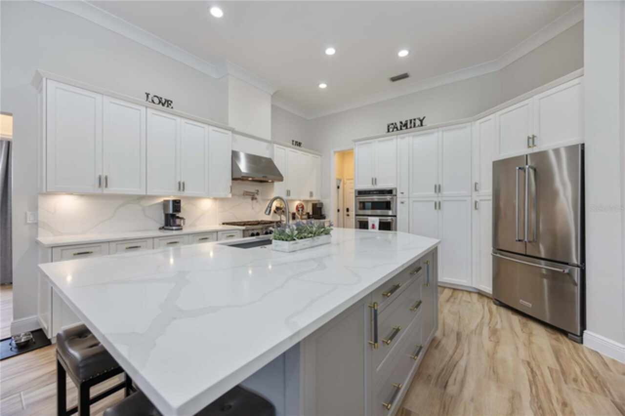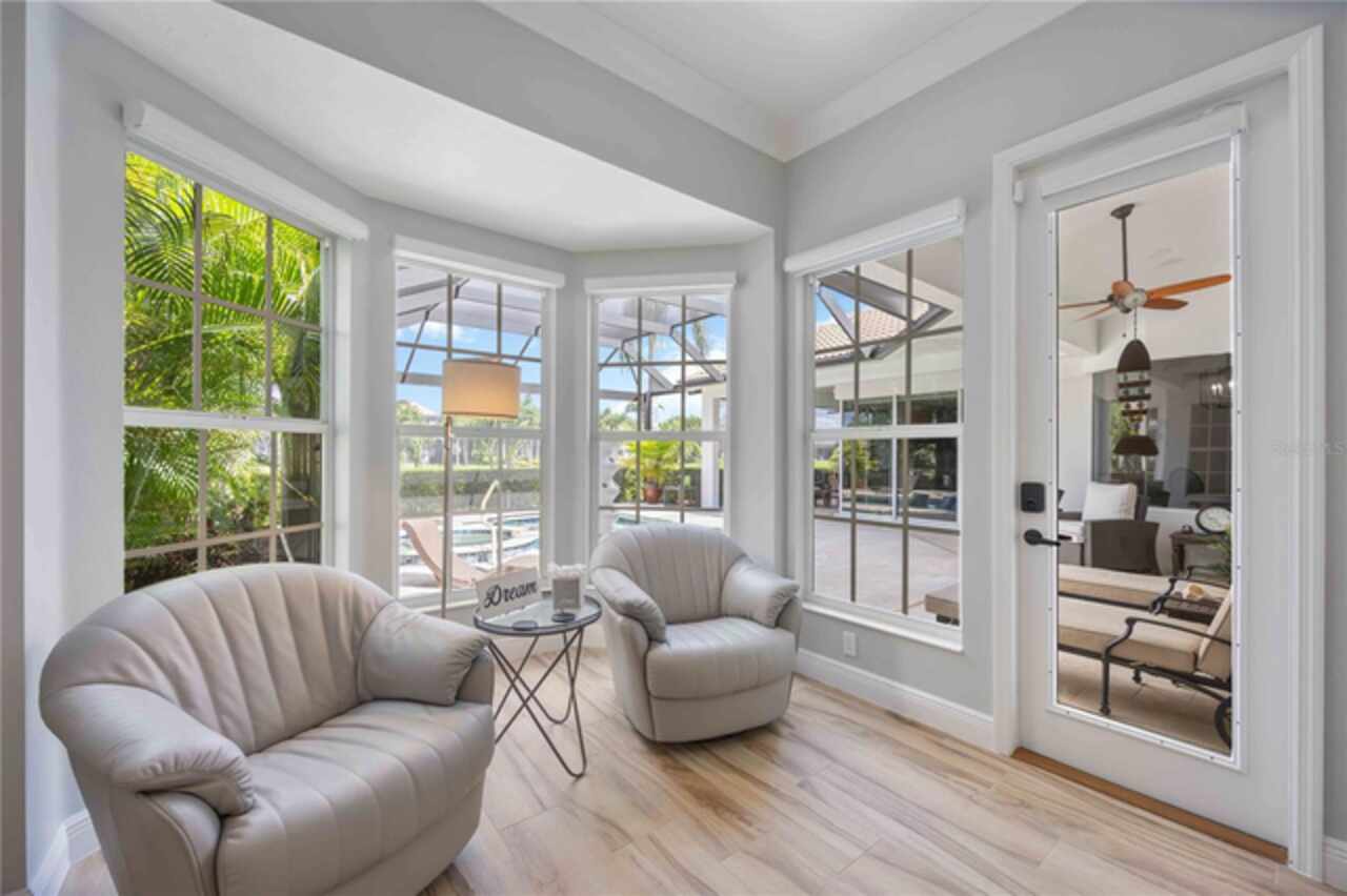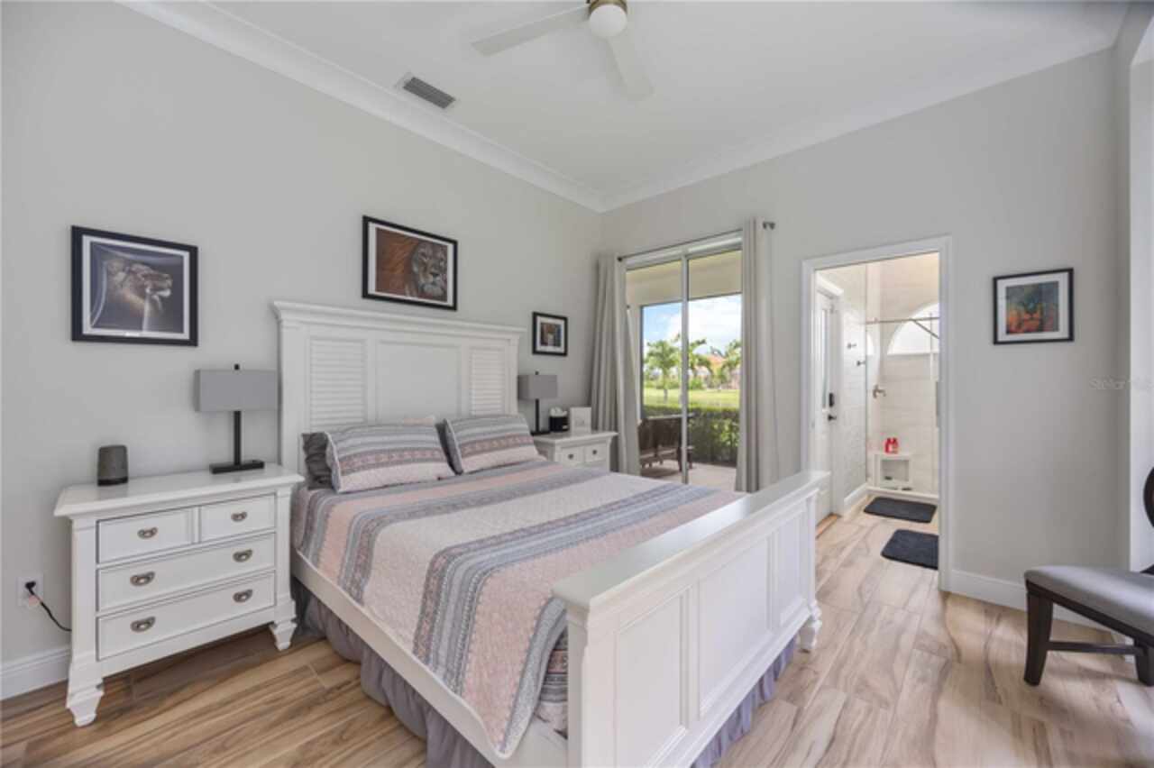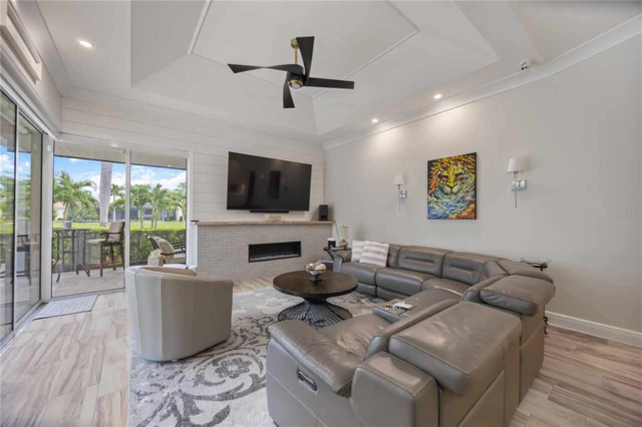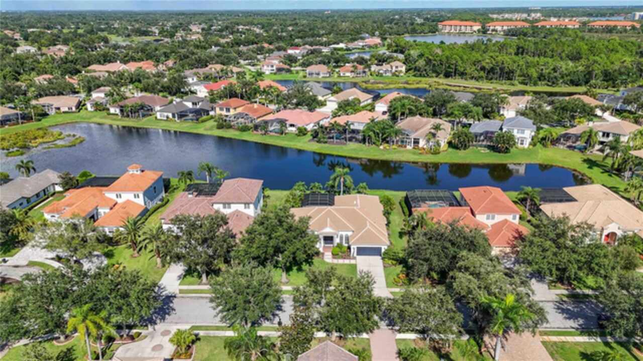 A MUST SEE! Luxury Lakefront Living Awaits with your dream home in The Sanctuary at River Club, a rare lakefront oasis located in one of Lakewood Ranch’s most desirable communities.Experience the pinnacle of luxury lakefront living at 7555 Tori Way in The Sanctuary at River Club—one of Lakewood Ranch’s most sought-after communities. This stunning custom-built home is your rare opportunity to own a private oasis on a premium 12, 981 sq ft lakefront lot. With 3 spacious bedrooms, 3 full bathrooms, and a versatile flex room (perfect as a den or 4th bedroom), this 2, 729 sq ft residence offers an elegant blend of style, comfort, and modern convenience. From the moment you arrive, the freshly painted exterior (2023) and striking curb appeal make a powerful first impression. Inside, you'll be captivated by rich porcelain faux wood plank tile floors, elegant crown molding, plantation shutters (2021), and designer lighting throughout. The open-concept living area boasts a custom vaulted ceiling and cozy fireplace, all perfectly positioned to showcase panoramic lake views and your private pool. At the heart of the home, the gourmet kitchen will thrill any chef—with quartz countertops, a full quartz backsplash, a 6-burner gas cooktop with custom pot filler, stainless steel appliances, and a walk-in pantry. Retreat to the luxurious primary suite featuring a floating jetted soaking tub, oversized dual-entry walk-in shower, dual vanities with quartz counters, remote-control blackout blinds, and two walk-in closets with custom shelving. The thoughtful split floor plan ensures privacy for family and guests alike, with a second en-suite bedroom and a third bedroom conveniently located near a full hallway bath. Step outside to your own personal resort: a heated pool (new heater 2025), relaxing spa, and two covered seating areas where you can entertain or unwind while taking in breathtaking lake views and Florida wildlife. This meticulously maintained home also features top-tier upgrades: a Trane 15 SEER AC (2022), Honeywell gas water heater (2020), washer and dryer (2021), and an oversized two-car garage with built-in cabinetry and epoxy flooring (2021). Best of all, enjoy low HOA fees and NO CDD fees, a rare find in such a prestigious neighborhood. Located minutes from top-rated schools, upscale shopping, dining, the River Club Golf Course, and with easy access to I-75, this home offers the perfect balance of luxury, location, and lifestyle. Don’t miss your chance to own one of Lakewood Ranch’s finest lakefront homes—schedule your private tour today and make 7555 Tori Way your new address in paradise!