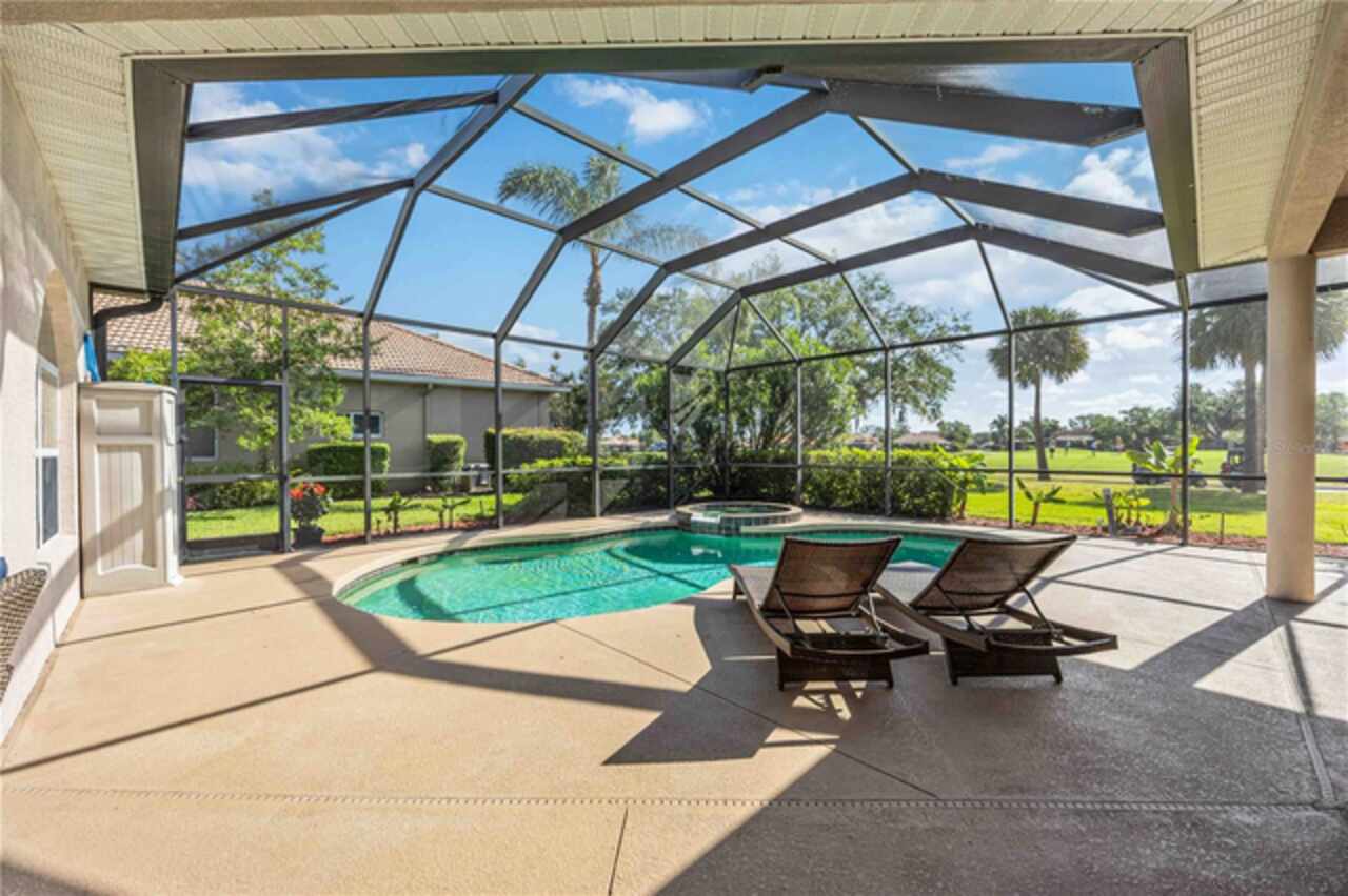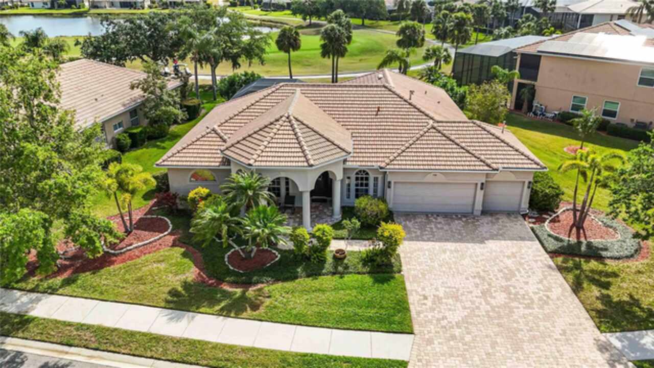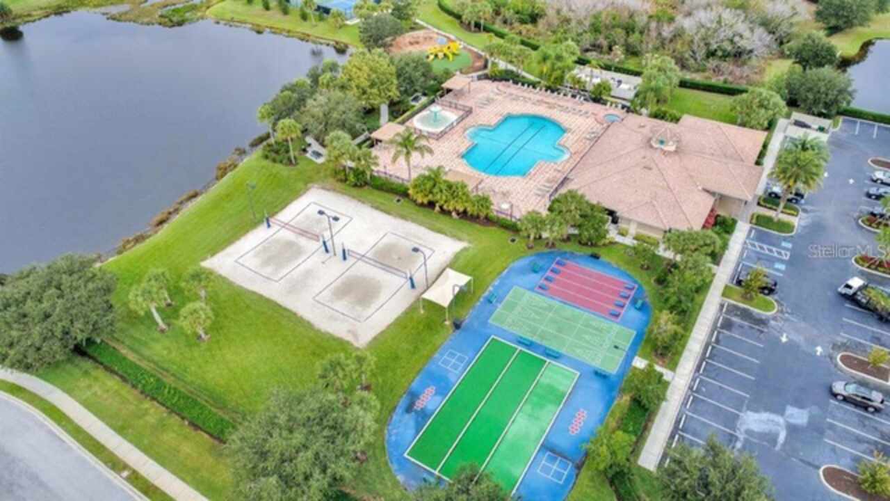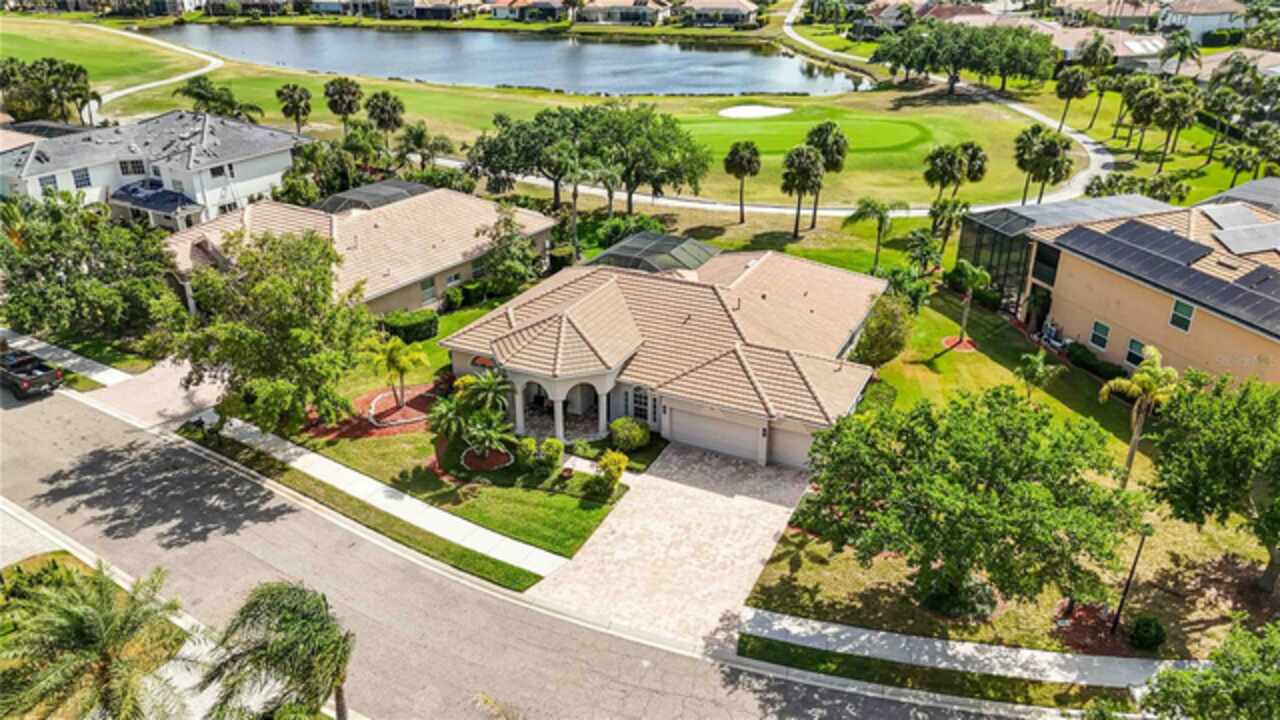 FLORIDA LIFESTYLE PERFECTION – 3 MINUTES TO I 75 & NEW HERITAGE HARBOUR MARKETPLACE! Experience effortless Florida living where everything you love is right at your doorstep—Costco, Target, Whole Foods, Panera, Seasons 52, and Chipotle—all just minutes away. Nestled in the gated golf community of STONEYBROOK AT HERITAGE HARBOUR, this beautifully updated 4-bedroom, 3-bath pool home with office and 3-car garage offers a rare blend of comfort, convenience, and resort-style amenities. With I-75 less than three minutes away, enjoy quick access not only to SARASOTA'S BEACHES AND DINING but also ST. PETERSBURG, TAMPA AND THE ENTIRE TAMPA BAY AREA. Step inside to rich cherry-bamboo floors, 10-foot ceilings, and a sun-filled great room where triple disappearing sliders open completely to your private outdoor retreat. The chef’s kitchen features a gas cooktop, solid-wood cabinetry, and a charming aquarium-window breakfast nook overlooking the pool and lake. Newer AC systems (2020) and Newer Washer and Dryer (2022). The owner’s suite is a serene hideaway with a spa-inspired bath, dual vanities, soaking tub, and direct lanai access. A separate den with French doors makes an ideal home office, reading lounge, or nursery, while guest rooms provide flexibility for family or multi-generational living. Outside, unwind in your SALTWATER HEATED POOL AND SPA surrounded by lush tropical landscaping—or take your golf cart or a short stroll to the new Heritage Harbour Marketplace for dinner, shopping, or a morning coffee at Panera. Enjoy your new Pentair 250 BTU Gas Pool Heater! With Anna Maria Island, Longboat Key, St. Pete Beach, and downtown Tampa all within easy reach, this home offers the perfect balance of LUXURY, LOCATION AND LIFESTYLE—where convenience meets true Florida living. RESORT STYLE LIVING AWAITS! Stoneybrook at Heritage Harbour offers exceptional amenities with low fees, including heated community pools, a spa, tennis and pickleball courts, fitness center, active recreational center, beach volleyball, bocce ball, basketball courts, dog parks and playgrounds. Enjoy community events like Trivia nights, art shows, poolside movies, potluck dinners and more! Live the life you deserve - schedule your private showing today and step into paradise! Note: CDD fees are included in tax figure