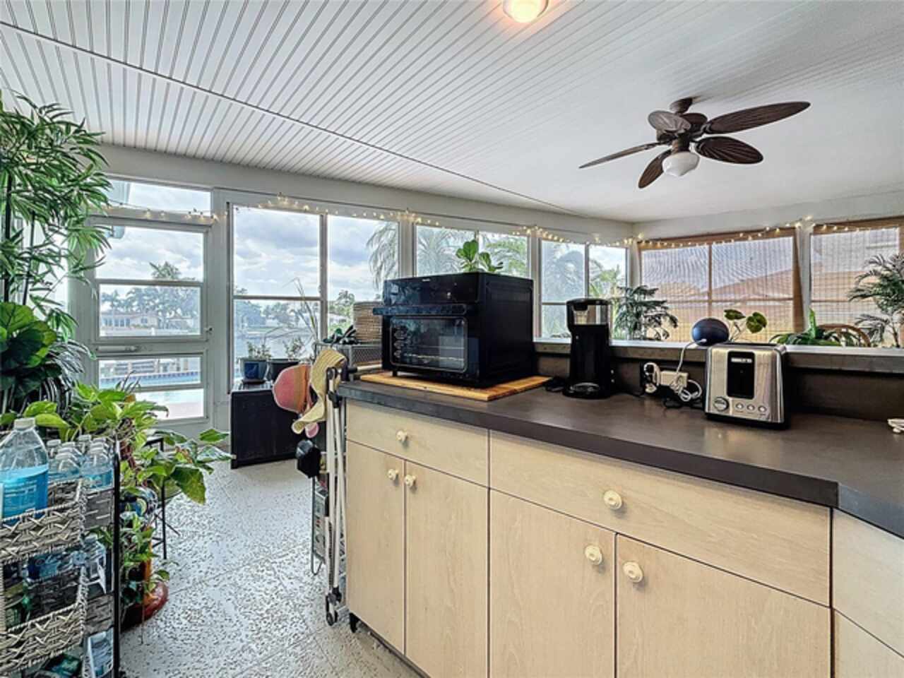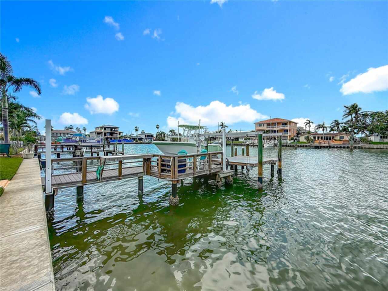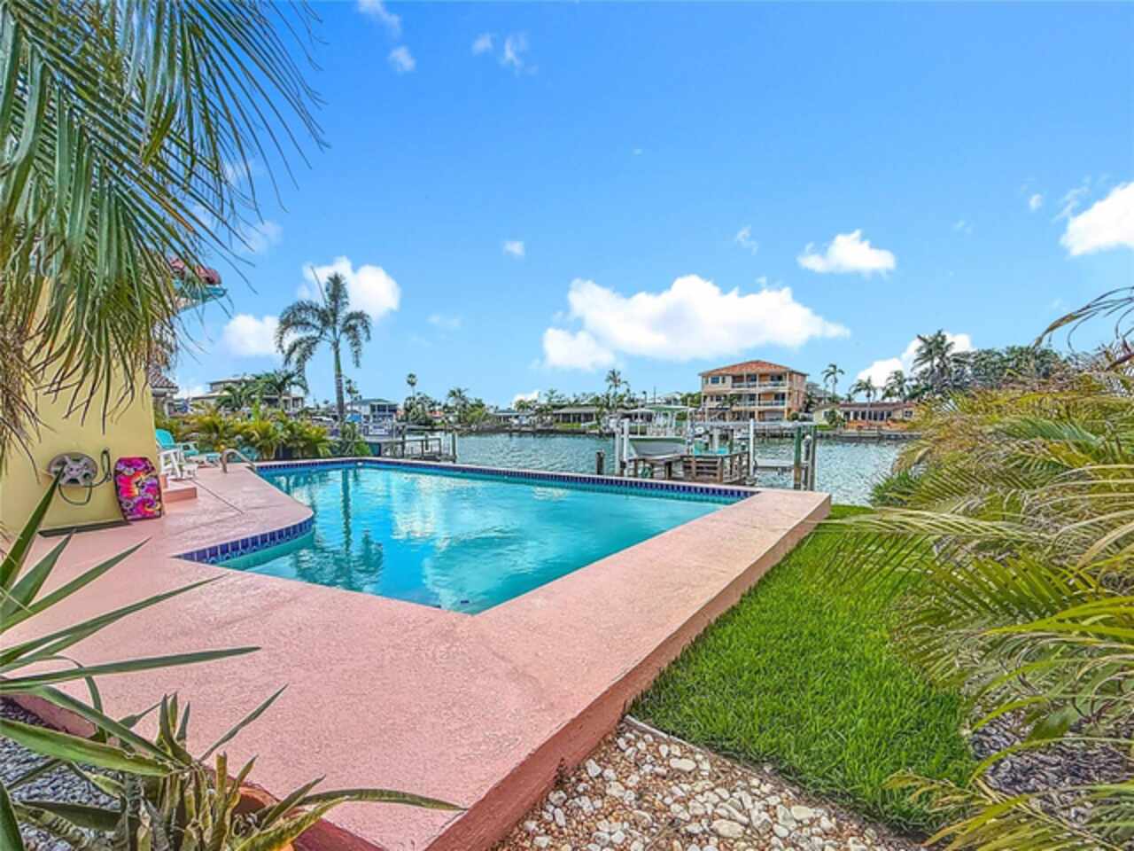 This high and dry beauty was one of the very few houses to escape the hurricane water and winds. Get ready to be blessed in this Spanish influenced, waterfront gem, La Dichosa. Located on the beautiful Isle of Capri, this high and dry beauty was one of the very few houses to escape the hurricane water and winds. A solid, masonry marvel, this three bedroom and three bathroom split plan is ready for your next pool party in the massive forty foot lap pool. Sit on the lighted dock with intracoastal sunrise and sunset views or park your boat on the 17, 000lb boat lift and kayaks or jet skis on the 10, 000lb platform lift. The dock also has a sink and fish-cleaning table. Just a few houses away, the ICW can transport you to the Gulf via Johns Pass or Blinds Pass. A newly paved and professionally landscaped circular drive will invite guests through the verdant arched porch. Inside, a large family room with multi-sliding doors to the enclosed/screened sunroom make a great entertaining space. The sunroom has a Jenn-Air grill, sink and cabinets for storage. The kitchen with bar seating, stainless Bosch, LG and GE appliances, granite countertops and an ample dining room gaze over the waterway with sliding doors for views of the pool and water. The backyard, also newly landscaped, offers privacy. A large laundry room with bathroom and spacious storage options allow for egress to the garage and could house an additional fridge. The primary suite is a secluded sanctuary with double sink, a walk-in closet and separate toilet room with shower and bidet. Move right in knowing the tile roof, elevated air conditioner, elevated water heater, seawall, pool pump and water softener are all new. A two car garage with loads of storage will come in handy for the new beach toys. Take a bike ride or walk approximately three fourths of a mile to the wide sandy shores of one of Treasure Island’s beautiful beaches. Play tennis, pickleball or take the kids to the playground, baseball field or dog park, all part of the Rosselli Park community amenities. Hop on the Sun Runner for dinner and drinks downtown St. Petersburg or simply kick back and enjoy your new slice of paradise