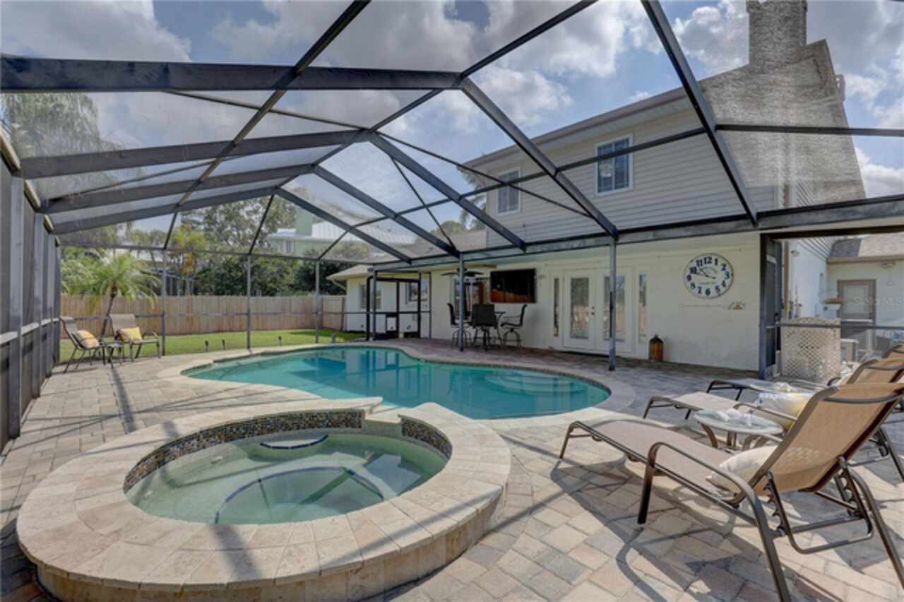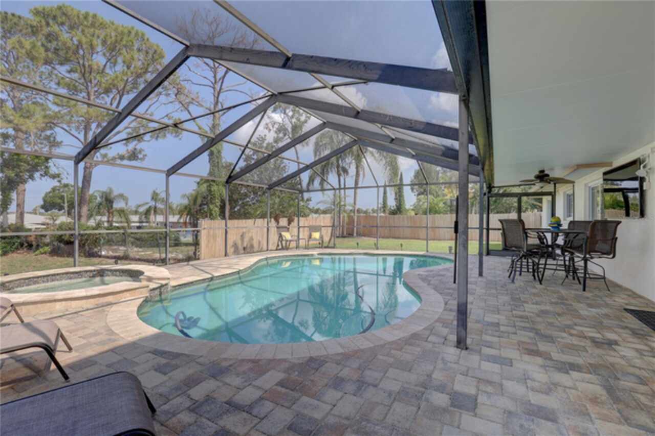 NON-EVACUATION ZONE and APPRAISED WITH VALUE! Discover your private retreat in the highly sought-after Drew Oaks Estates of Seminole. Nestled at the end of a quiet cul-de-sac, this beautifully cared-for 4-bedroom, 2.5-bath POOL HOME sits on TWO FENCED PARCELS for the purchase price (0.42 acres)—a rare find offering exceptional privacy, space, and flexibility. Inside, enjoy a warm, inviting layout with a cozy fireplace and a fully updated kitchen featuring brand-new LG stainless steel appliances, perfect for both everyday living and entertaining. The bright screened enclosure opens to a sparkling pool and spa with paver patio, creating your own Florida oasis. The additional 0.18-acre fenced lot directly behind the home is a true bonus—ideal for a play area, garden, outdoor entertaining, or future possibilities. All of this comes with the peace of mind of being in a NON-FLOOD ZONE. Love the outdoors? Stroll to nearby Millennium Park and Seminole City Park or drive just minutes to Redington Shores Beach (8 min) and Lake Seminole Park (9 min). Add in top-rated schools, shopping, and dining right around the corner, and you’ve found a one-of-a-kind property in a neighborhood where homes rarely come available. Seller offering 1 year home warranty! Schedule your showing today, seller is motivated!