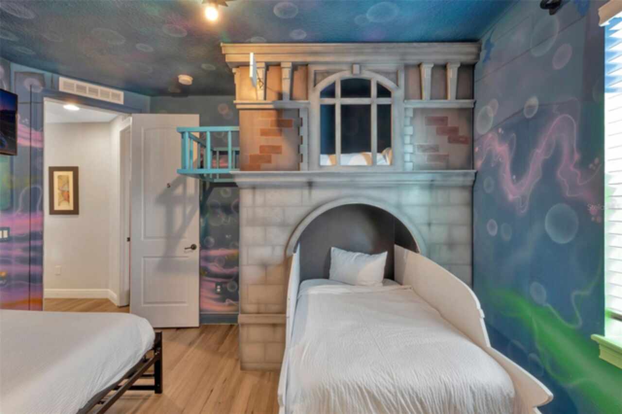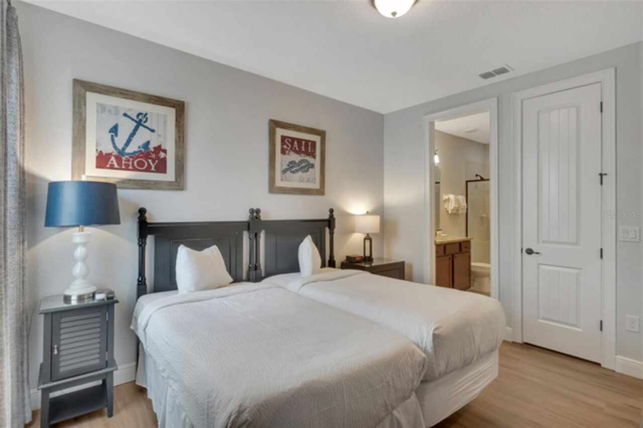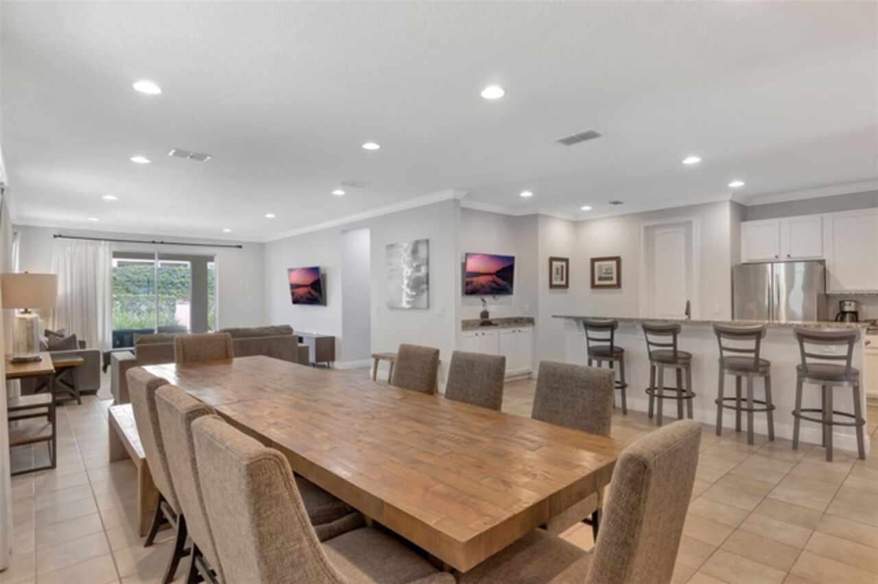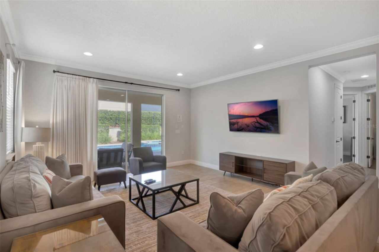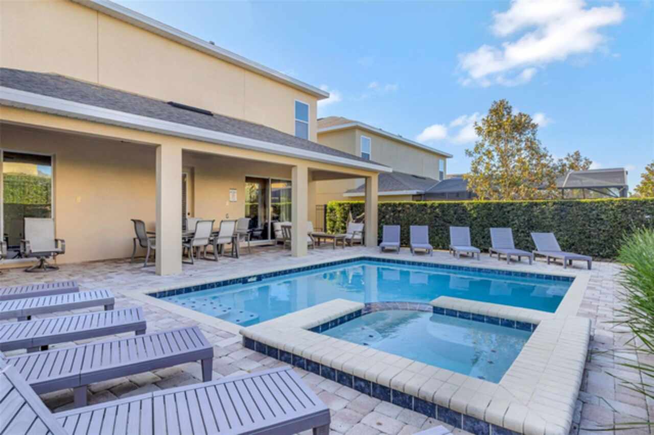 Welcome to this stunning TURNKEY, fully furnished 11-bedroom, 10-bathroom home located in the highly sought-after Encore Resort, just minutes from world-class theme parks! Perfectly designed for large groups and short-term rentals, this property comfortably SLEEPS 20–24 guests and offers the ultimate vacation experience with 9 ensuite bedrooms for maximum comfort and privacy. Gross RENTAL PROJECTIONS are $128, 373, with a 48% OCCUPANCY RATE and an AVERAGE NIGHTLY RATE of $727. Step inside to a spacious open-concept floor plan featuring a gourmet kitchen equipped with 2 refrigerators, 2 dishwashers, and generous dining and living areas—ideal for entertaining. Three bedrooms are conveniently located downstairs, including one with an accessible ensuite bathroom. Upstairs, you’ll find 8 additional bedrooms, including 4 custom-themed bunk rooms your guests will love: Marvel, Ghostbusters, Spiderman, and Pirates of the Caribbean. The living room’s sliding glass doors open to a covered patio, private heated pool and spa, and lush mature landscaping for added privacy—the perfect spot to unwind after a day at the parks. For endless indoor fun, the converted Star Wars-themed game room is a showstopper, featuring a life-size R2-D2, air hockey, Aliens Extermination, Expert Shot Basketball, and two Nascar Virtual Racing arcade games. Additional features include laundry rooms on both levels, ensuring convenience for large groups. Whether you're looking for a high-performing investment or a vacation home for making memories, this property delivers it all. The Encore at Reunion Resort includes a spectacular clubhouse, award-winning restaurant, a Water Park, full-service spa, two playgrounds, state-of-the-art gym, basketball, volleyball & tennis courts. The HOA fee covers 24-hour gated entrances & roaming security, trash pickup, & an annual exterior house cleaning. A concierge desk is available at the clubhouse to assist with booking tickets, meals, airline check ins, resort provided shuttles to parks, & more. Enjoy being minutes away from three golf courses and in the heart of attractions, shopping, dining and more. Call us today to schedule your private tour!
