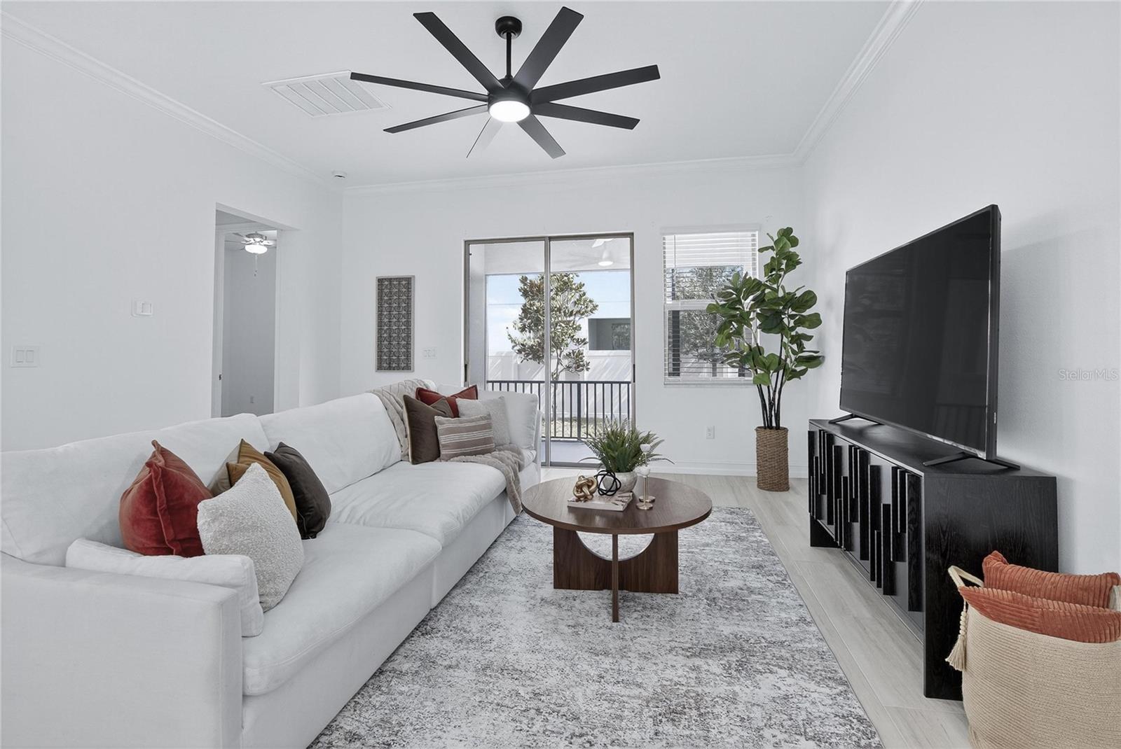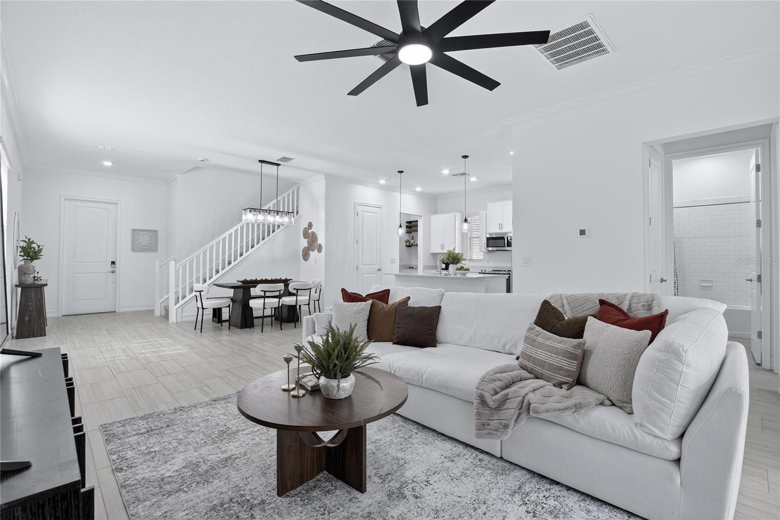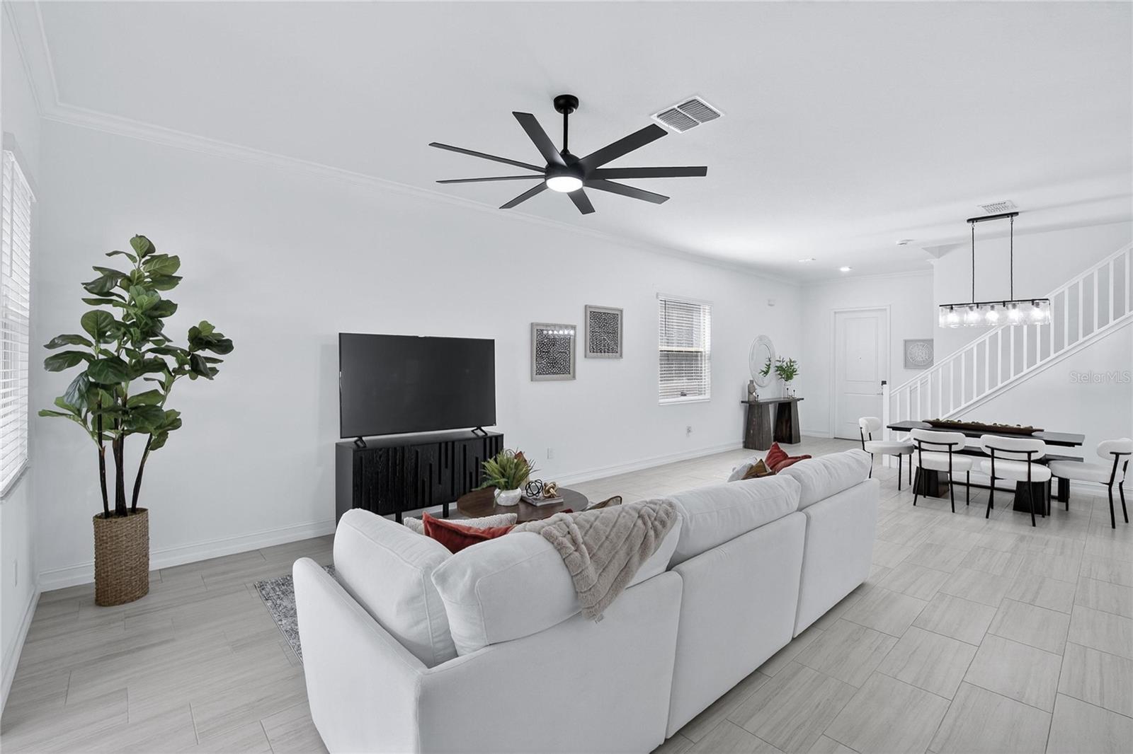 Ceiling Fans(s), Living Room/Dining Room Combo, Open Floorplan, Stone Counters, Thermostat, Walk-In Closet(s), Window Treatments
