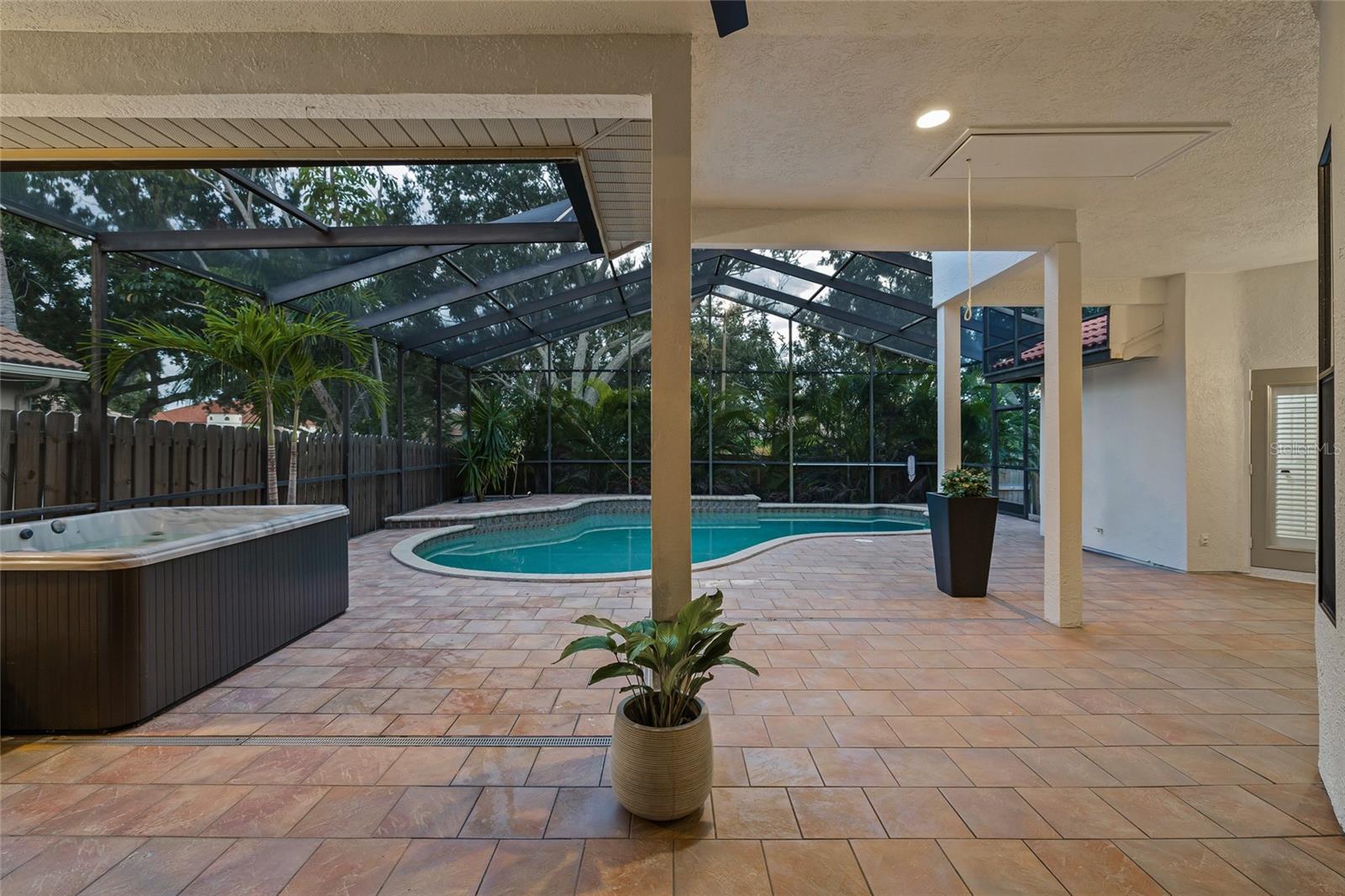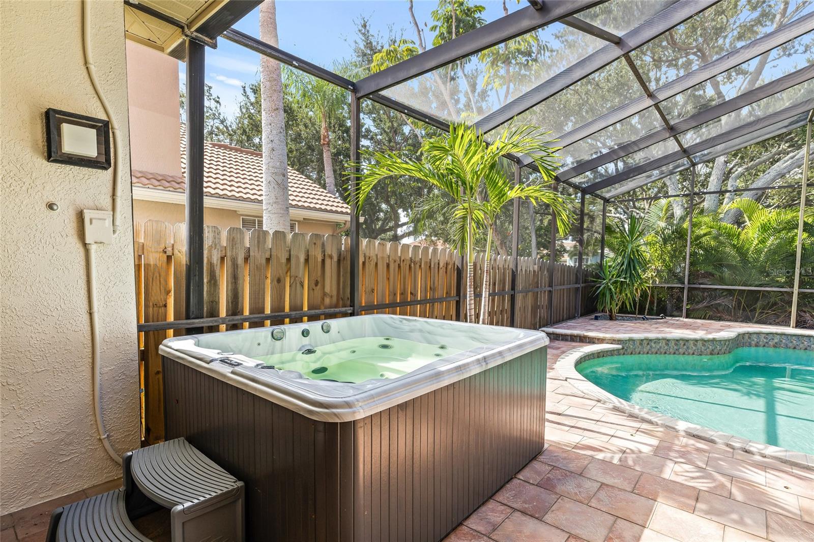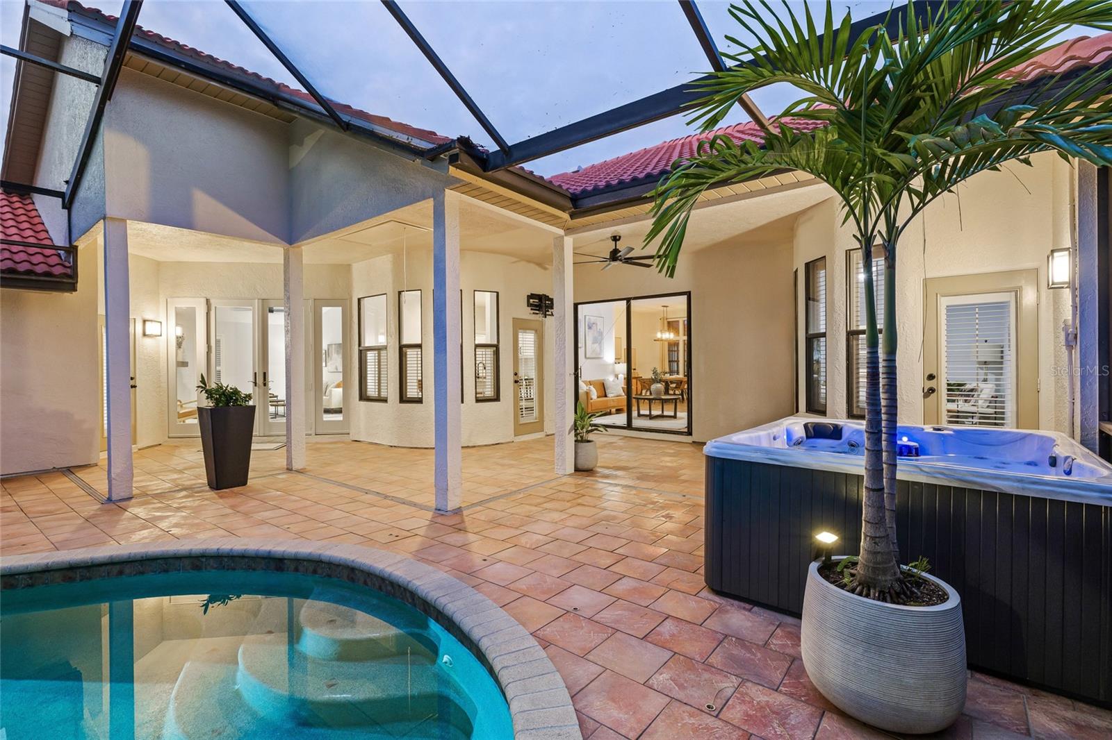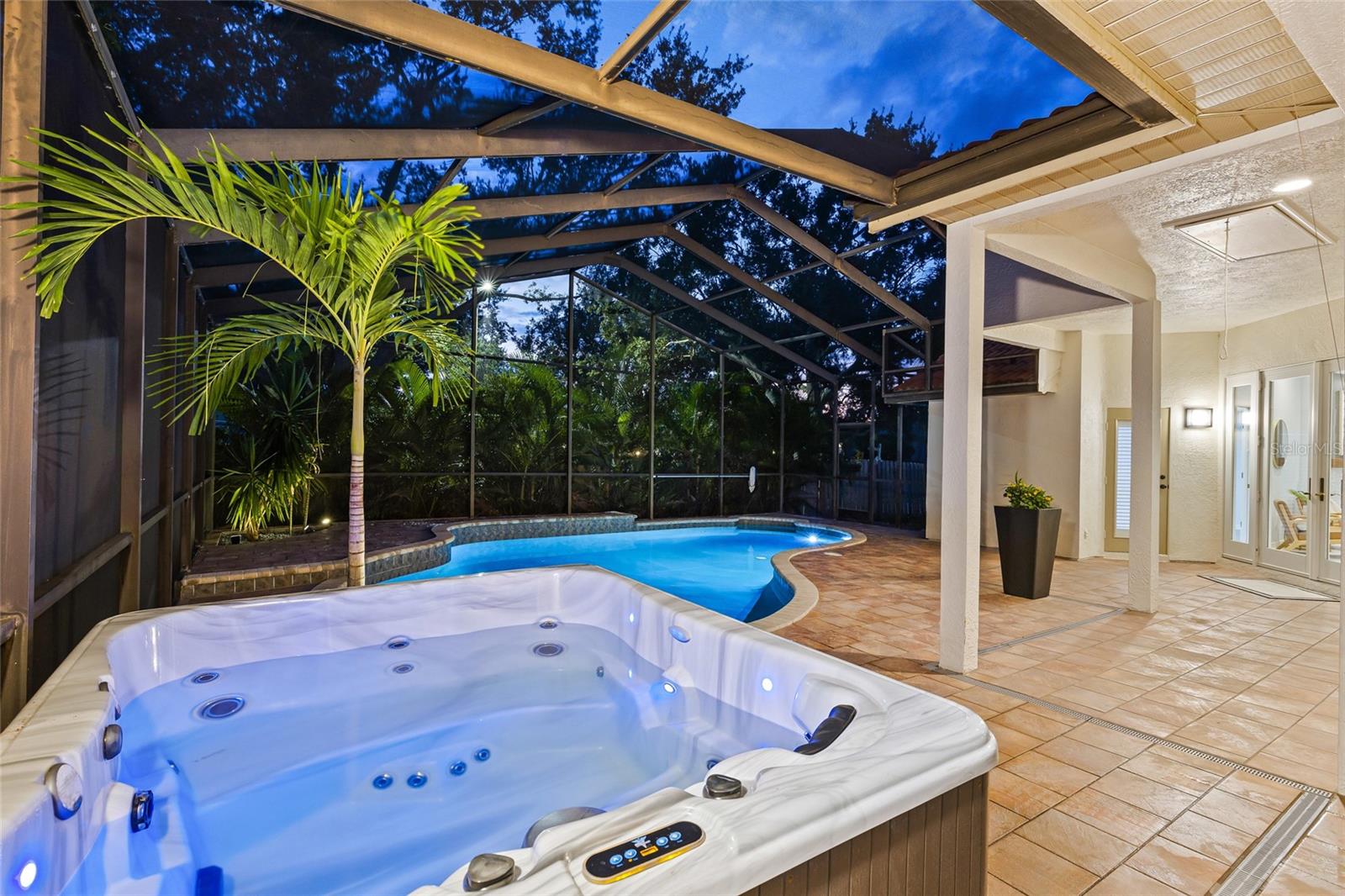 Under contract-accepting backup offers. Welcome to the beauty and ease of Florida living in this stunning single-story, 4-bedroom, 3-bath home tucked inside the guard-gated community of Placido Bayou. Surrounded by mature trees, winding streets, and natural preserves, Placido Bayou offers the rare combination of tranquility and security—just minutes from vibrant downtown St. Petersburg. Step inside to find a bright, open split floorplan designed for both comfort and connection. Every main room looks out to the sparkling, heated saltwater pool and freestanding hot tub, where custom pavers and a screened lanai create an oasis perfect for afternoons in the sun or shaded poolside lounging. At the heart of the home, the gourmet kitchen features granite countertops, stainless steel appliances, a double oven, butcher block island, large pantry and breakfast bar—opening seamlessly to the vaulted hearth room with a cozy wood-burning fireplace and French doors. The spacious primary suite offers a peaceful escape with its spa-like bathroom—complete with granite double vanity, custom cabinetry, soaking tub, walk-in shower, and oversized custom closet. Guests and extended family will appreciate the private quarters behind a pocket door with a bedroom, full bath with step in shower, and outdoor access. With two living areas, a dining room (or home office), and generous storage—including two attics, an interior laundry room, and a 2-car garage—this home is designed for both everyday living and entertaining. Placido Bayou’s walkable streets, and serene fishing lakes make it a favorite for anyone who desires privacy while still being close to all the pleasures of city living. Furthermore, enjoy low HOA fees that include lawn maintenance, painting the exterior of the home every seven years, fence installation and more—just minutes to I-275, Tampa, two international airports, and the shops, dining, and waterfront charm of downtown St. Petersburg.