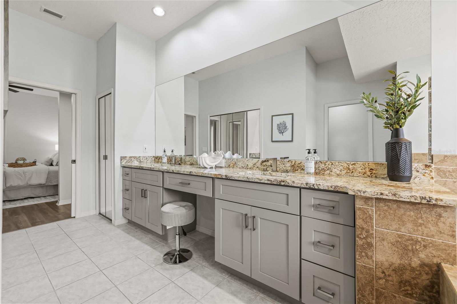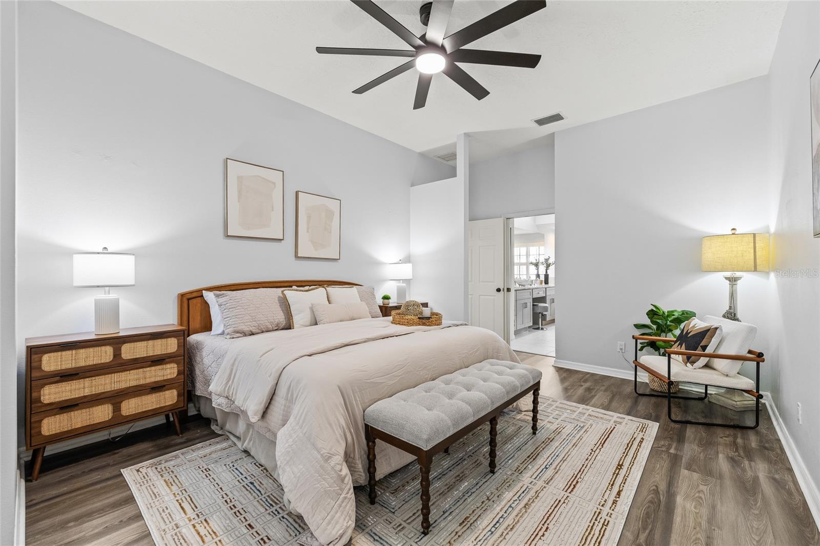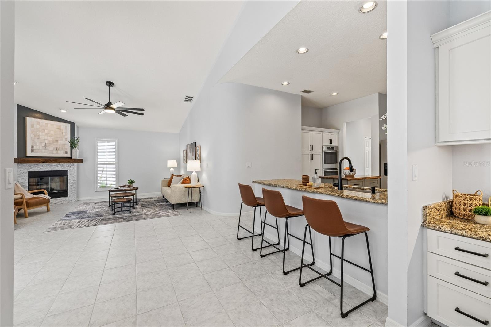 Ceiling Fans(s), Eat-in Kitchen, High Ceilings, Kitchen/Family Room Combo, Split Bedroom, Stone Counters, Thermostat, Walk-In Closet(s), Window Treatments