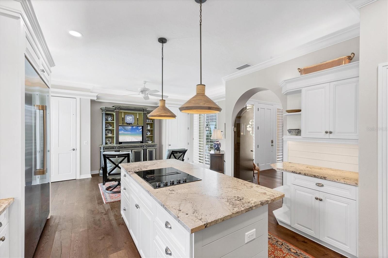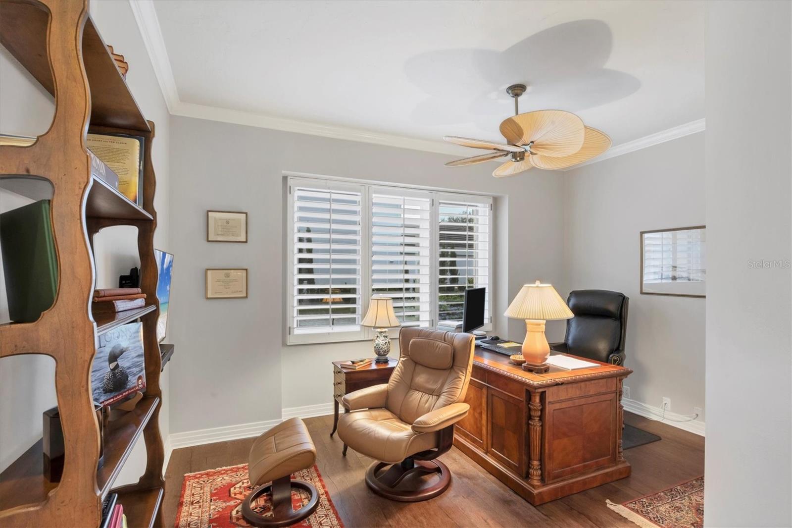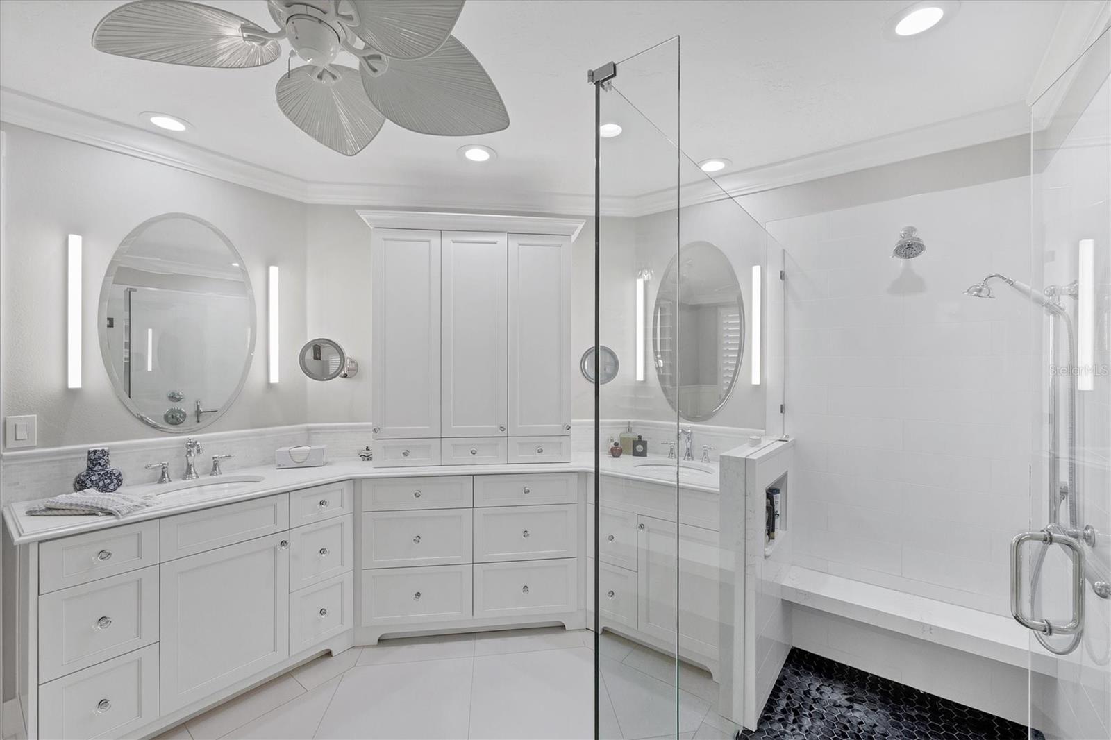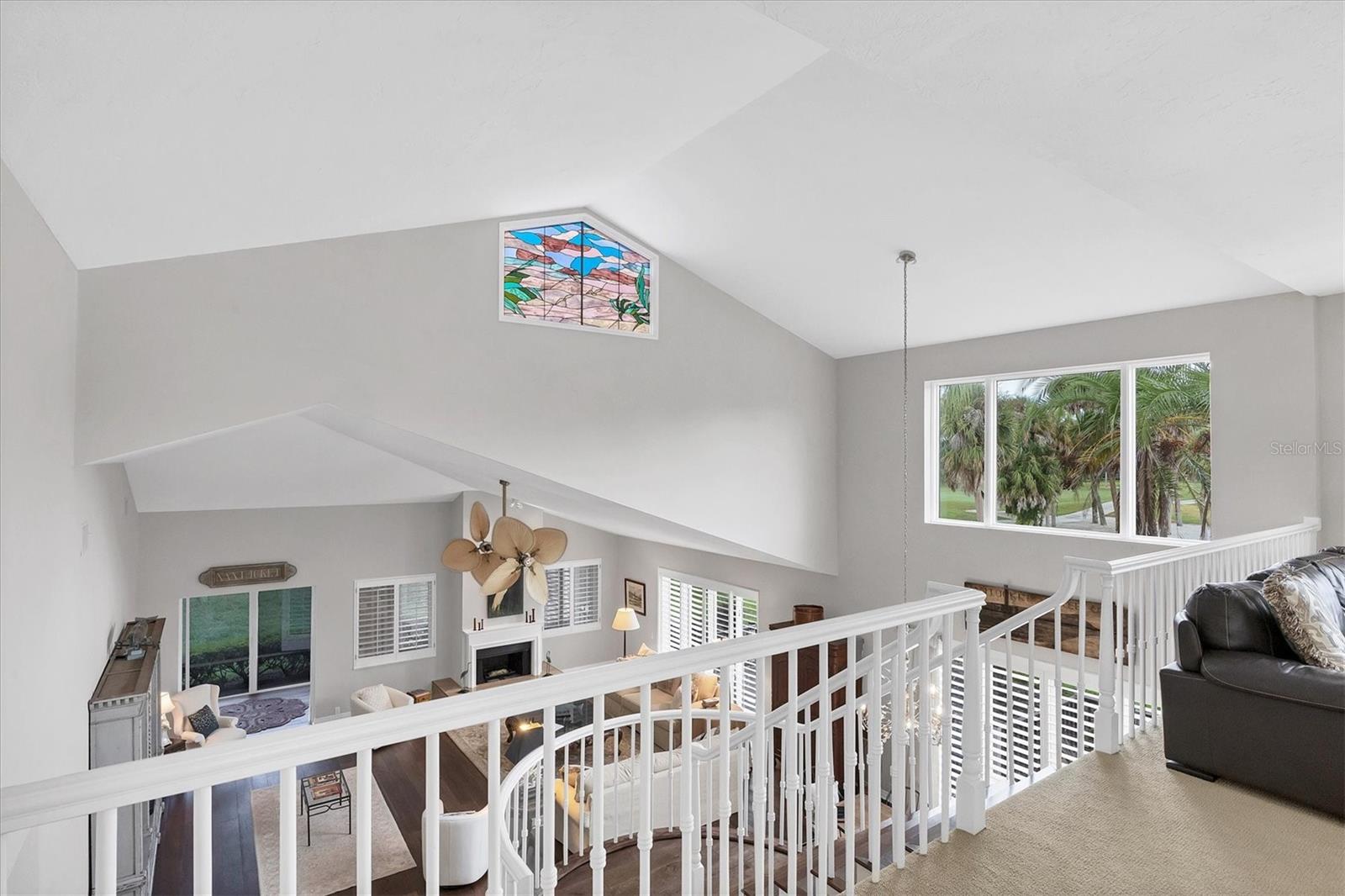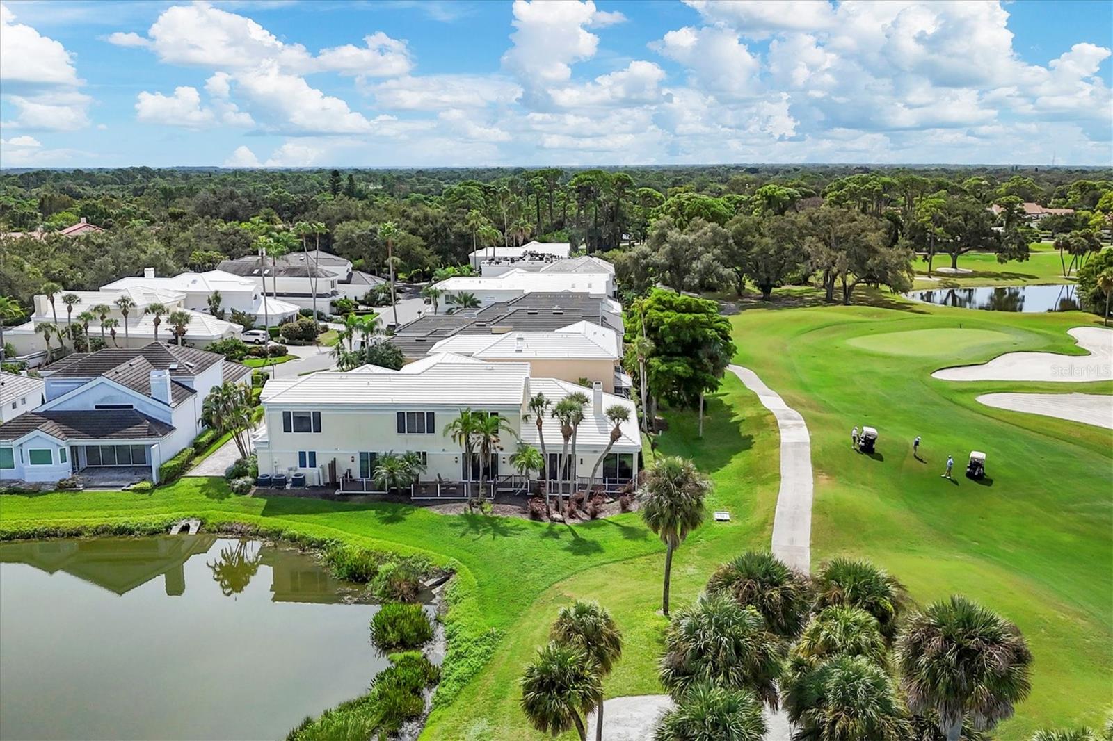 Experience the pinnacle of golf course living in this exquisitely updated residence, the largest home in Prestancia’s maintenance-free Enclave, and the only one positioned directly on both the TPC golf course and lake. Panoramic fairway and water views unfold from nearly every room, enhanced by expansive picture windows, sliding glass doors and a bright open floor plan. The main level showcases new seven-inch European oak plank floors and architecturally striking details including crown moldings, a dramatic staircase and a wood-burning fireplace. A spacious great room, dining room and Florida room flow seamlessly to an oversized deck ideal for entertaining or simply savoring the tranquil scenery. The chef’s kitchen features granite counters, a breakfast bar, Monogram appliances and a casual dining area overlooking the lake. The serene primary suite offers a sitting area, private patio access, custom-built closets and a recently renovated spa bath with porcelain tile, custom cabinetry, designer lighting, a walk-in shower and a soaking tub. A first-floor study/den—complete with a closet—can serve as a comfortable fourth bedroom. A private elevator conveniently connects the main level to the upper floor, where you’ll find a second primary suite perfect for guests or in-laws, along with a generous loft and an additional en-suite bedroom. Additional highlights include an epoxy-finished garage with custom cabinetry, additional outside parking space, underneath stairwell storage with glass blocks and lighting and plantation shutters throughout. Residents enjoy a private lap pool shared by just 18 homes, with optional TPC membership providing access to two Audubon-certified championship courses. Conveniently located within Palmer Ranch and just moments from Siesta Key and Nokomis beaches, Legacy Trail, and the shops and dining of Gulf Gate and downtown Sarasota.