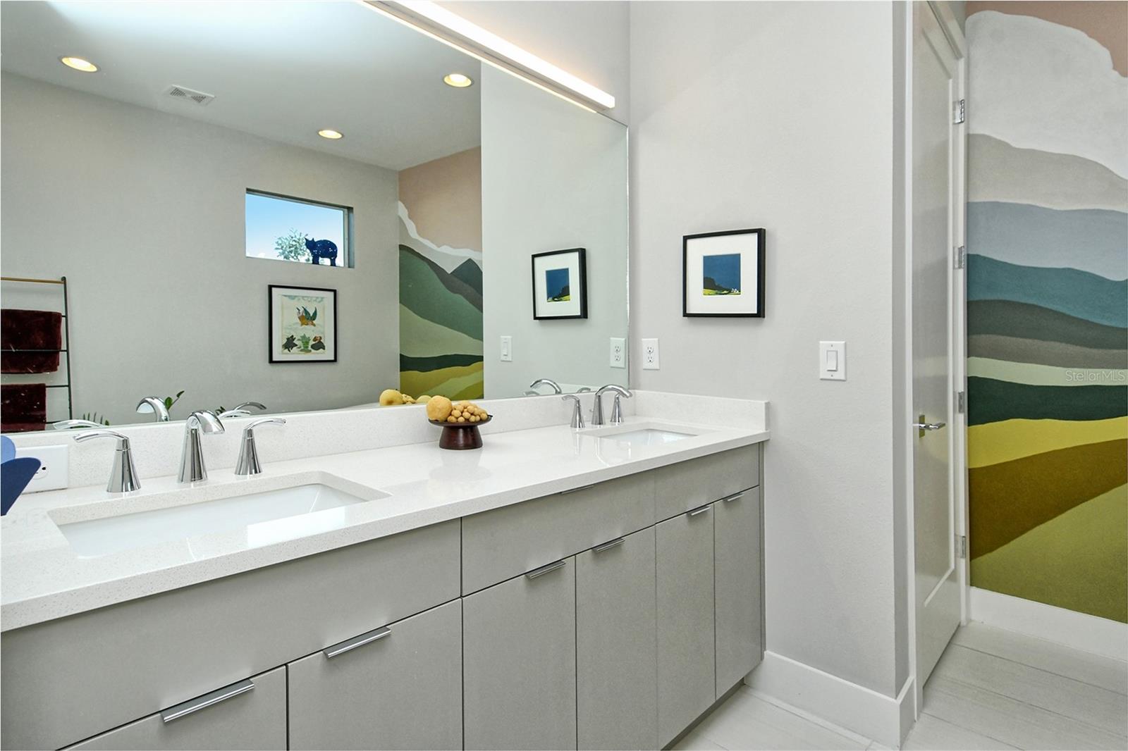 Situated on one of the largest corner lots in the prestigious gated enclave of Sandhill Lake, this exquisite pool residence offers breathtaking lake views and meticulously landscaped surroundings. Crafted by award-winning luxury builder Heritage Builders, this residence showcases unparalleled design and superior craftsmanship. The open-concept floor plan features soaring 12-foot ceilings, creating a seamless flow throughout the living spaces. Enter through grand 10-foot double doors with glass panels and be captivated by the modern elegance and high-end finishes. Hurricane-impact windows and sliding glass doors provide peace of mind, and this home remained completely unaffected by last year’s hurricanes. The 12x24 luxury porcelain tile floors add a touch of sophistication. Built in 2020, this residence features three spacious en-suite bedrooms, each designed for comfort and privacy. The lavish primary suite is a private retreat with oversized windows overlooking the serene pool and lake, along with direct access to the lanai. The spa-like bathroom features quartz countertops, dual sinks, and a stand-alone custom imported porcelain tub. Each additional en-suite bedroom includes a custom wood walk-in closet and a private bath. A guest room with a built-in office nook adds versatility to the home. Designed for the culinary enthusiast, the gourmet kitchen features a gas stove, waterfall-edge quartz countertops, a glass tile backsplash, custom wood cabinetry, top-of-the-line Café Series appliances, and a spacious pantry. Seamlessly blending indoor and outdoor living, the enclosed lanai, fenced yard, and state-of-the-art pool create a resort-style oasis. The elegant concrete paver patio provides the perfect setting for relaxation or entertaining, with space to add an outdoor kitchen. Not in a flood zone! The low HOA fees cover lawn maintenance and pest control, and with no CDD fees, residents enjoy both luxury and affordability. Located in an A-rated school district, including Riverview High School, this home is just minutes from Siesta Key Beach, Myakka Park, downtown Sarasota, top-rated golf courses, and fine dining. Residents of Sandhill Lake enjoy exclusive access to a clubhouse, resort-style pool, spa, and fire pit. Move-in ready, this modern luxury home offers an exceptional blend of elegance, comfort, and convenience.