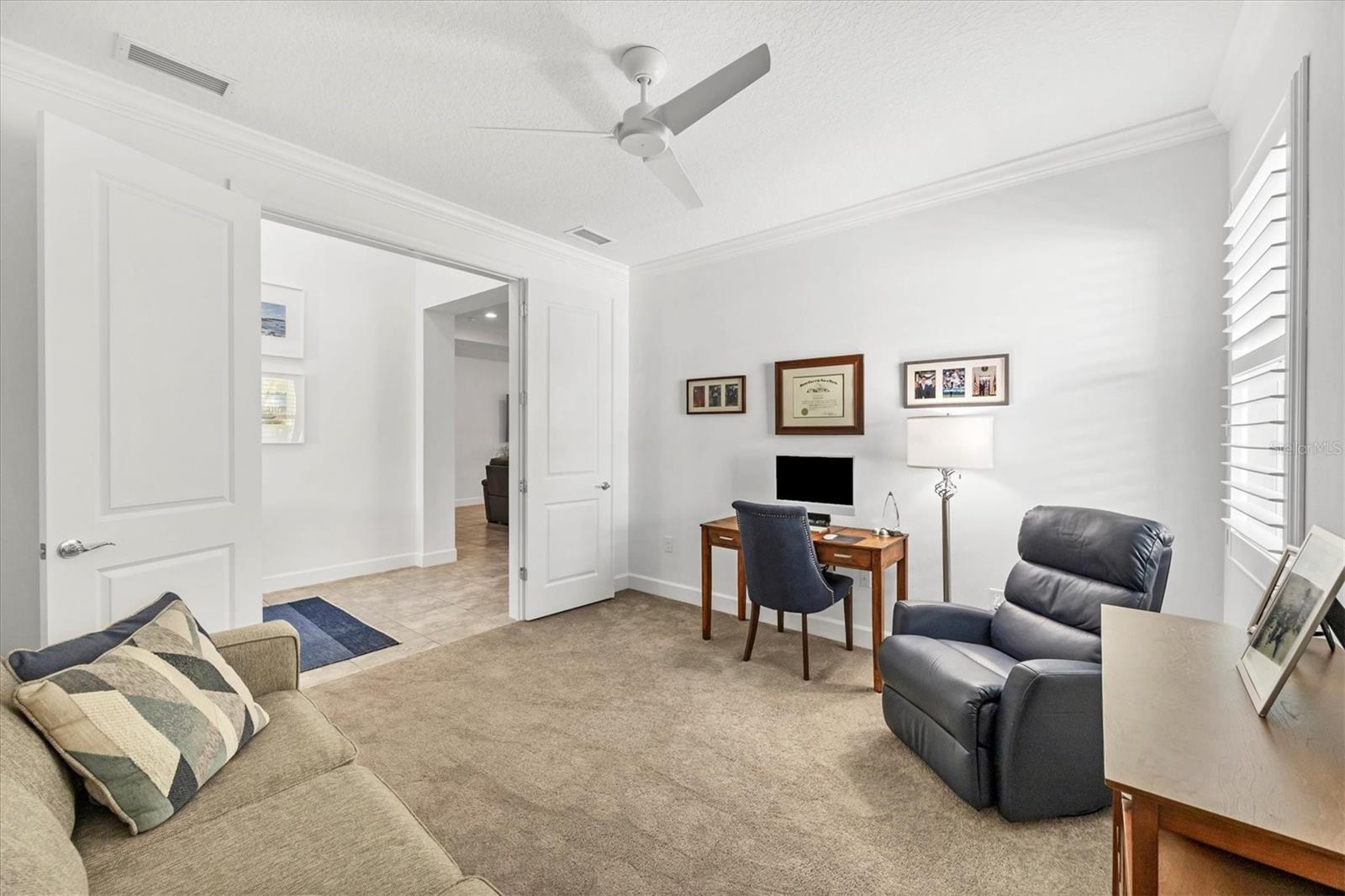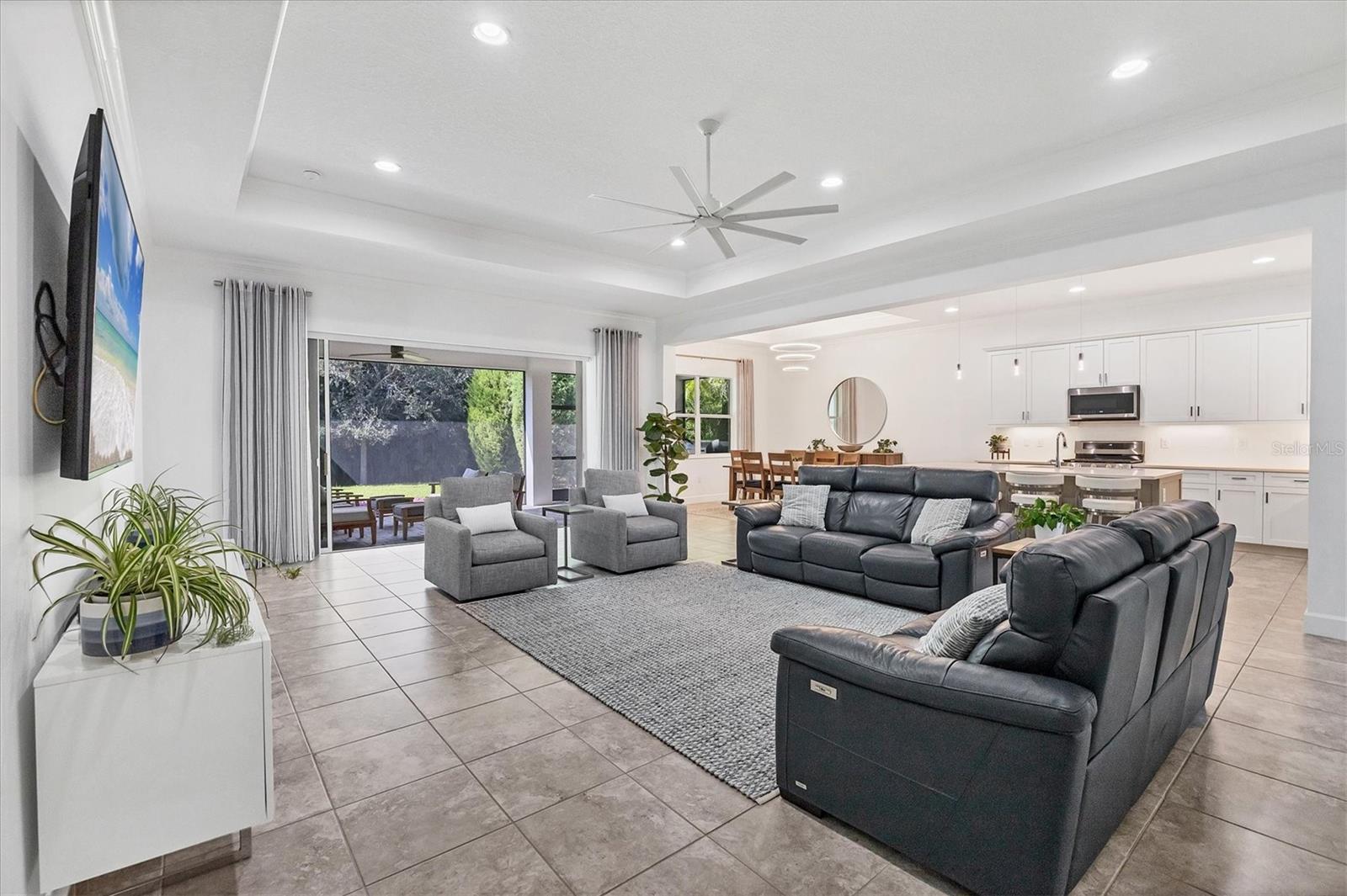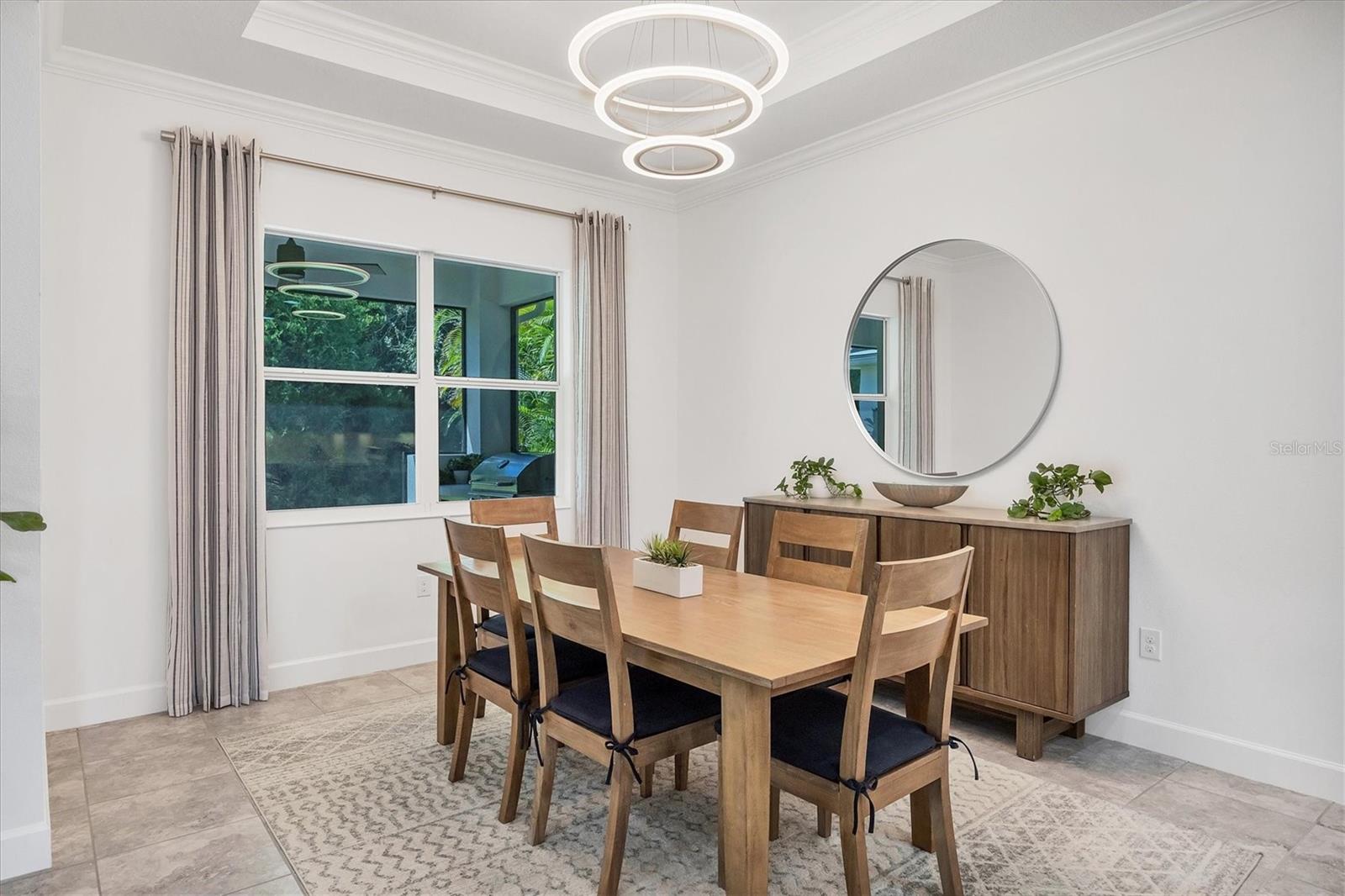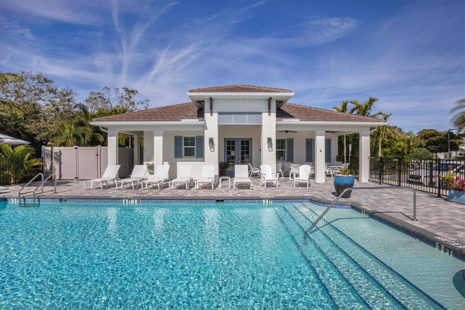 Welcome to Sandhill Lake, an exclusive gated community of just 43 custom homes where maintenance-free living meets timeless design. Built in 2019 by Heritage Builders, this Cypress model offers over 2, 600 sq. ft. of refined living space with 3 bedrooms, 3 full bathrooms, den/office and a 3-car garage. Step inside to an airy open concept with 10-foot ceilings, 8-foot doors, tiled floors and crown molding. Natural light flows through the glass-paneled entry door and plantation shutters, highlighting the warm, contemporary finishes. The chef’s kitchen is the centerpiece—complete with white wood cabinetry, quartz countertops, a large island, gas cooktop, and stainless-steel appliances—all open to the living and dining areas for effortless entertaining and everyday living. The spacious primary suite features direct access to the covered patio, dual walk-in closets with built-ins, and ensuite with zero-entry shower, dual vanities, and private water closet. A bonus flex area off the primary bathroom offers potential for a sauna, outdoor shower, or home fitness retreat. Each guest bedroom enjoys its own private full bath, perfect for privacy and comfort. Out back, unwind in your private yard under the large covered and screened lanai, complete with an outdoor kitchen—ideal for year-round dining and relaxing. Freshly painted inside, this home offers quality high-end finishes, thoughtful upgrades, and solid concrete block construction with a tile roof. Residents of Sandhill Lake enjoy a clubhouse, community pool, and a maintenance-free lifestyle—with low HOA fees covering lawn care, irrigation, mulch, and hedges—and no CDD fees. Conveniently located just minutes to I-75 and the new Skye Ranch school, a short distance to Siesta Key Beach, SRQ airport, and the active lifestyles of Downtown Sarasota and Lakewood Ranch.