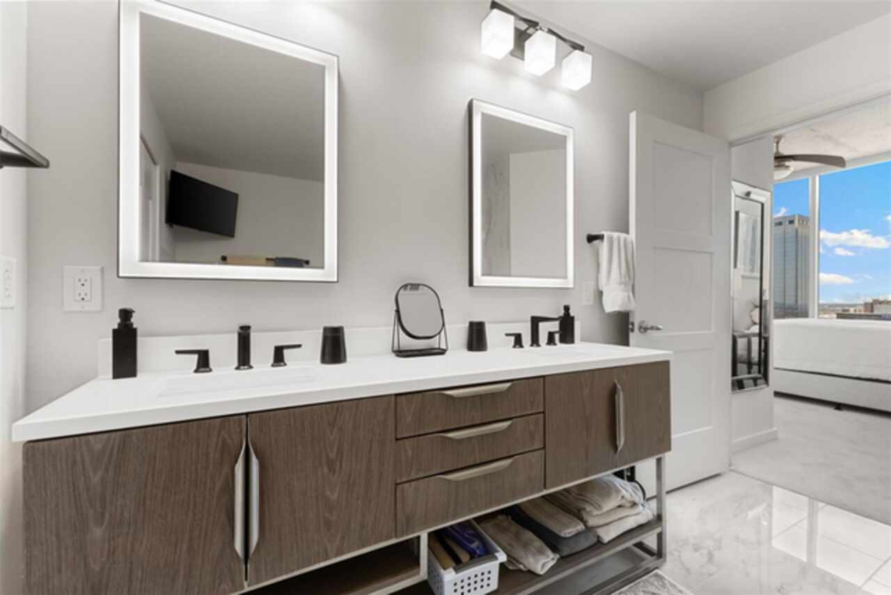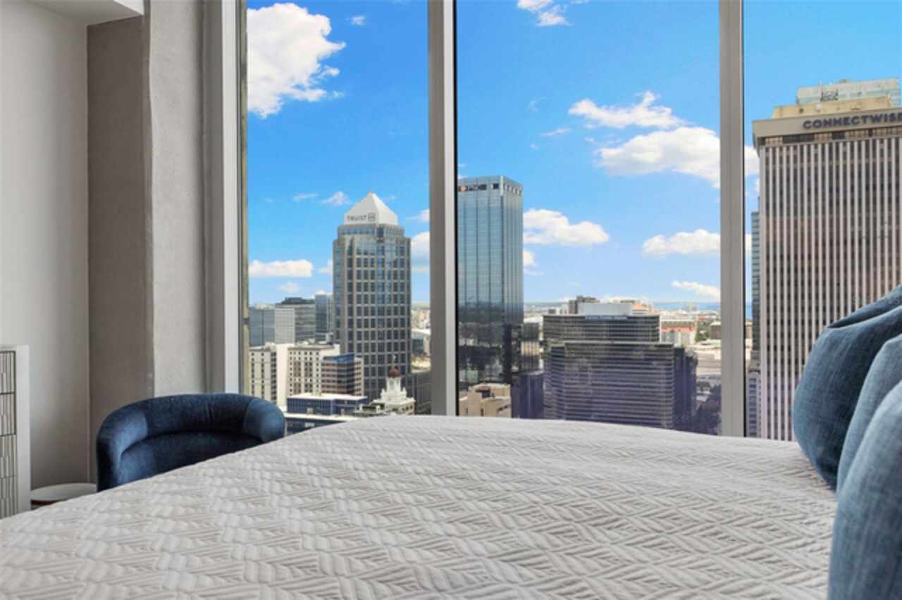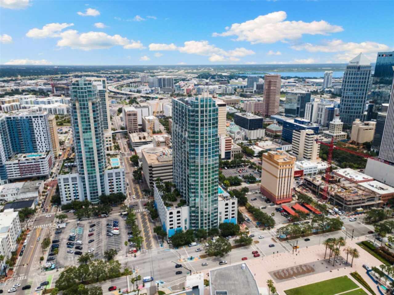 Welcome to a life of elevated urban luxury at SkyPoint, where the city’s most breathtaking views become your everyday backdrop. This rare 25th-floor corner residence has been completely reimagined by one of Tampa’s premier interior designers, offering a sophisticated two-bedroom, two-bathroom sanctuary. Ten-foot floor-to-ceiling windows frame unforgettable southern exposures of the downtown skyline, Tampa Bay, the Hillsborough River, and the Garrison Channel, inviting you to greet the day with majestic sunrises from your private balcony. The transformation is immediate, with wide-plank flooring flowing throughout the main living areas and plush carpeting in the bedrooms, all selected for modern elegance. The thoughtful redesign includes integrated remote-controlled sunshades and a spacious layout perfect for both grand entertaining and daily living, featuring a dedicated dining area and an oversized laundry room with ample storage. The renovated kitchen is a highlight, appointed with fresh quartz countertops, a sleek tile backsplash, new stainless-steel appliances, and a central island. Your residence includes two conveniently assigned parking spaces on the third floor of the secured garage. SkyPoint itself redefines resort-style living, with a 24-hour concierge and controlled access ensuring privacy and security. The eighth-floor amenity deck features a heated pool, a saltwater hot tub, multiple outdoor grilling stations, an outdoor kitchen, and a beautifully landscaped park in the sky. Inside, find a state-of-the-art dual fitness center, a residents' clubhouse with a catering kitchen and bar, lounges, and a private theater room. Embrace the vibrant energy of downtown Tampa from your front door, with the cultural arts district, Curtis Hixon Park, and the Tampa Riverwalk directly outside. You are moments from the city's best attractions, with easy access to the trolley, water taxi, and Tampa International Airport. This meticulously renovated residence is your gateway to the very best of Tampa, offering a turnkey experience in a world-class location.